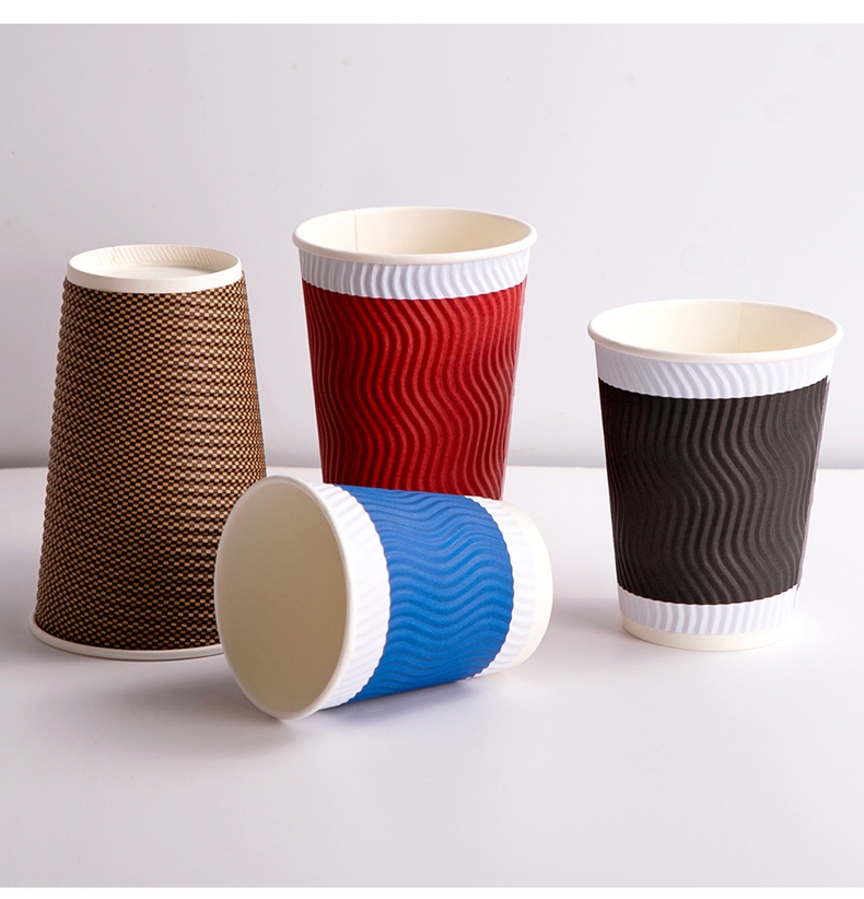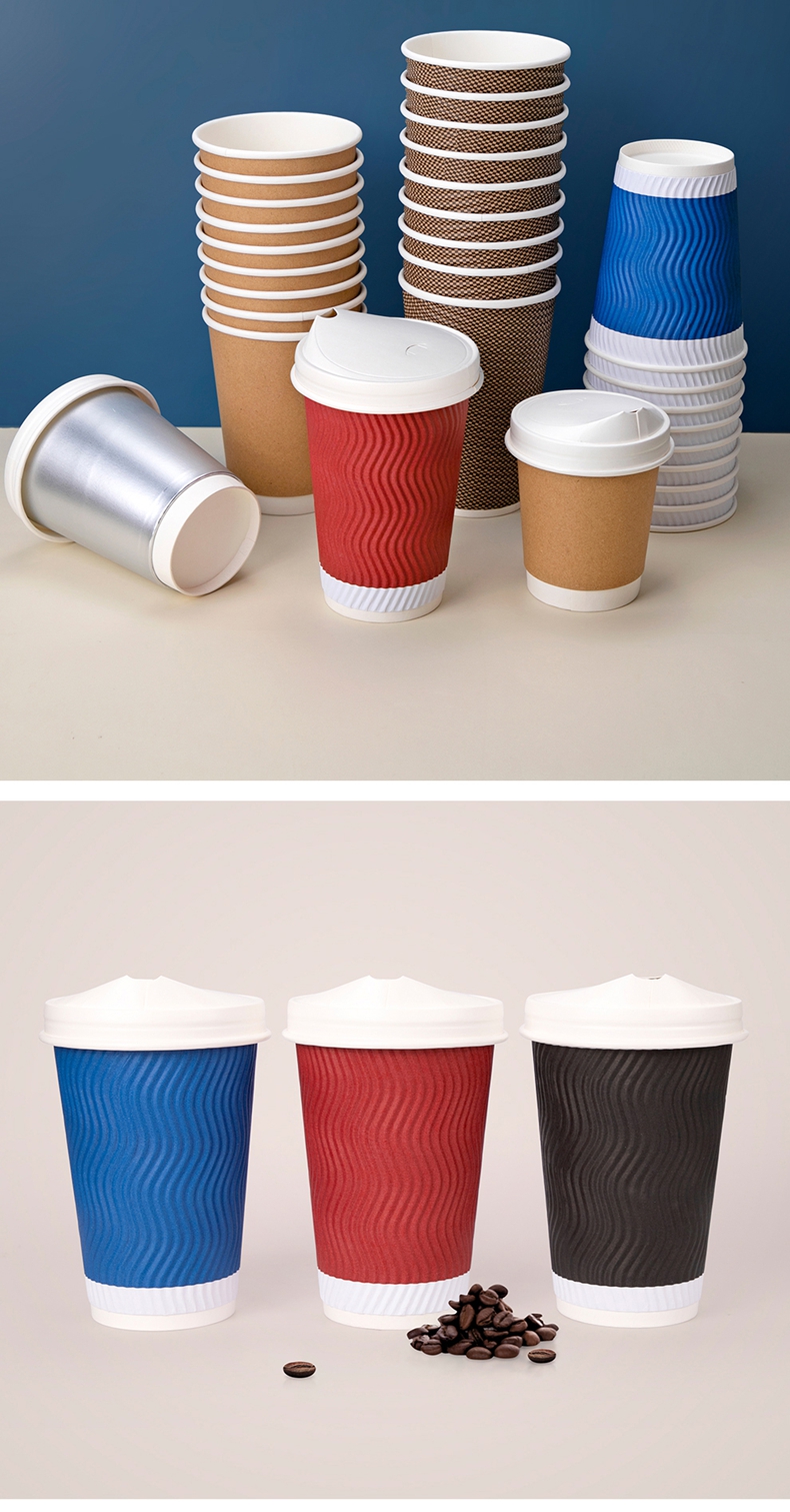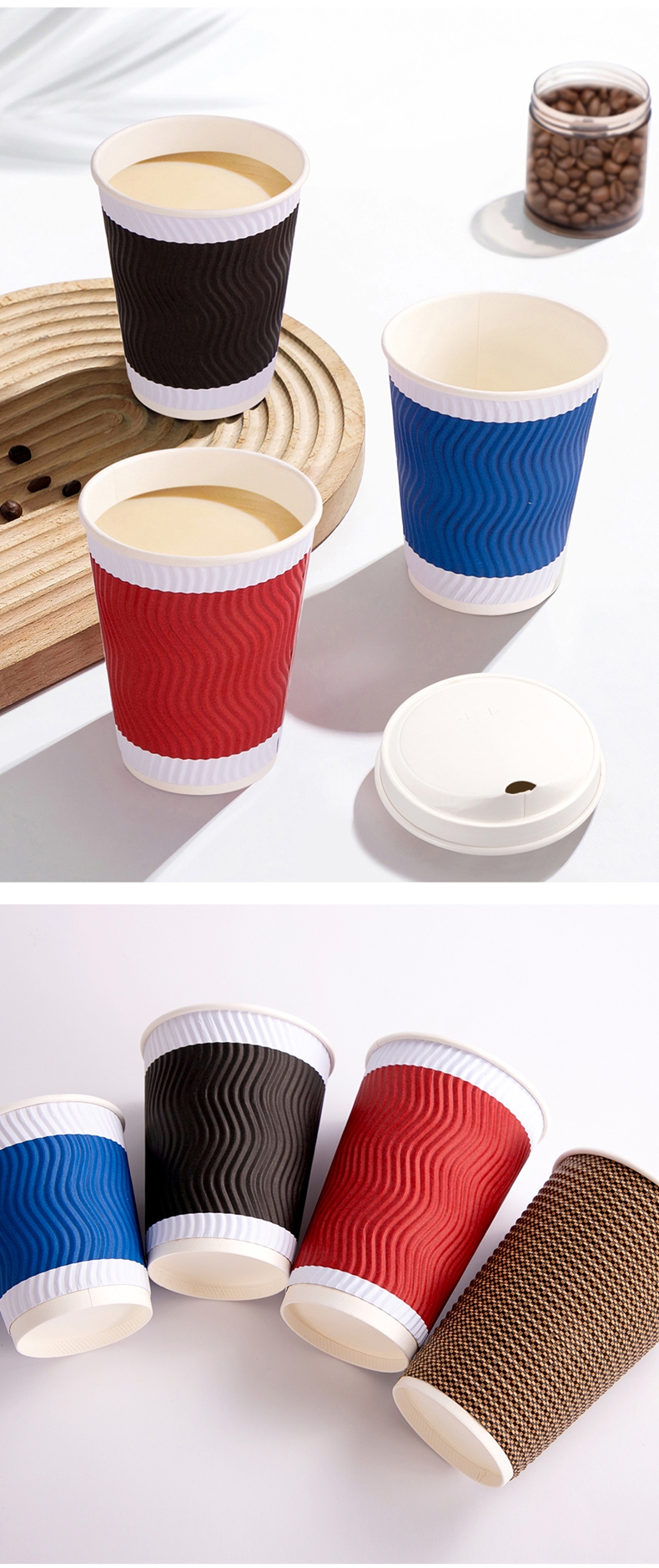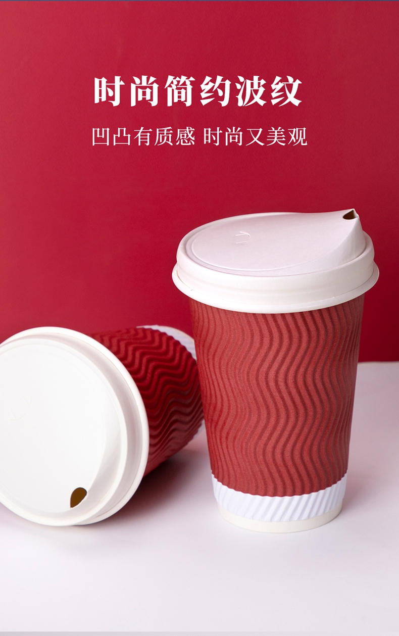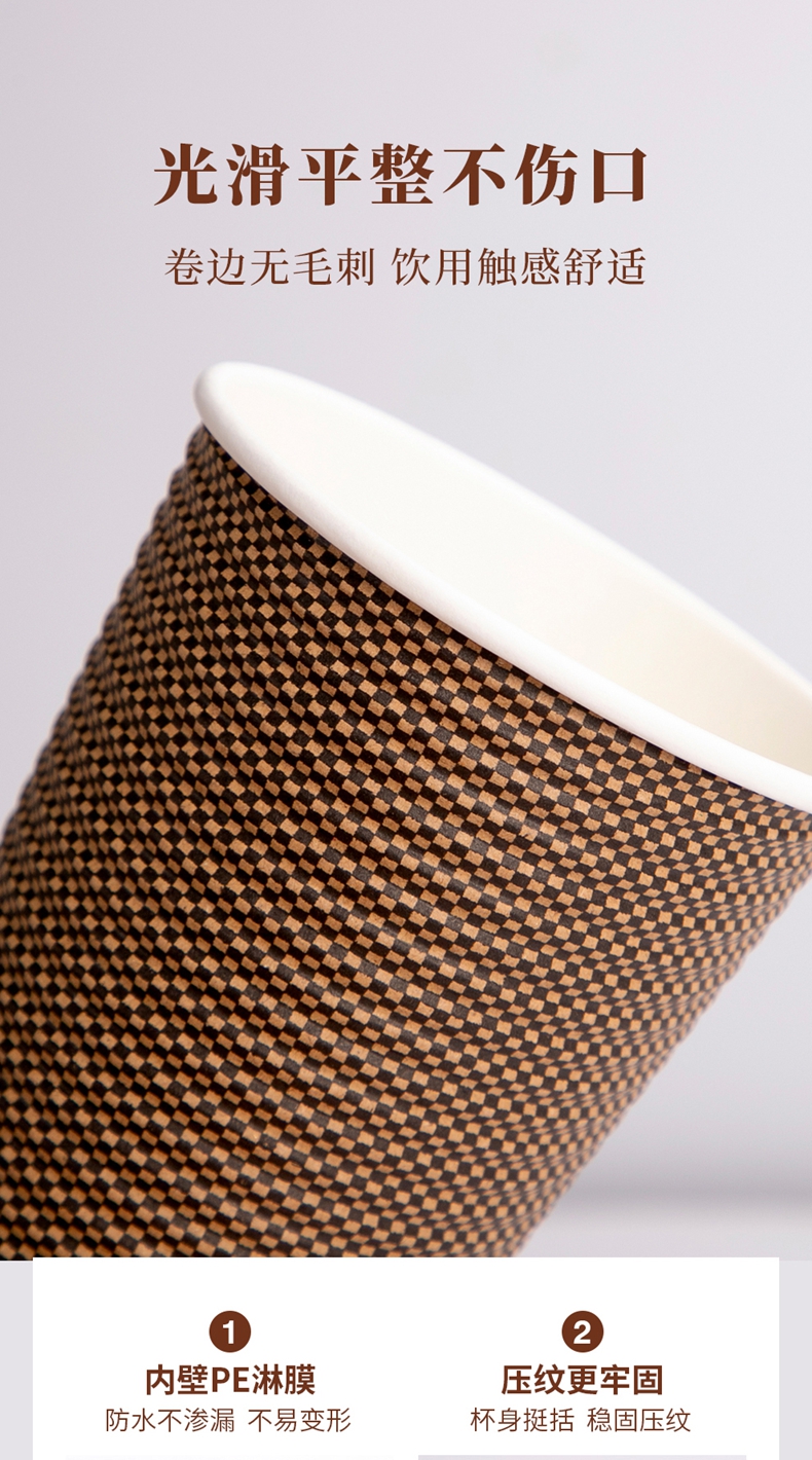 喇叭花咖啡杯双层纸杯一次性咖啡杯奶茶纸杯外卖打包带盖热饮直饮凸嘴盖