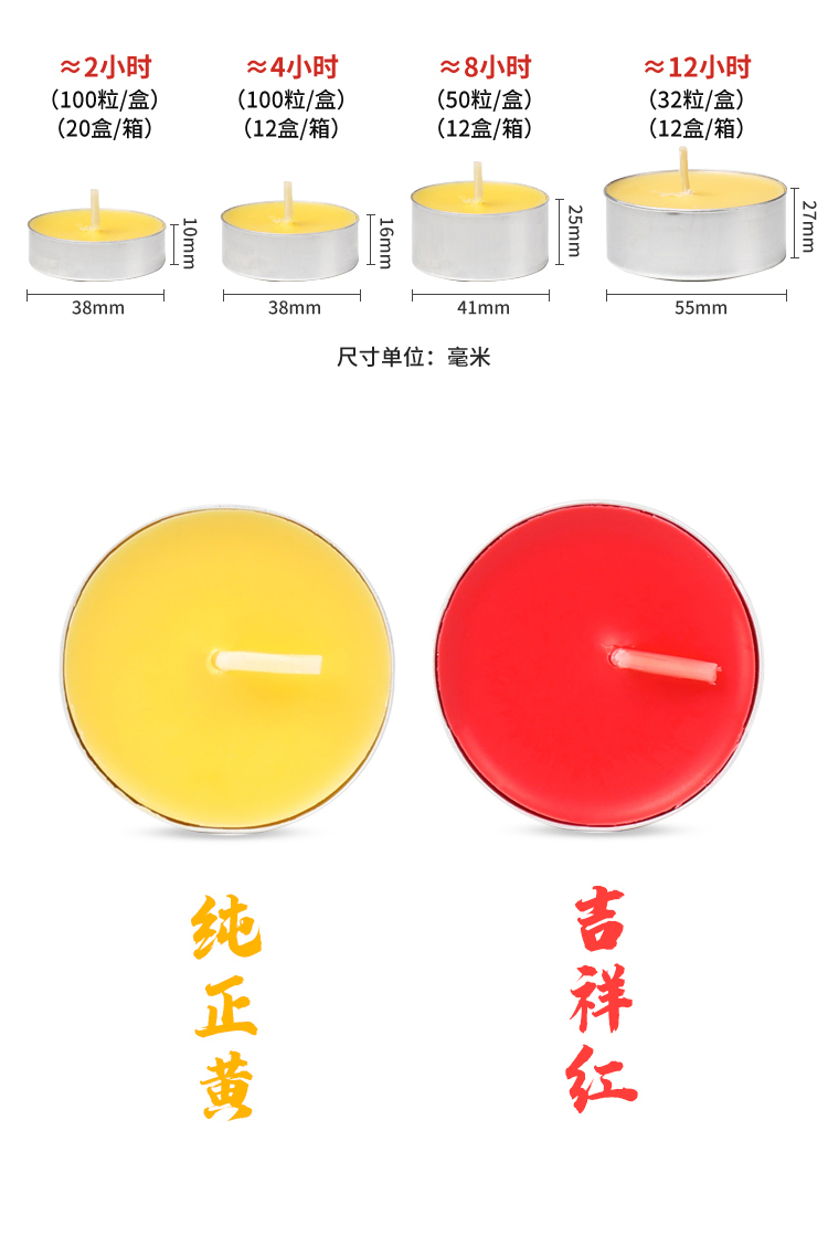 【整箱购买,享特惠价】自在园酥油灯2/4/8/12小时100粒 红黄两种颜色