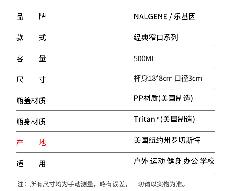 美国nalgene便携热水杯塑料窄男女随手杯耐摔太空杯子