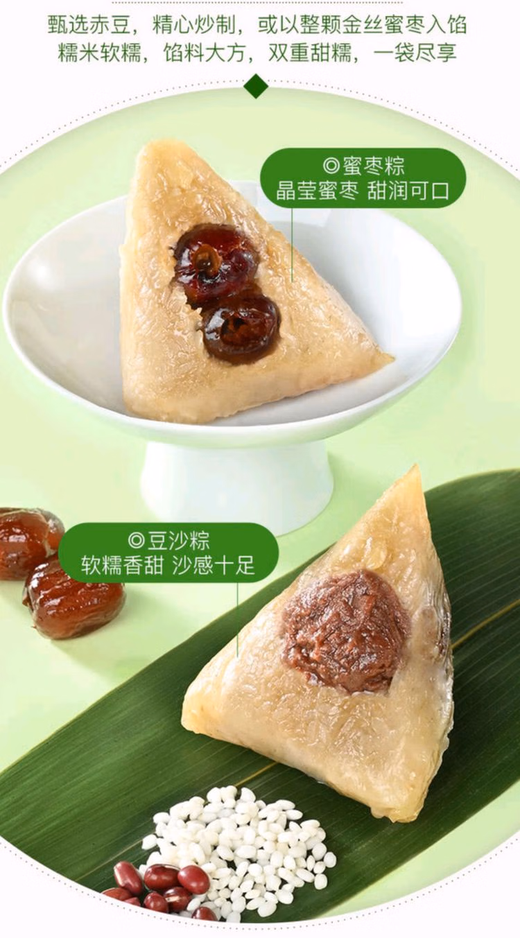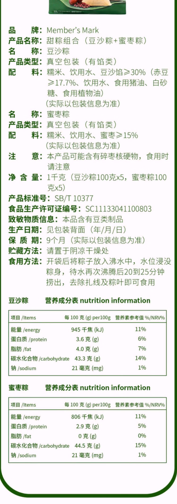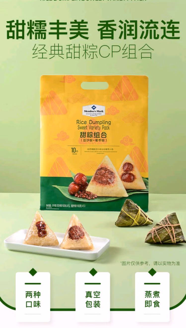 (山姆爆品) 甜粽组合 1kg(豆沙粽100g*5+蜜枣粽100g*5) [Member’s Mark]