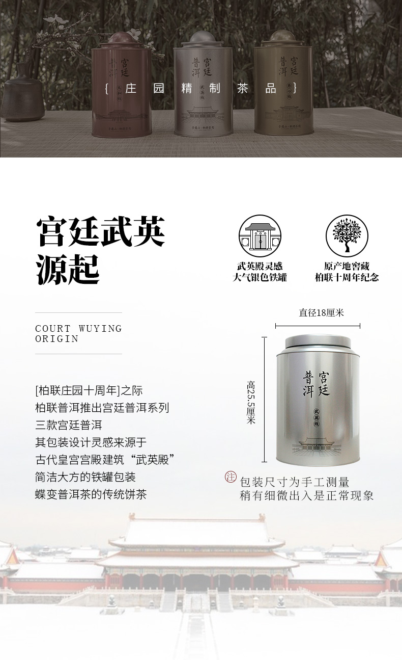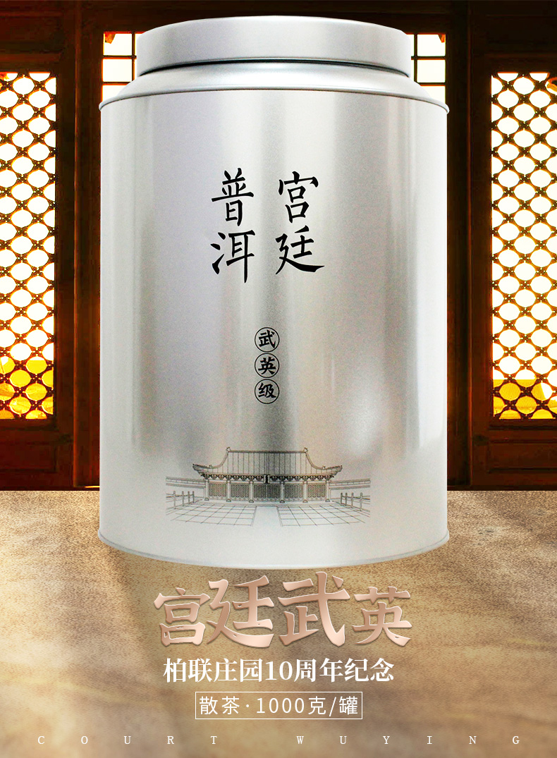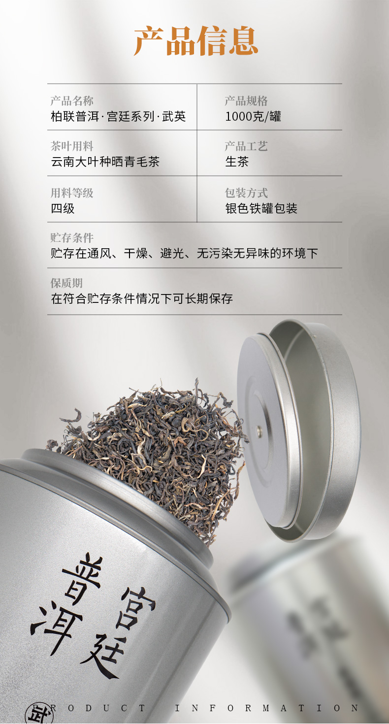 柏联普洱 茶叶 宫廷普洱 武英银罐 景迈普洱生茶散茶 罐装 1000g