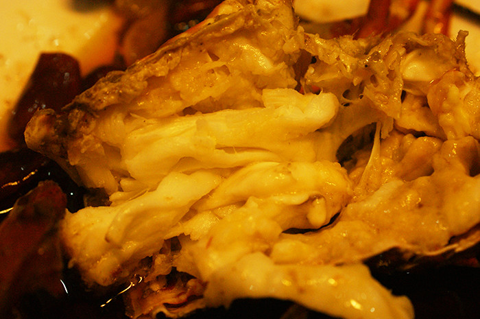 新鲜的龙虾,掰开来肉纹清晰可见,给它拍照的时候我都口水直流