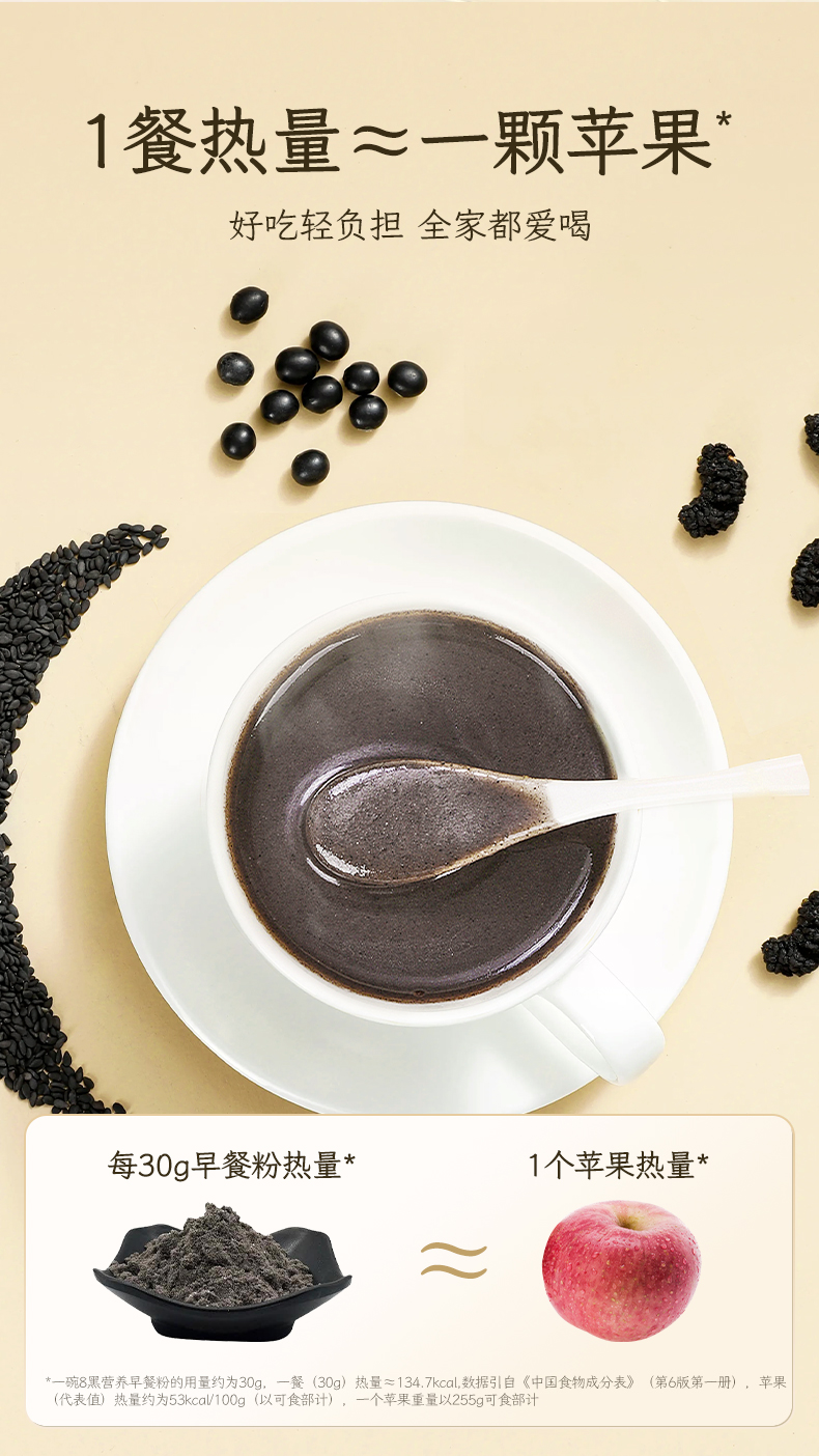 【双旦礼遇活动】8黑营养早餐粉 甄选8种黑色食材 满满谷物醇香 罗汉果粉代替白砂糖 低糖不怕胖 好吃更健康 简单冲泡即可享受美味早餐