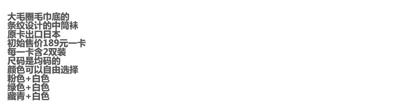 大毛圈+大毛巾底,条纹中筒袜。软支撑小标刺绣带脚型袜子C121768