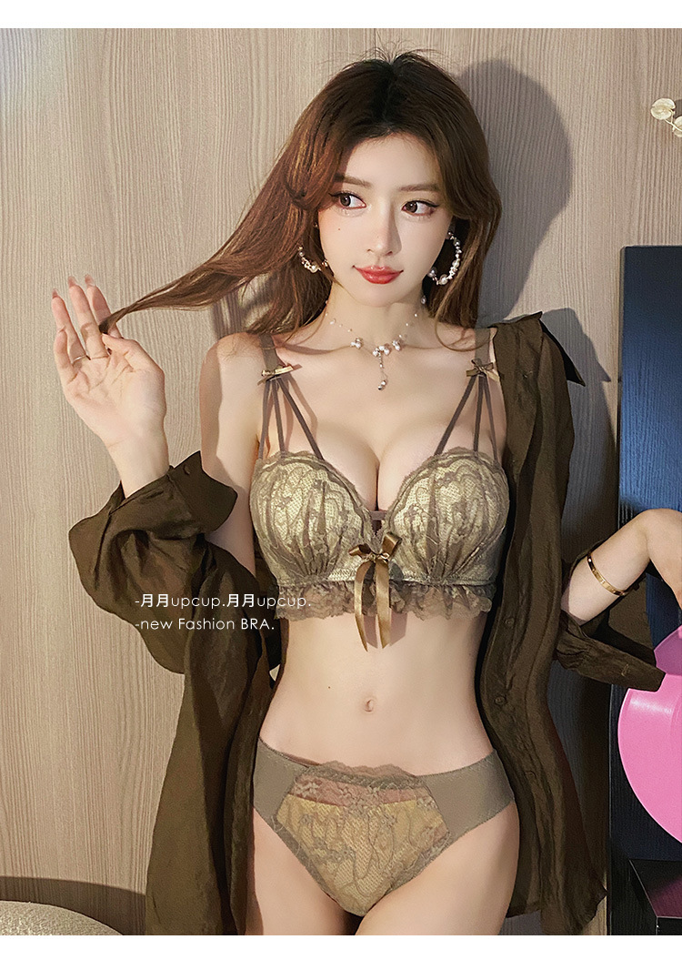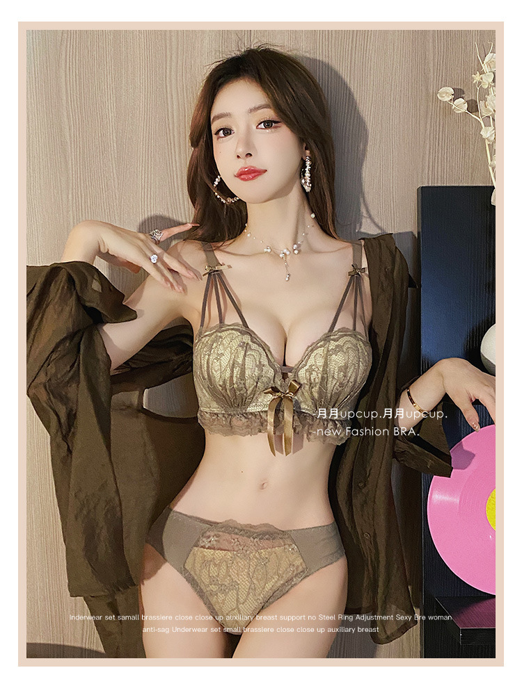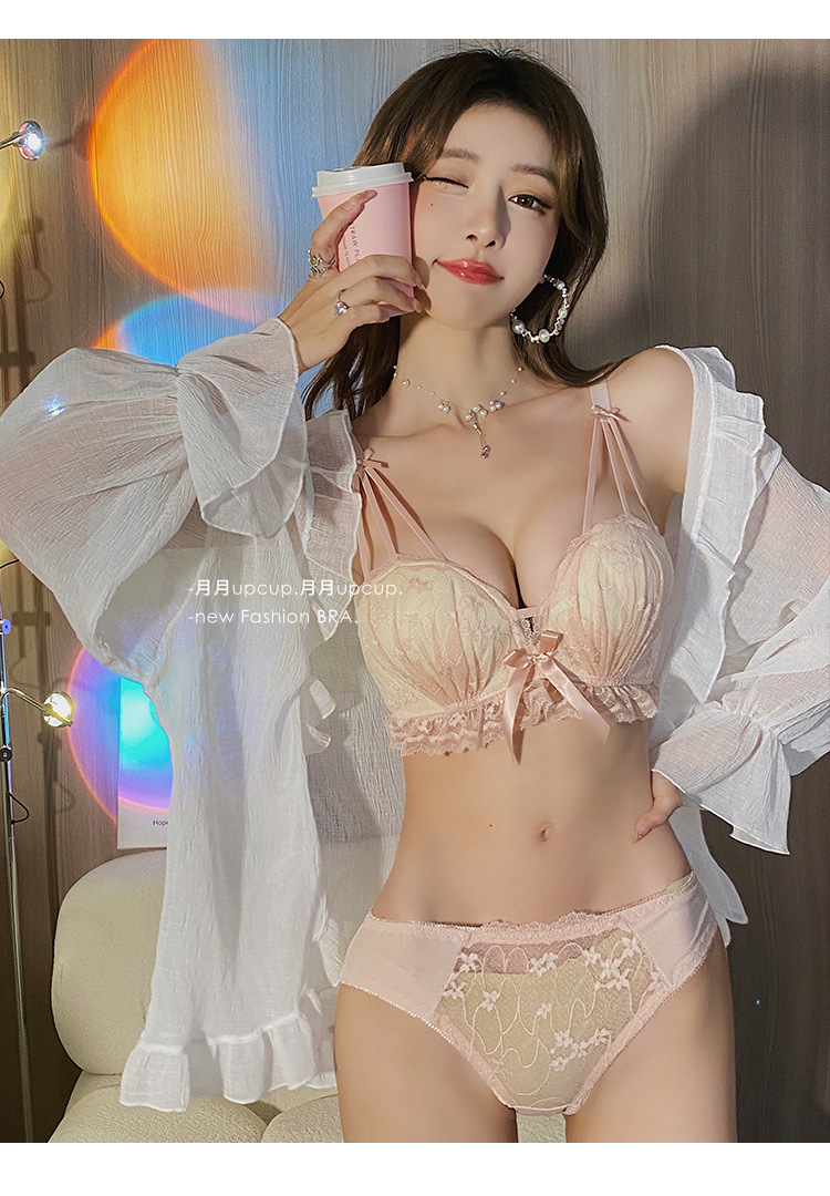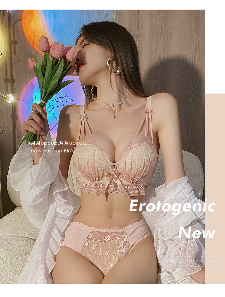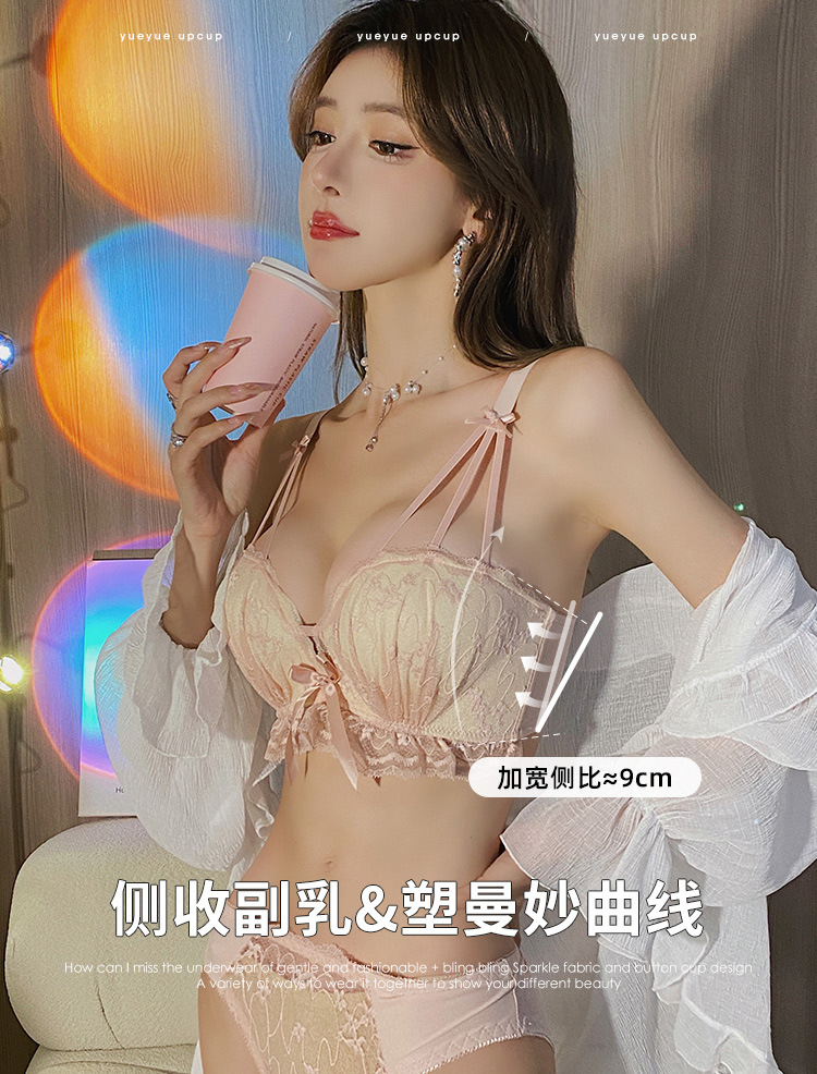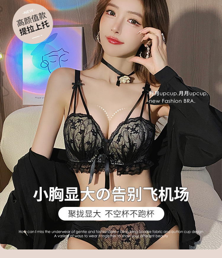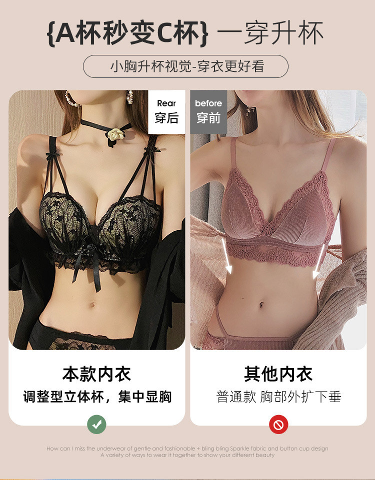 【穿出蜜桃胸❗️乳胶蕾丝文胸套装】1秒A杯变C杯,新品少女内衣新款性感小胸聚拢无钢圈四季款胸罩