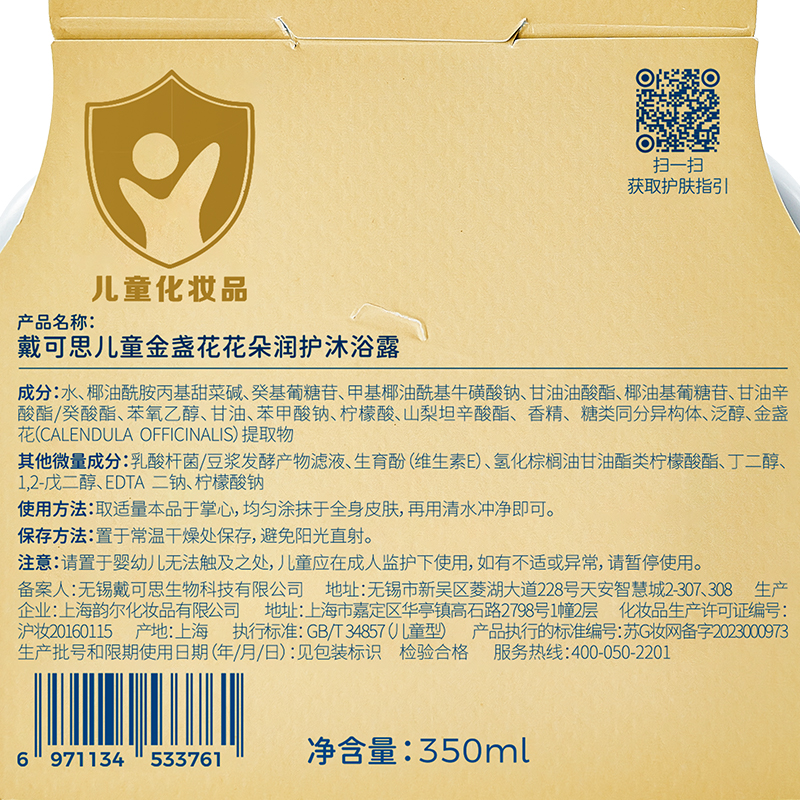 戴可思儿童金盏花花朵润护沐浴露350ml