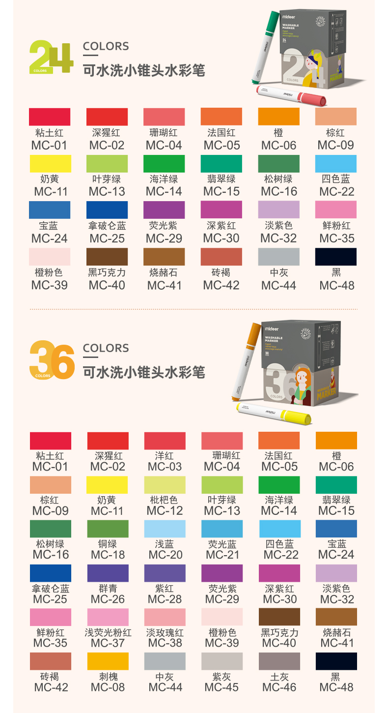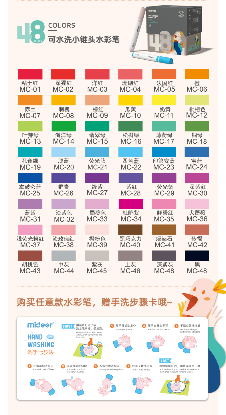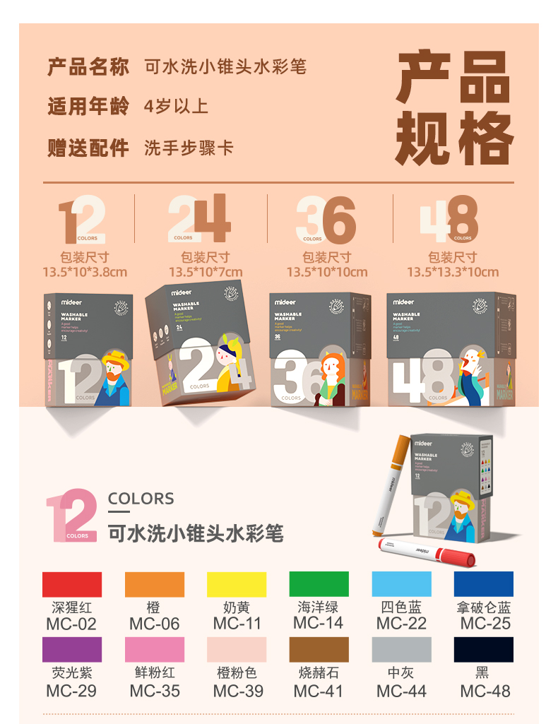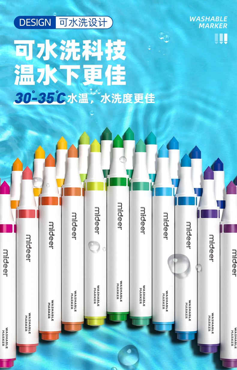 mideer儿童可水洗锥头水彩笔-12色/24色