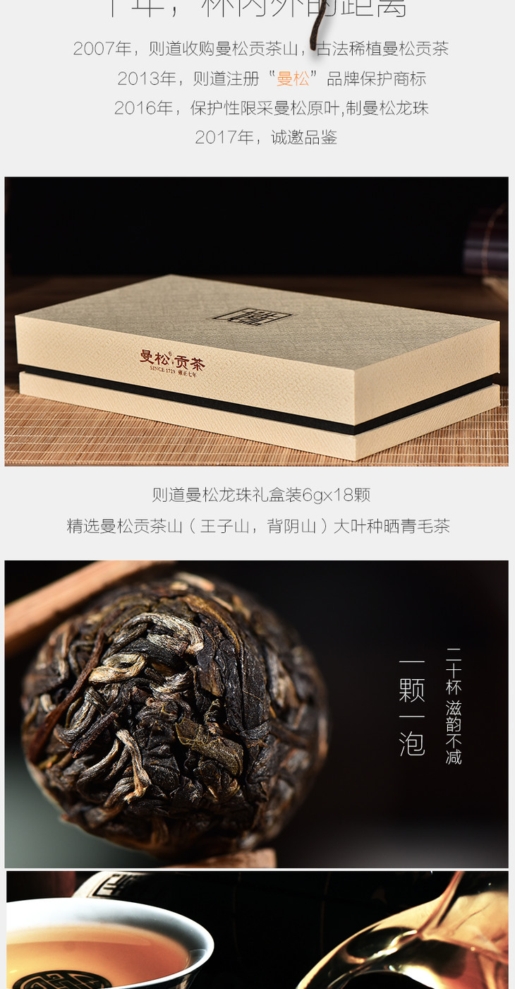 2016年曼松贡茶龙珠礼盒 6g*18颗 手工揉捻