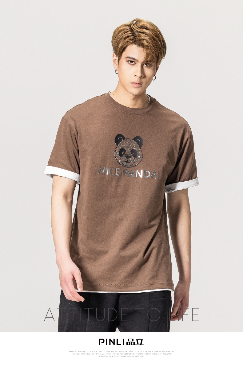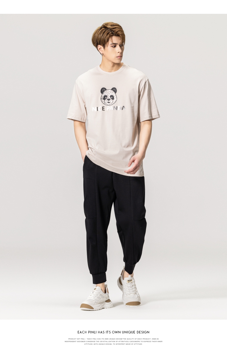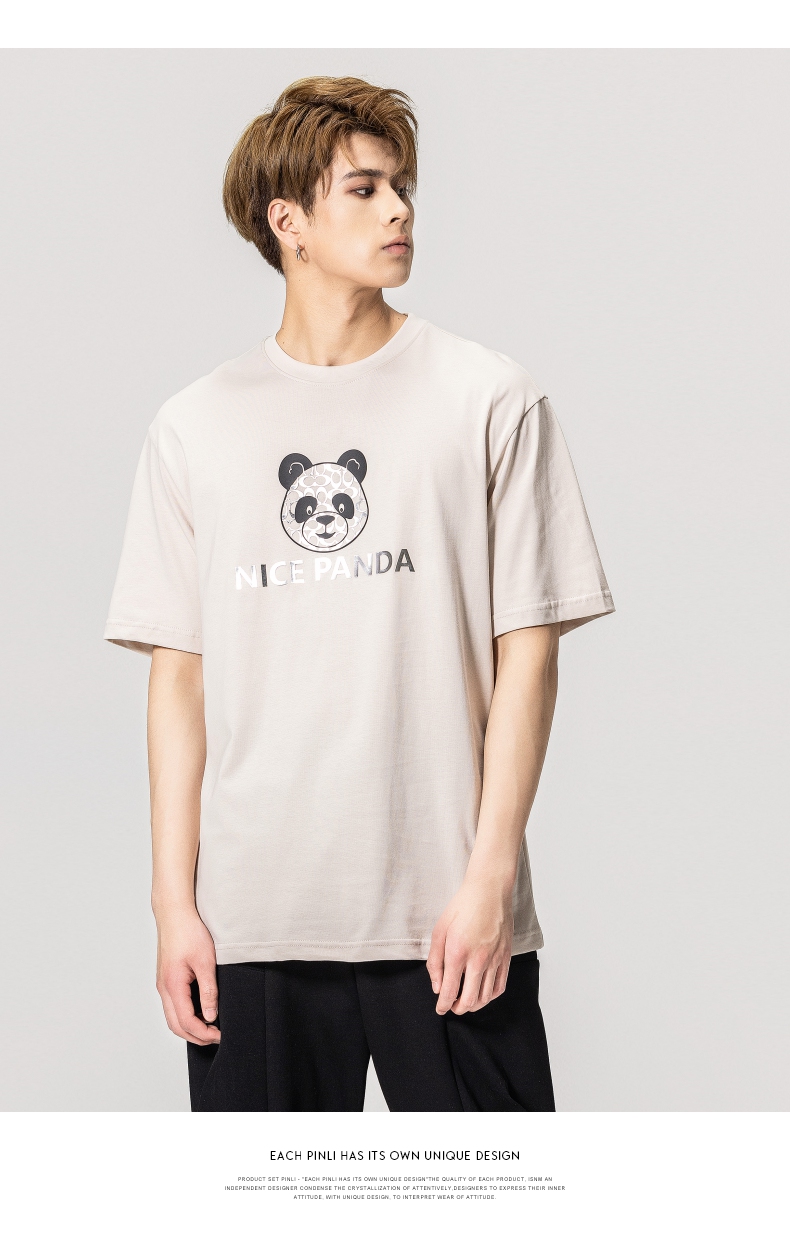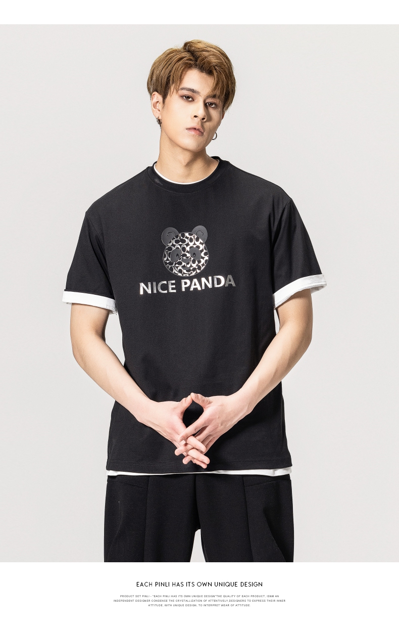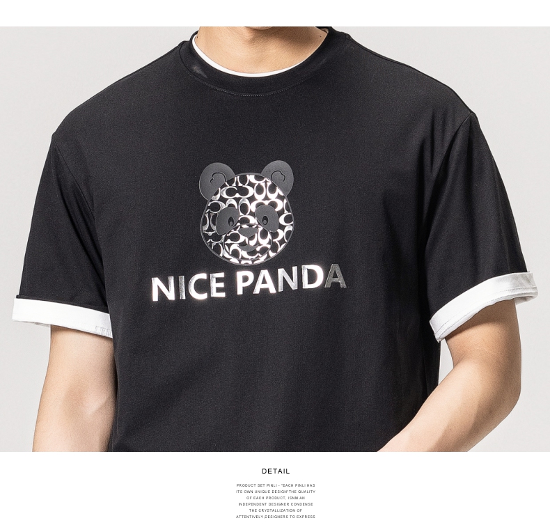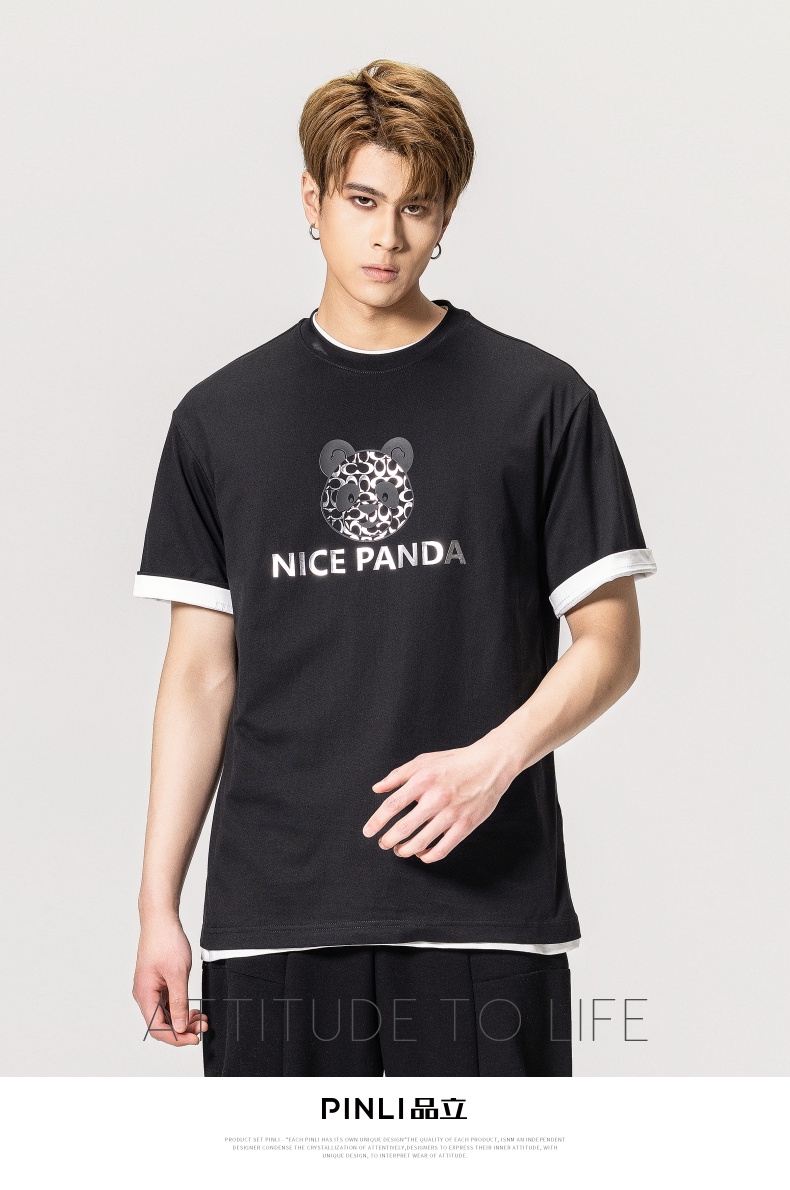 PINLI品立春季新款熊猫印花短袖T恤男士休闲上衣BG231111051