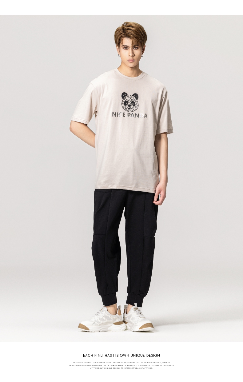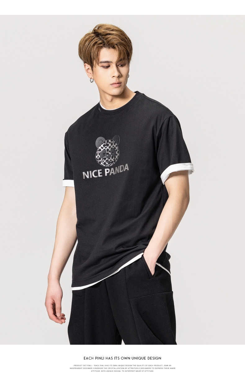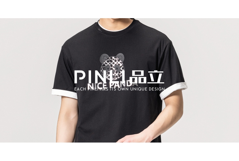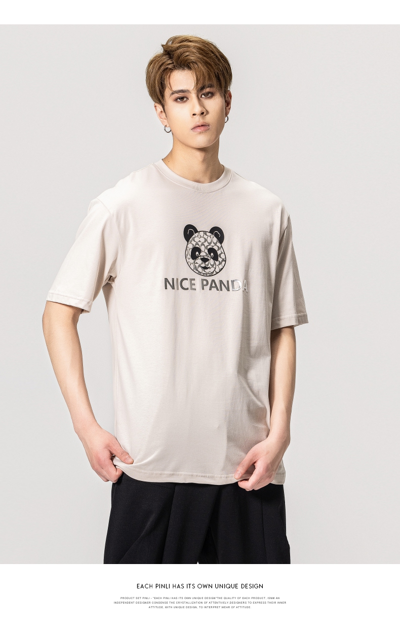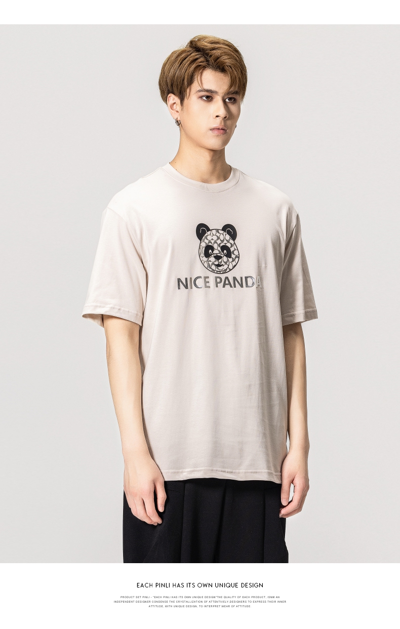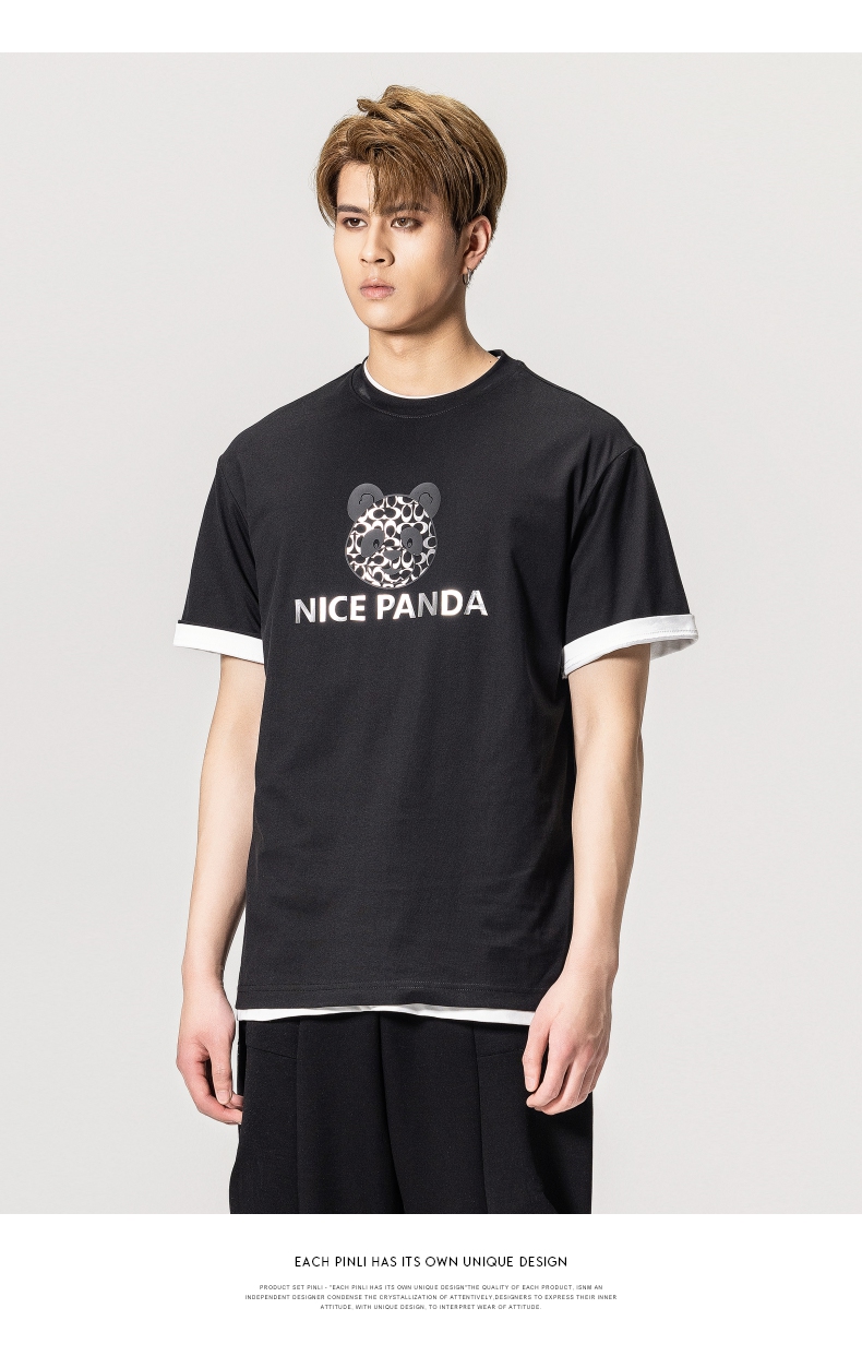 PINLI品立春季新款熊猫印花短袖T恤男士休闲上衣BG231111051