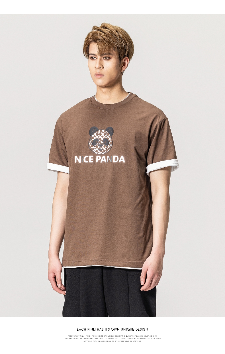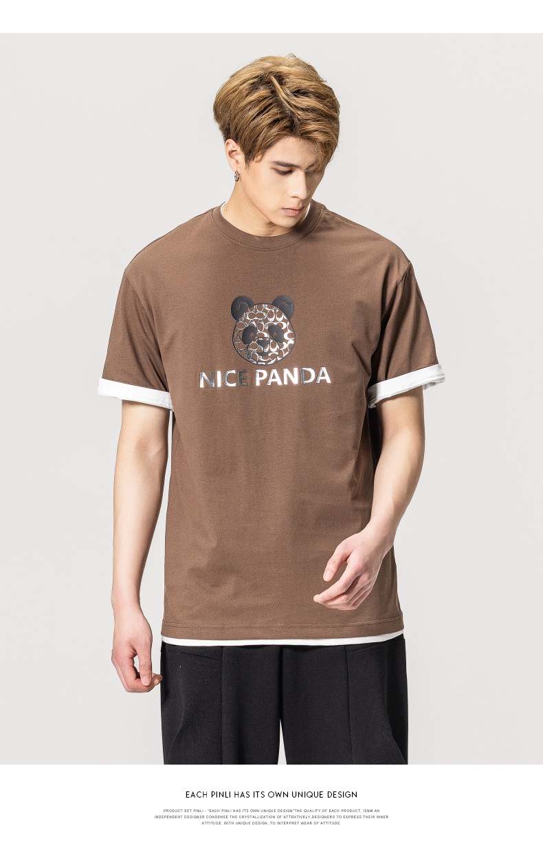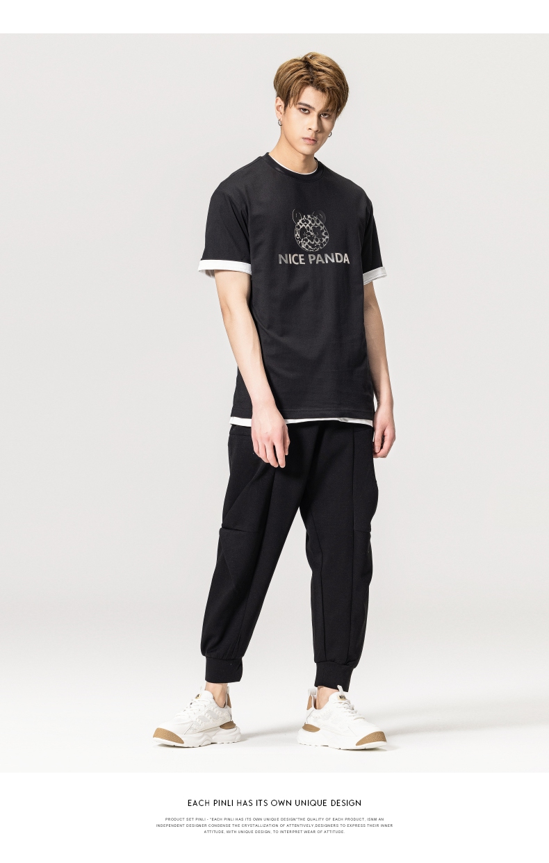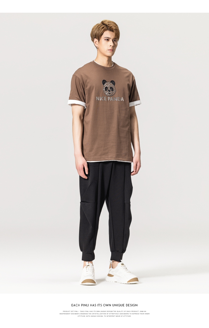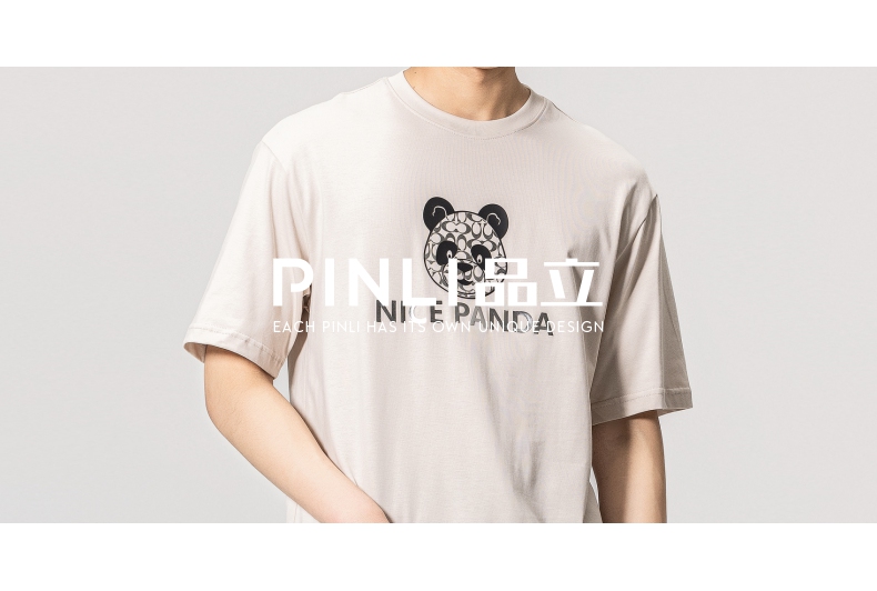 PINLI品立春季新款熊猫印花短袖T恤男士休闲上衣BG231111051