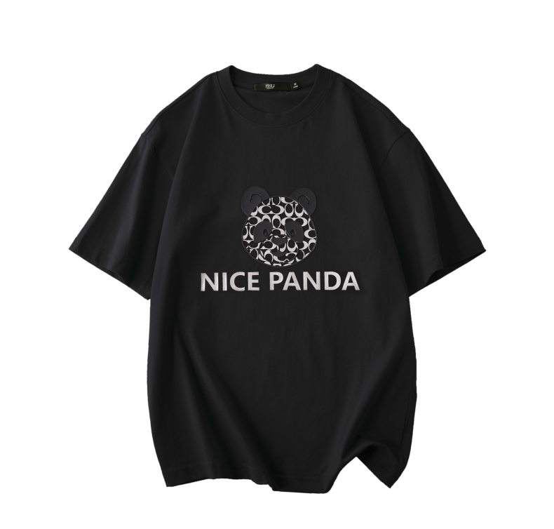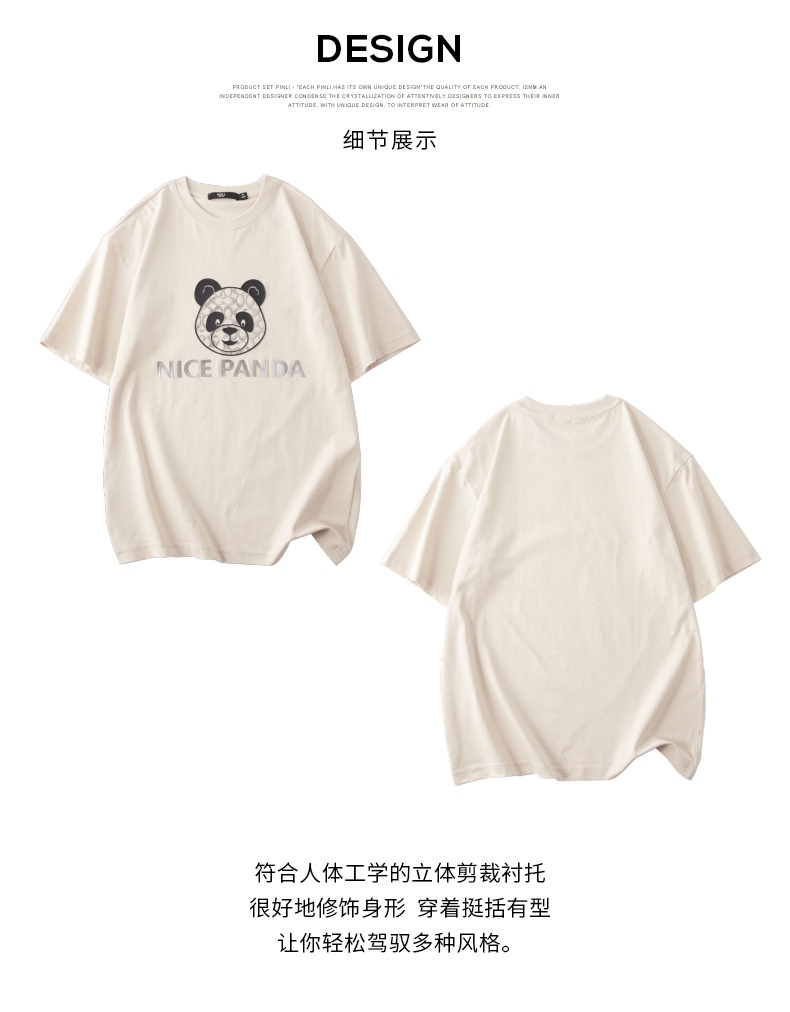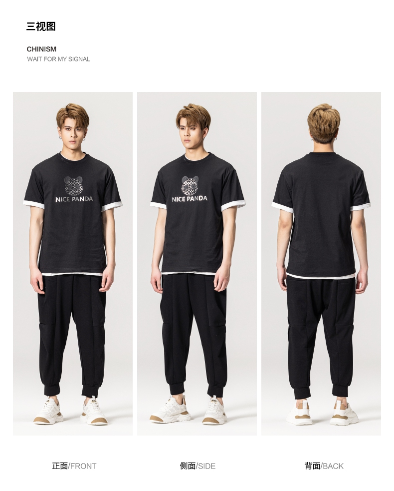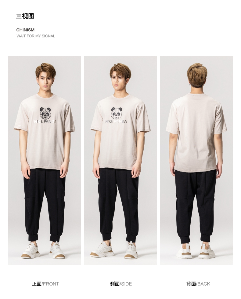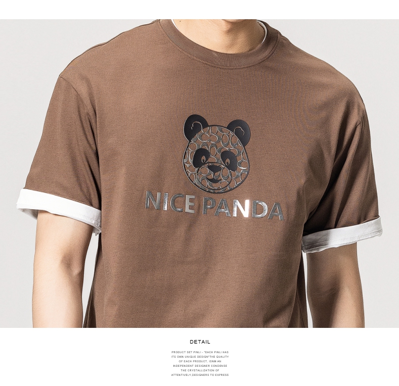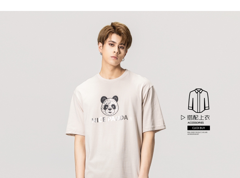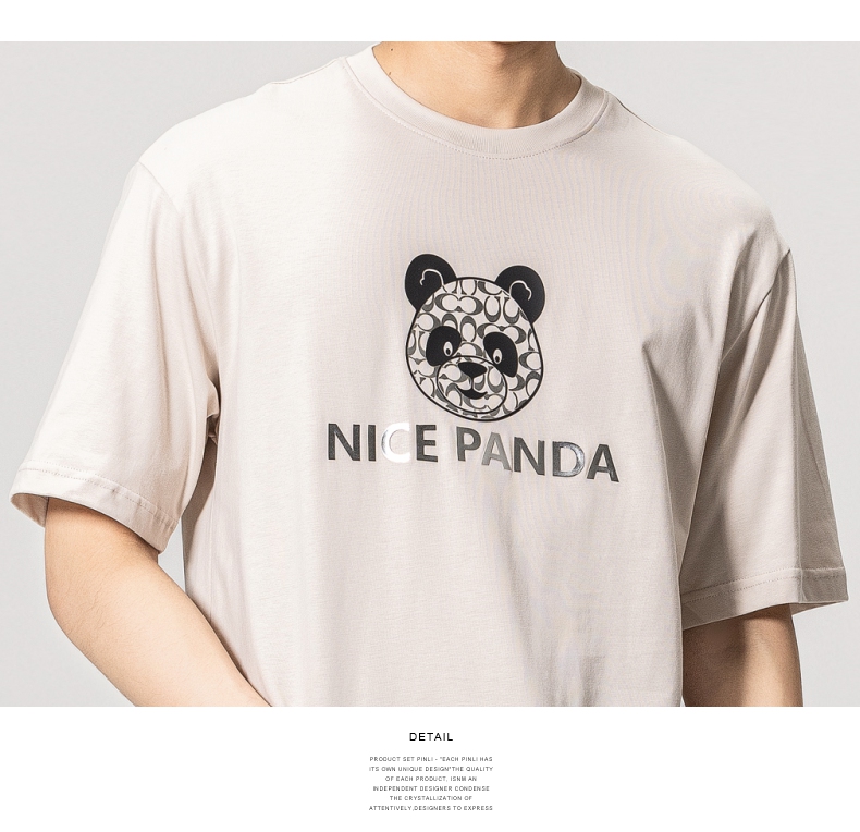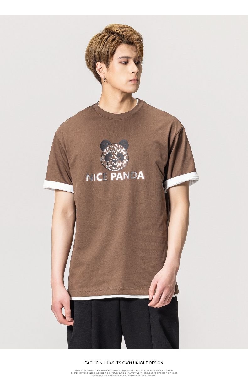PINLI品立春季新款熊猫印花短袖T恤男士休闲上衣BG231111051
