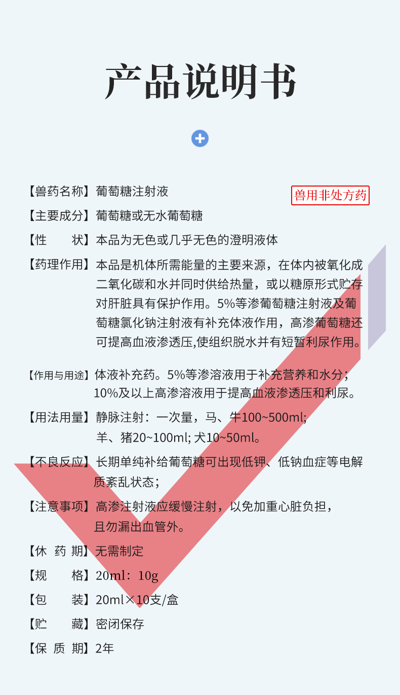 华畜50%葡萄糖注射液 补充能量低血糖症 组织脱水症