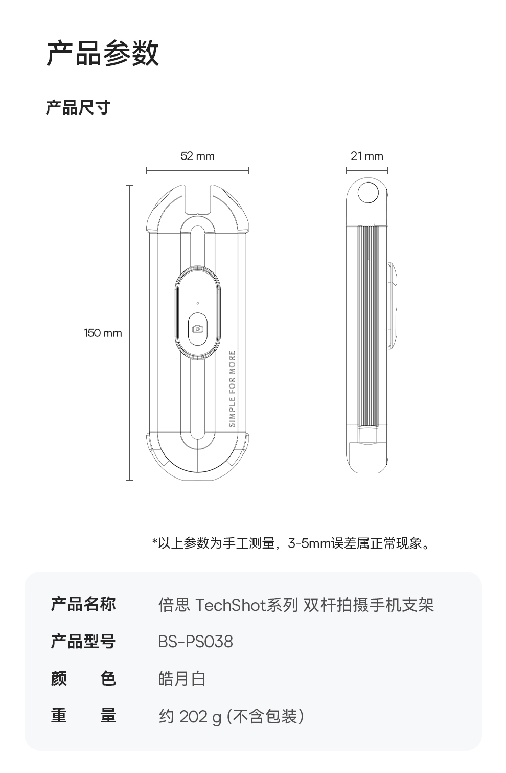 【十一专享】倍思 TechShot系列 双杆拍摄手机支架