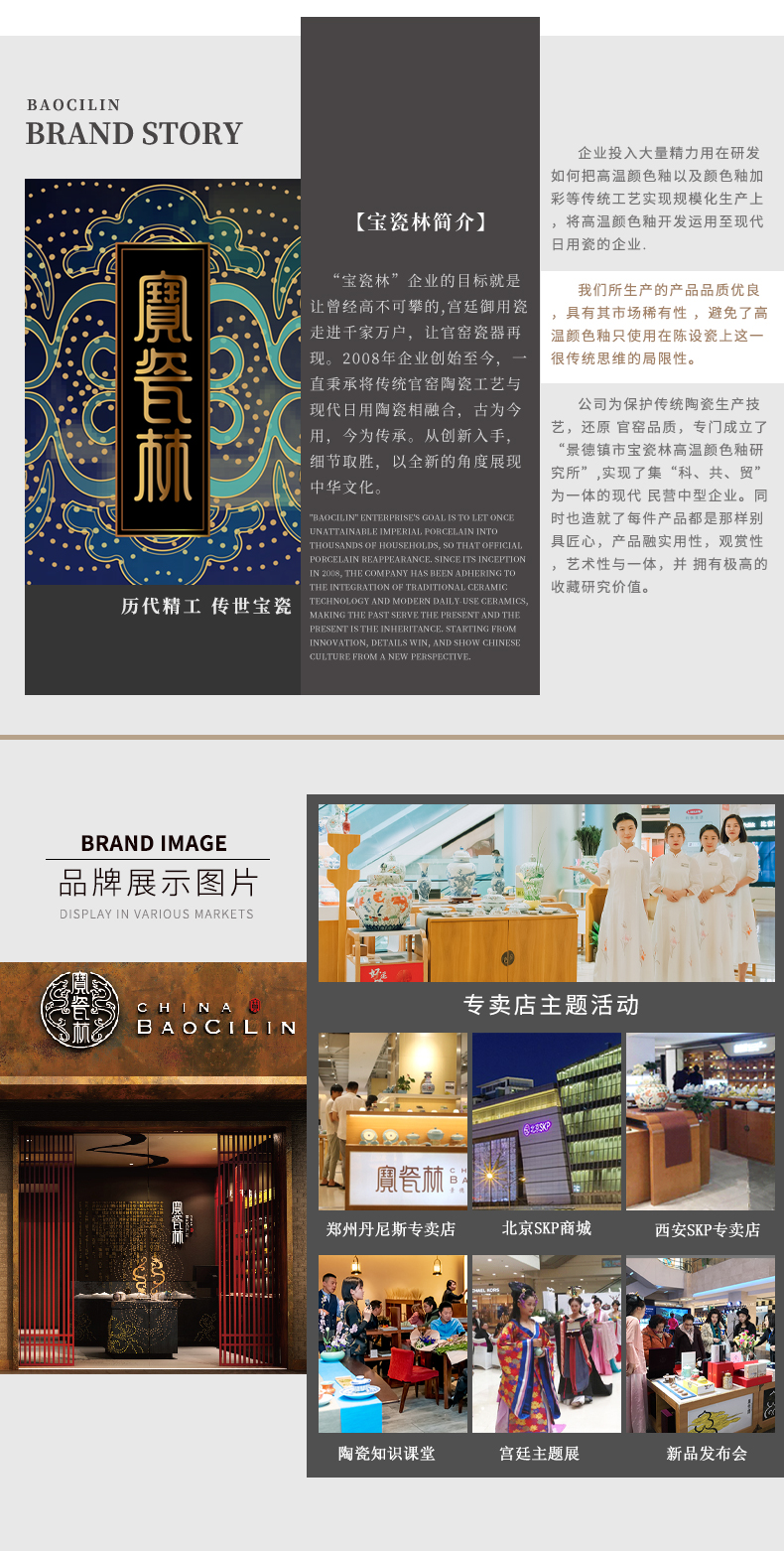 宝瓷林,2008年创立,是一家将传统清宫官窑制瓷技艺,移植于当代家居日用瓷品上的景德镇陶瓷骨干企业,是当下唯一一家代表“千年瓷都-景德镇”走向全球的陶瓷连锁品牌,被誉为陶瓷界的“国酒茅台”。
