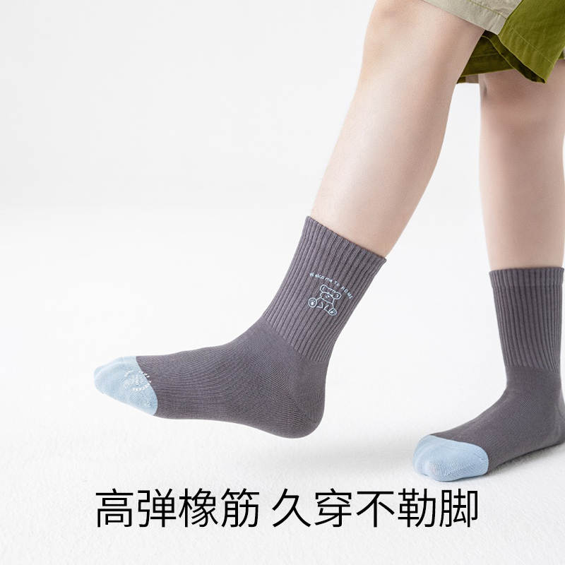 副歌7A健康儿童袜小熊刺绣图案A类面料不勒脚不硌脚