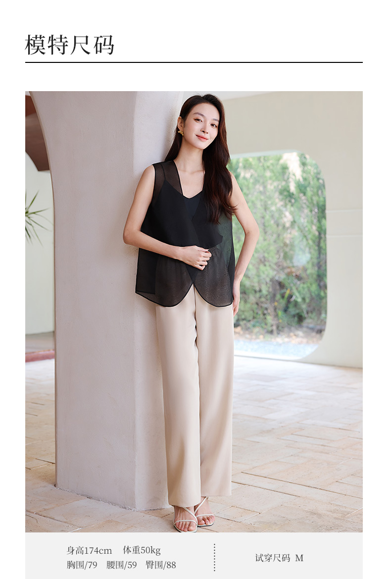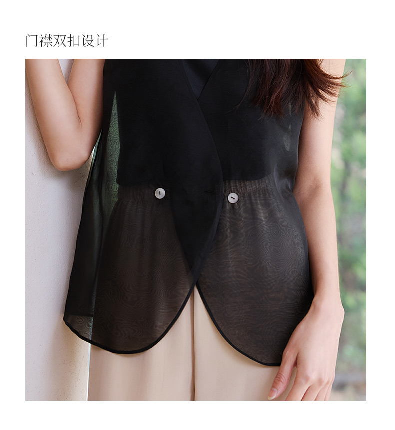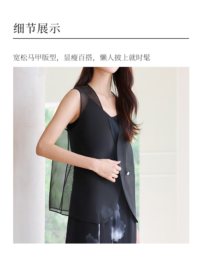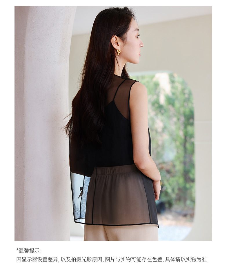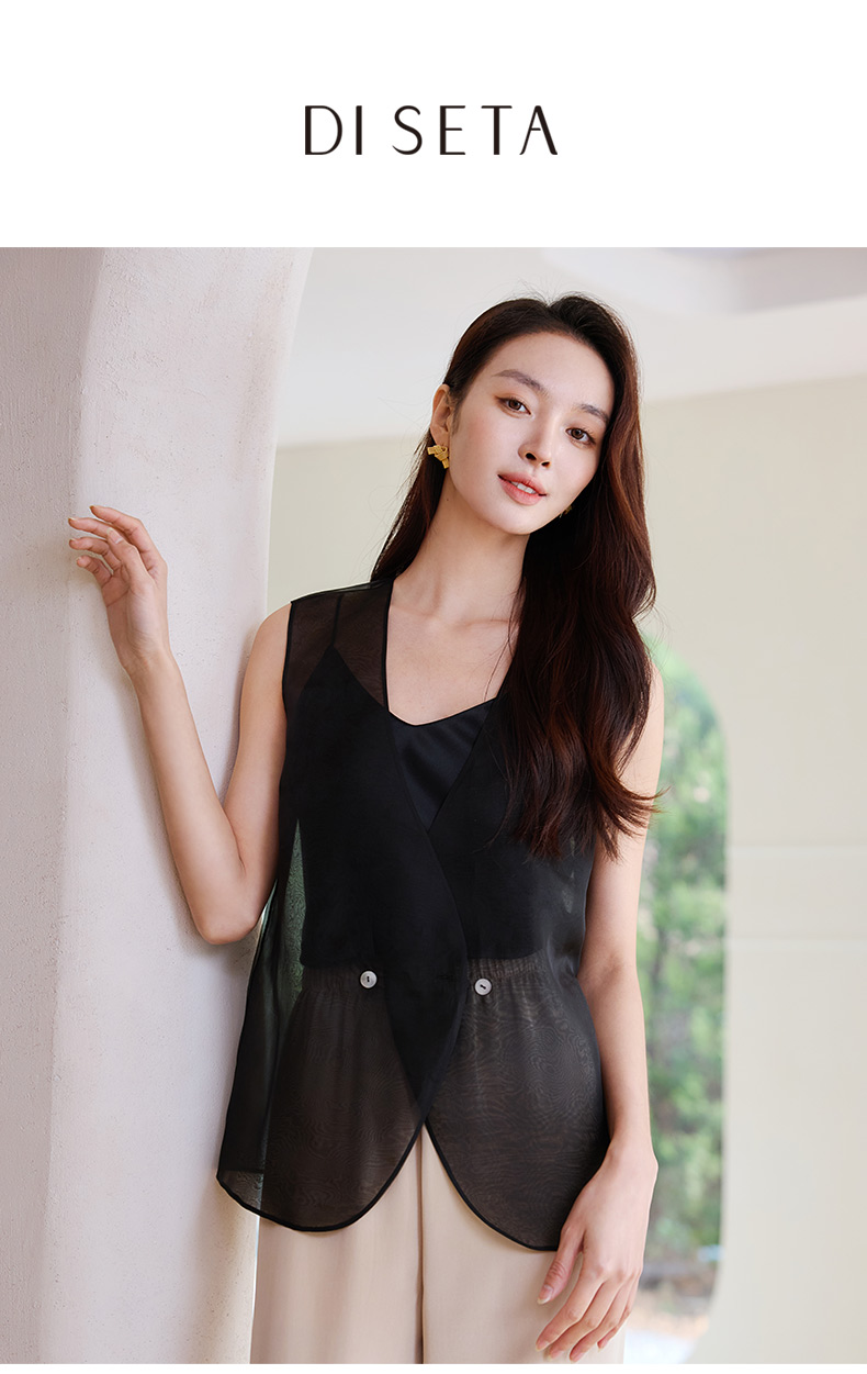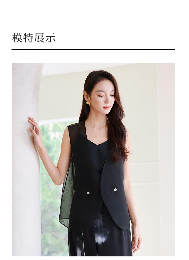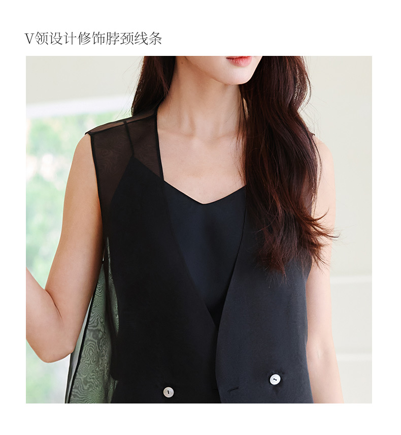 玳莎真丝欧根纱V领马甲女2025年夏季新款轻薄透气显瘦上衣外搭 FB37005