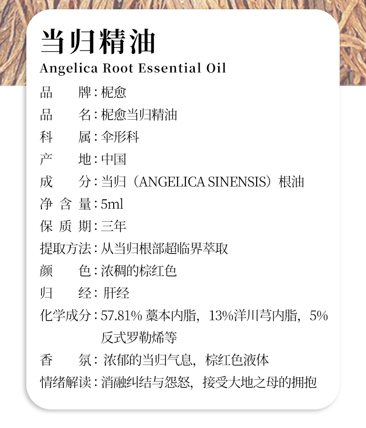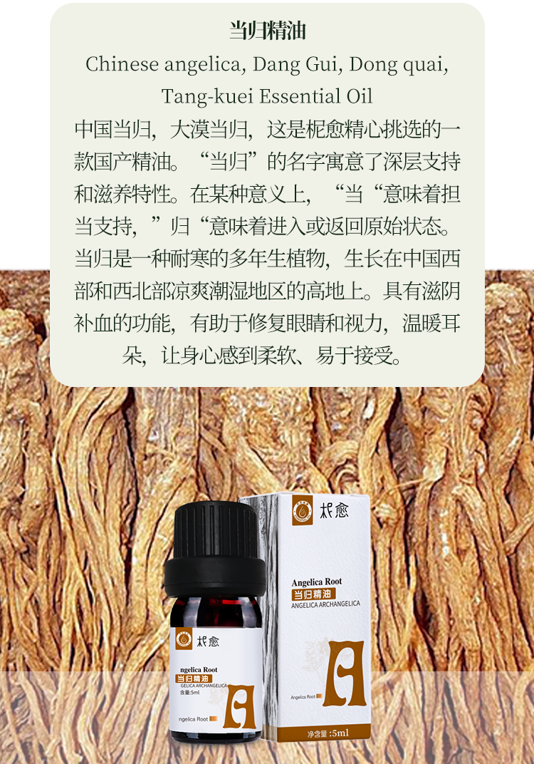 【柅愈】当归纯精油5ml 温养透亮 单方纯精油 扩香/熏香/调油