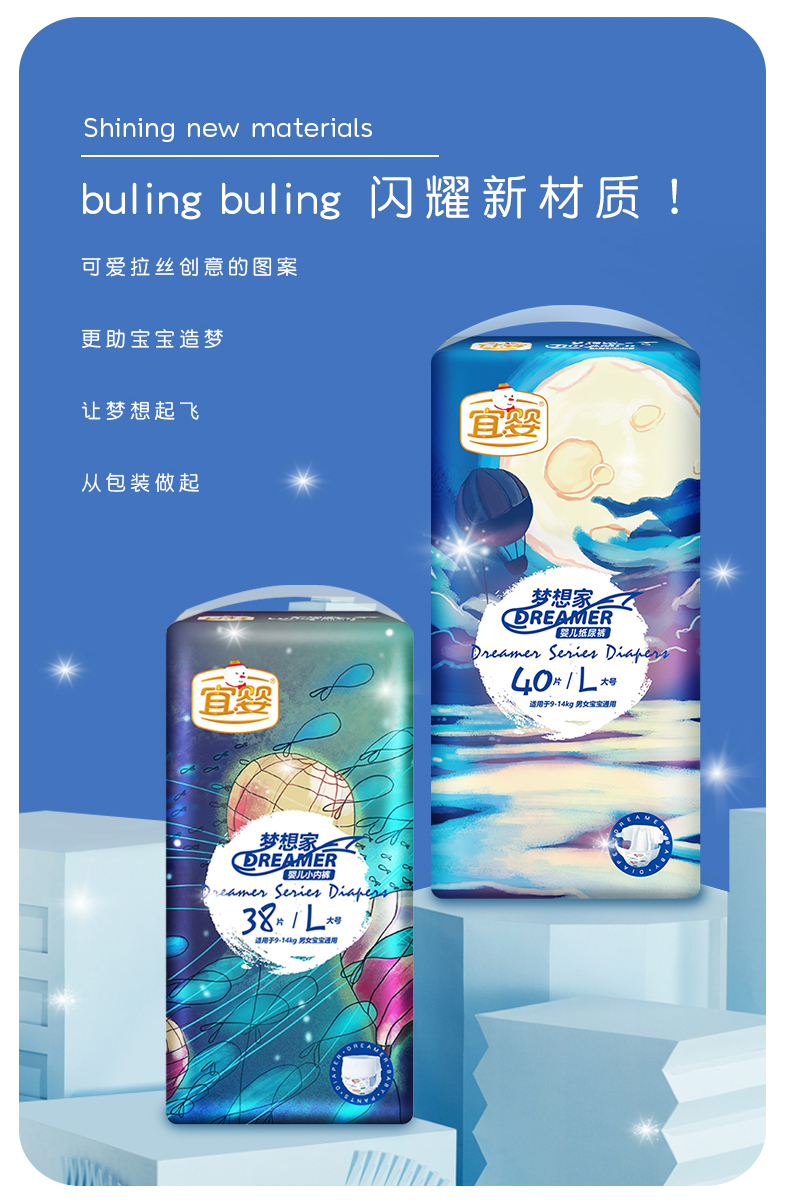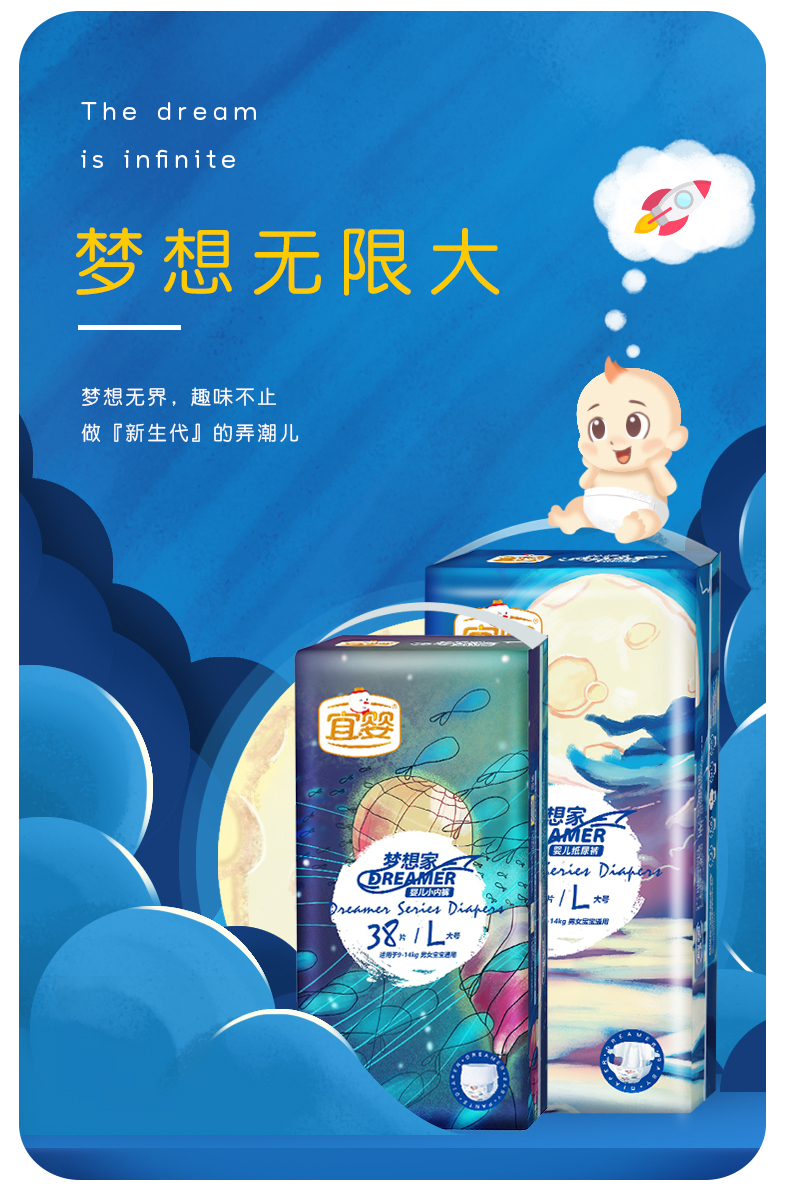 【2包装】宜婴梦想家系列纸尿裤拉拉裤(纸尿裤S M L XL XXL、拉拉裤M L XL XXL XXXL)