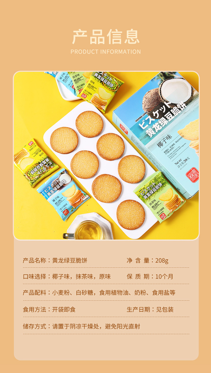 黄龙绿豆脆饼原味208g