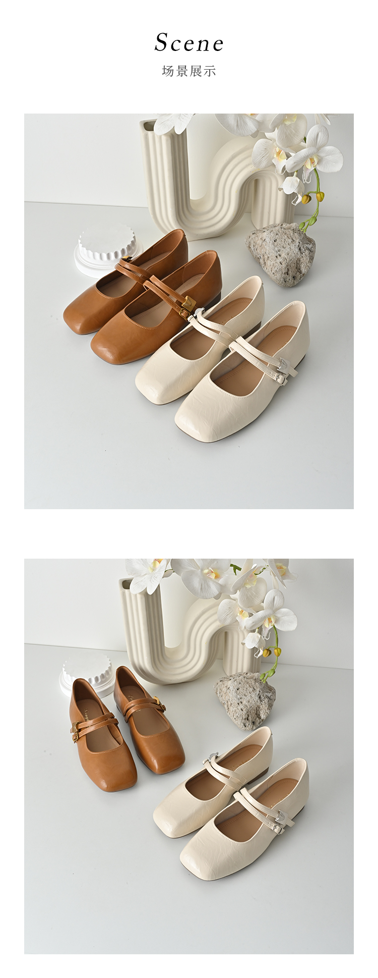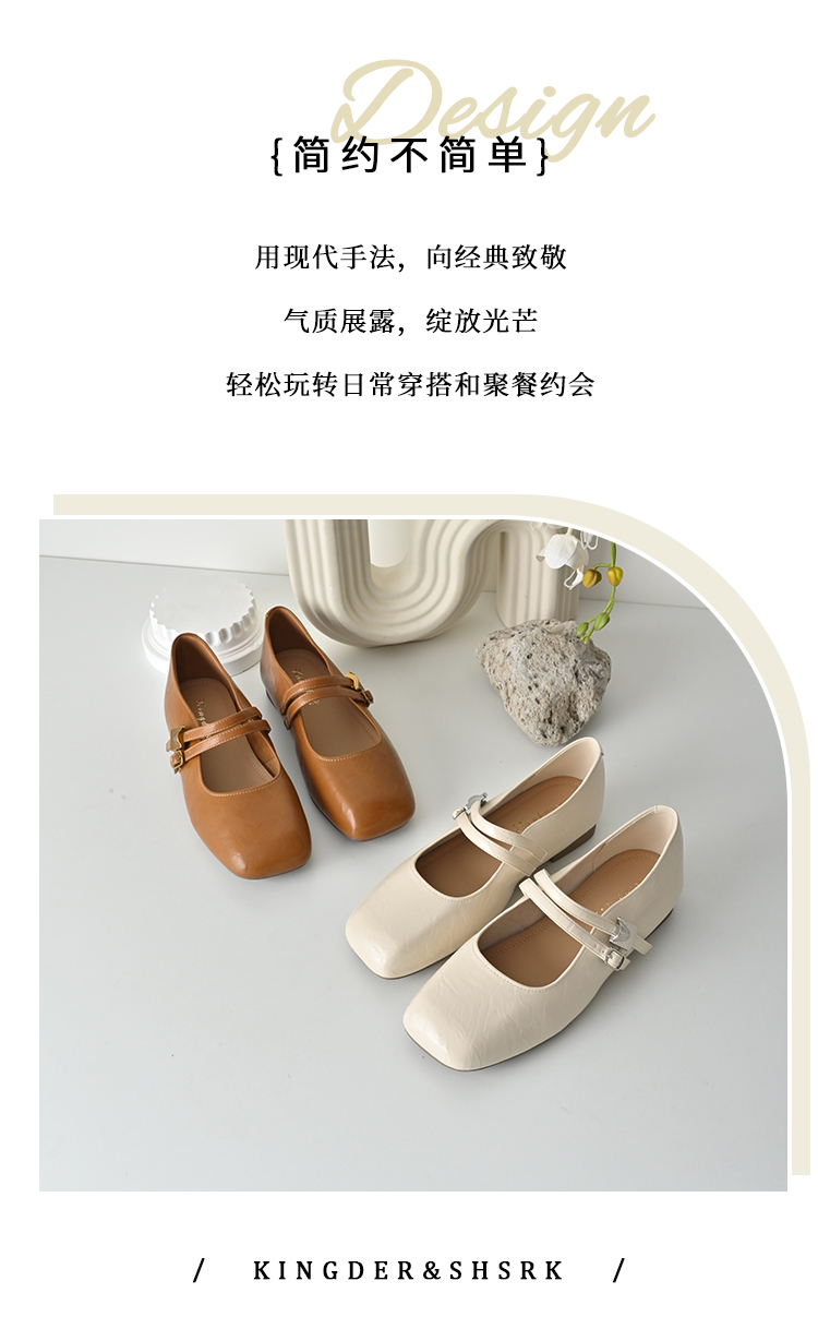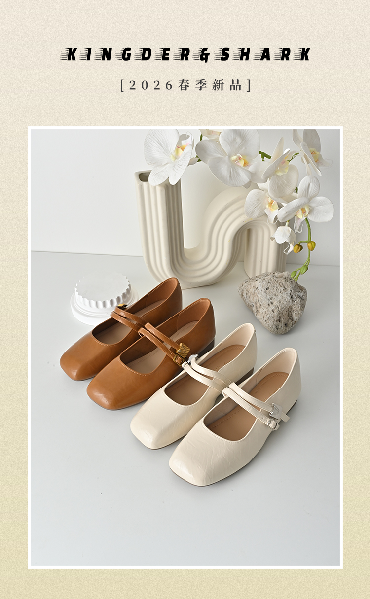 经典鲨2026年春专柜新品时尚方头一字式扣带通勤软底单鞋女KW89-617081