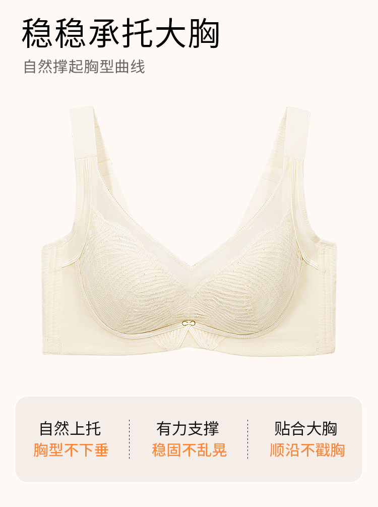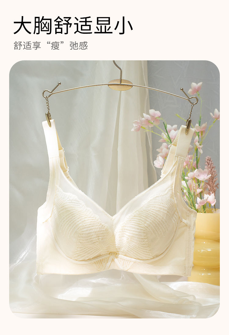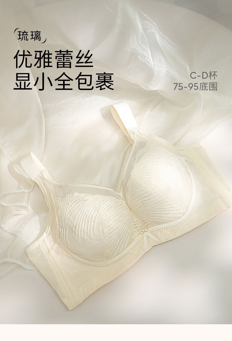 奶糖派琉璃文胸梦幻蕾丝大胸显小聚拢大胸承托防下垂透气薄款内衣