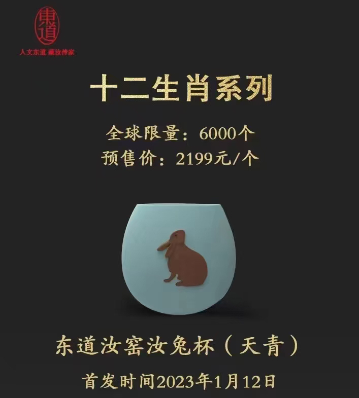东道汝窑|汝兔杯(2023葵卯兔年生肖不倒杯·天青)