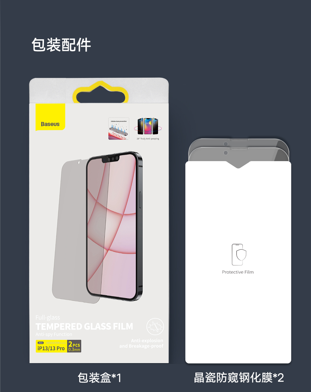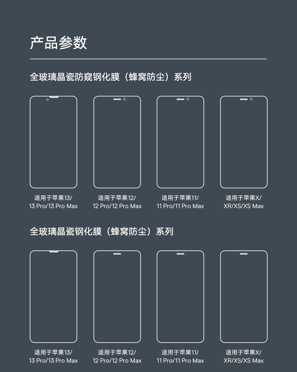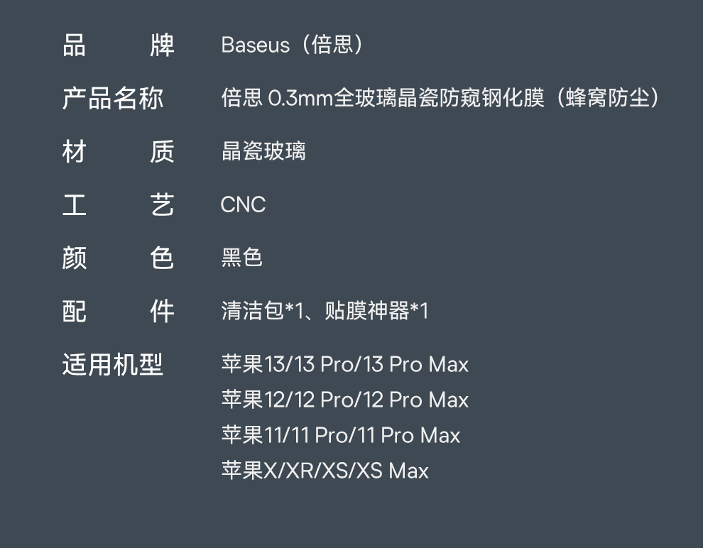 倍思 0.3mm全玻璃晶瓷钢化膜(蜂窝防尘) For iP系列