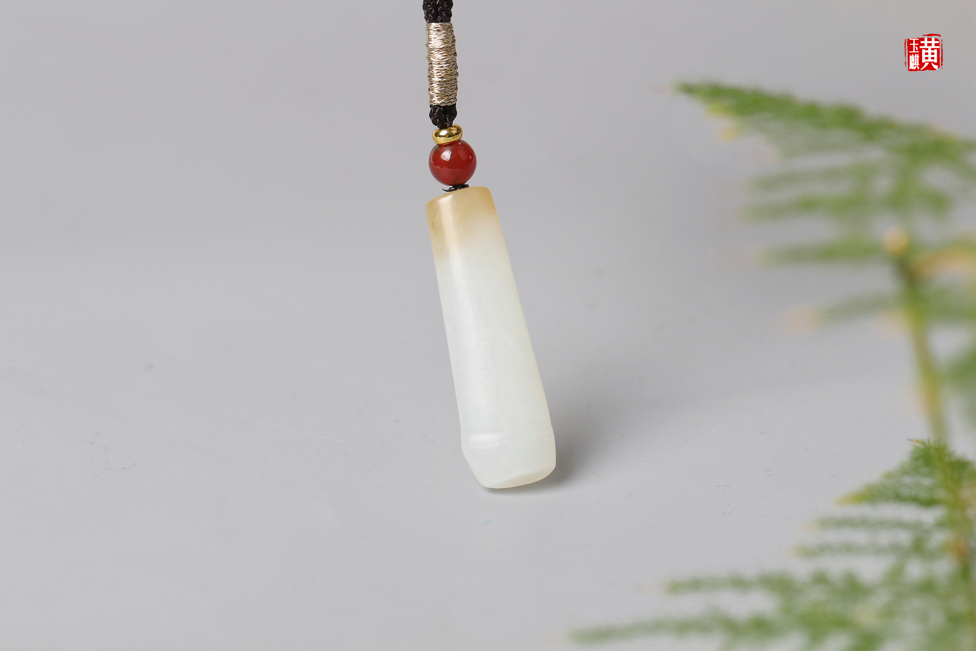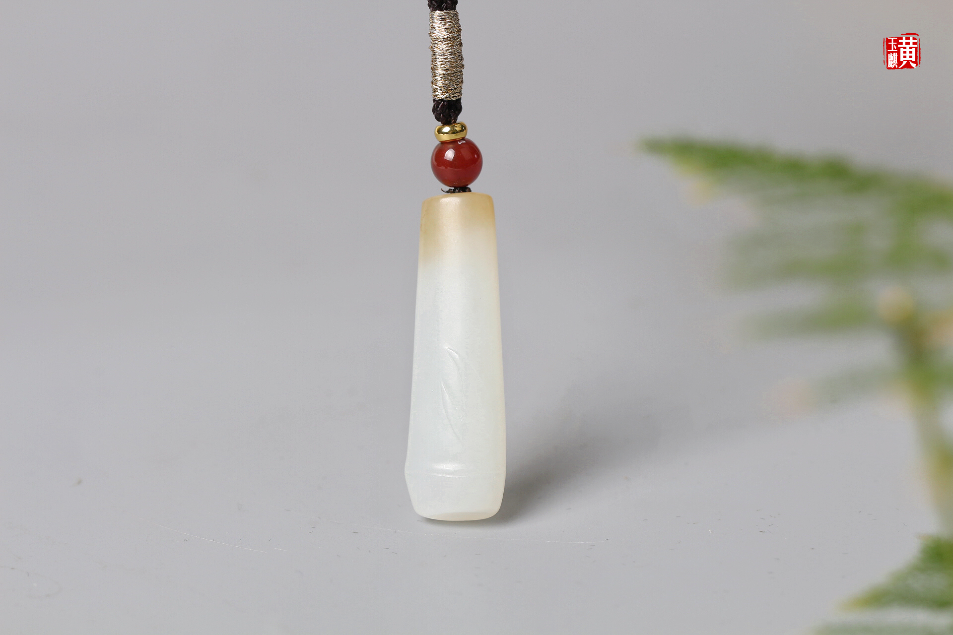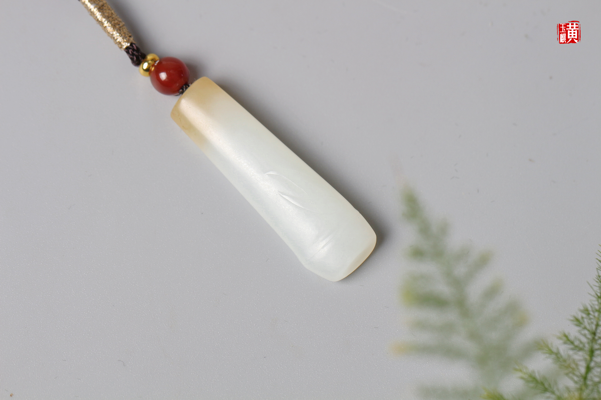 和田糖白玉竹节吊坠 配精美挂绳