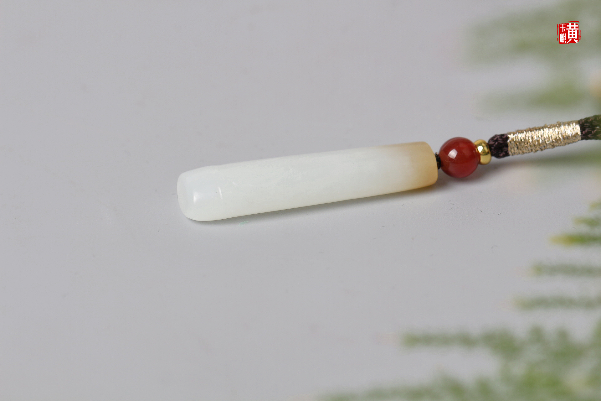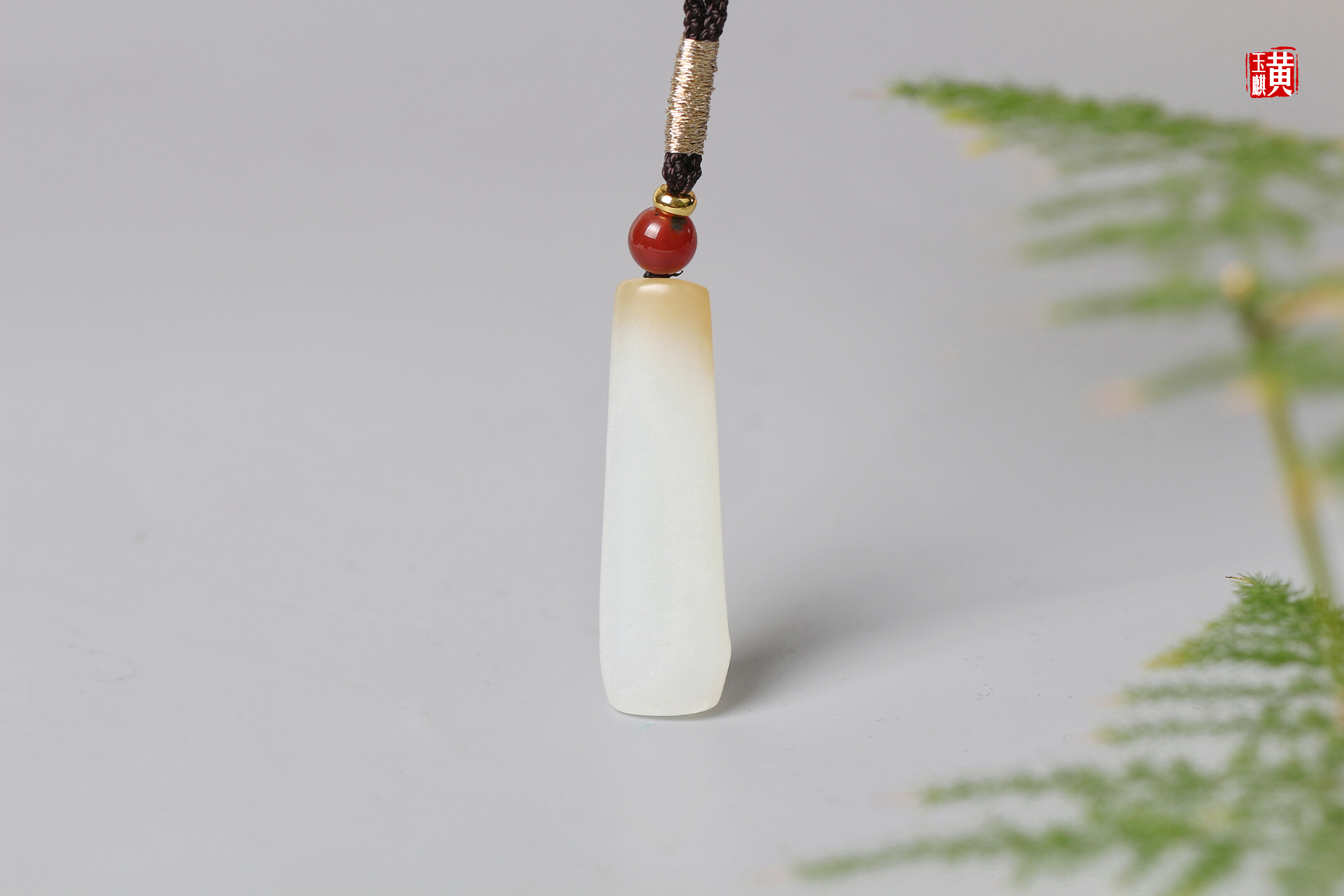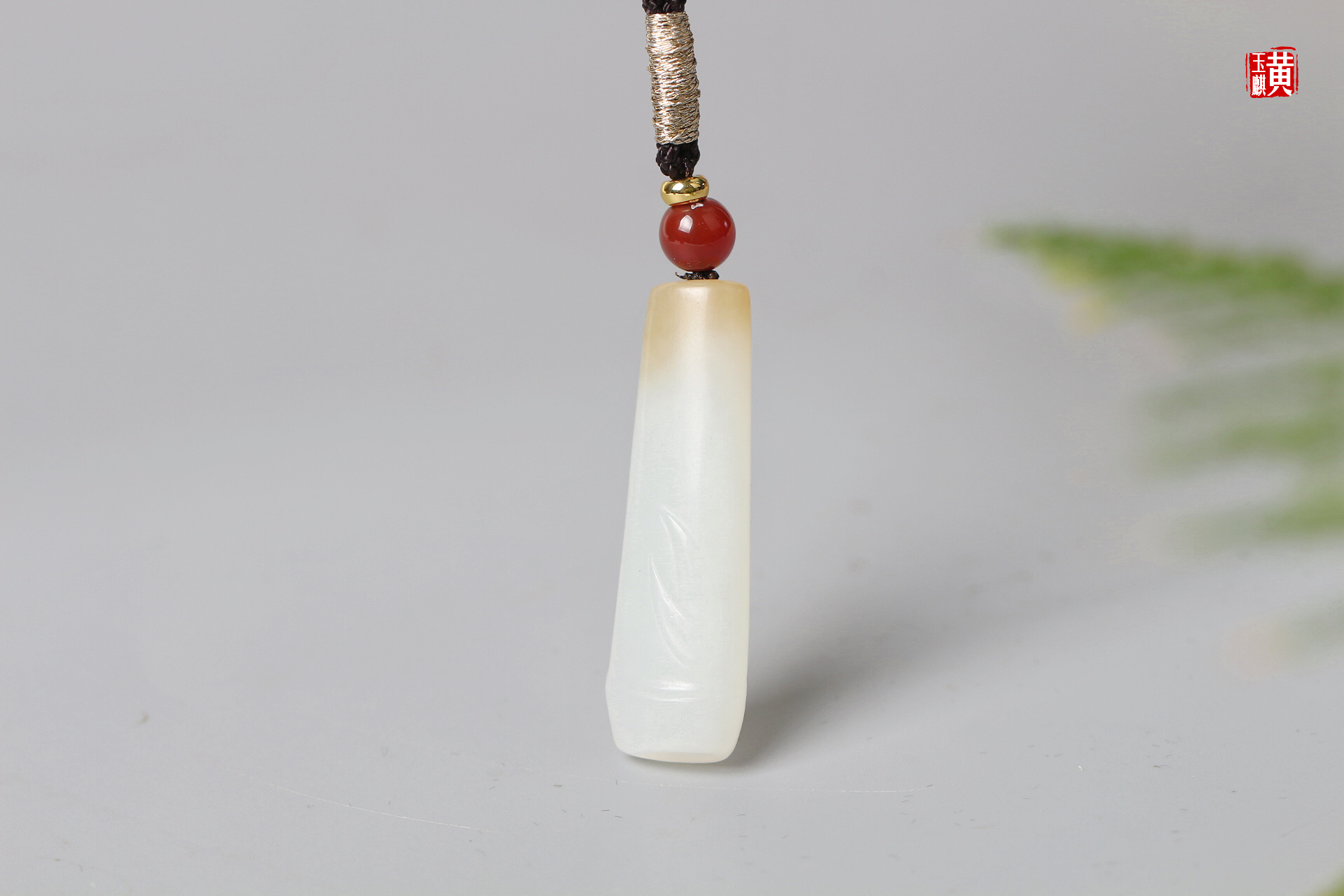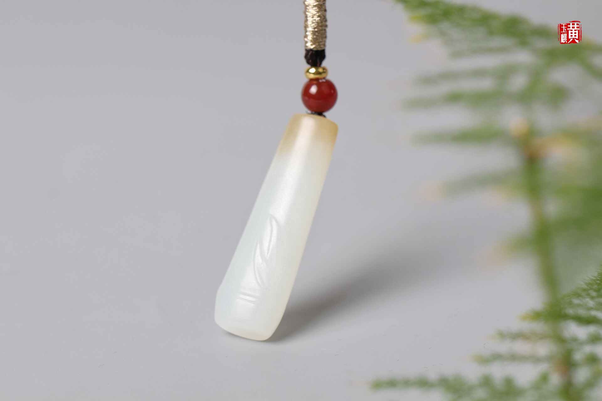和田糖白玉竹节吊坠 配精美挂绳