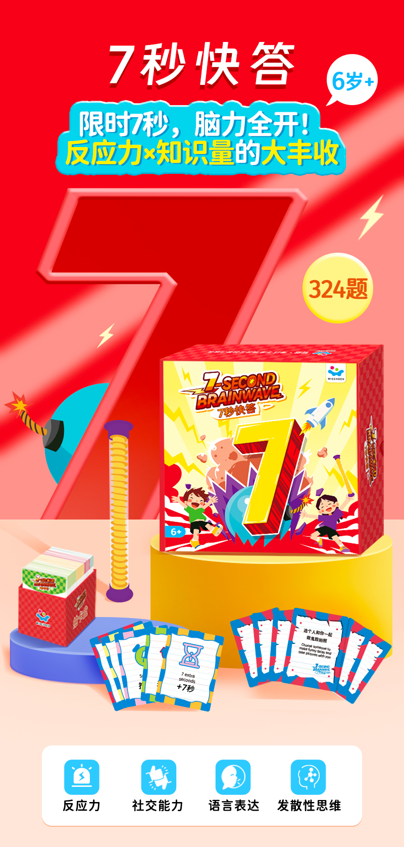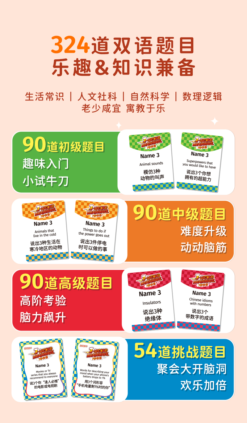 这就不得不提这款智蔻玩具的新品【7秒快答】,这是一款快速反应思维力游戏,玩家要在7秒内说出3个答案,玩法欢乐,还非常涨知识!