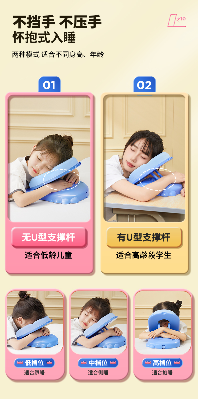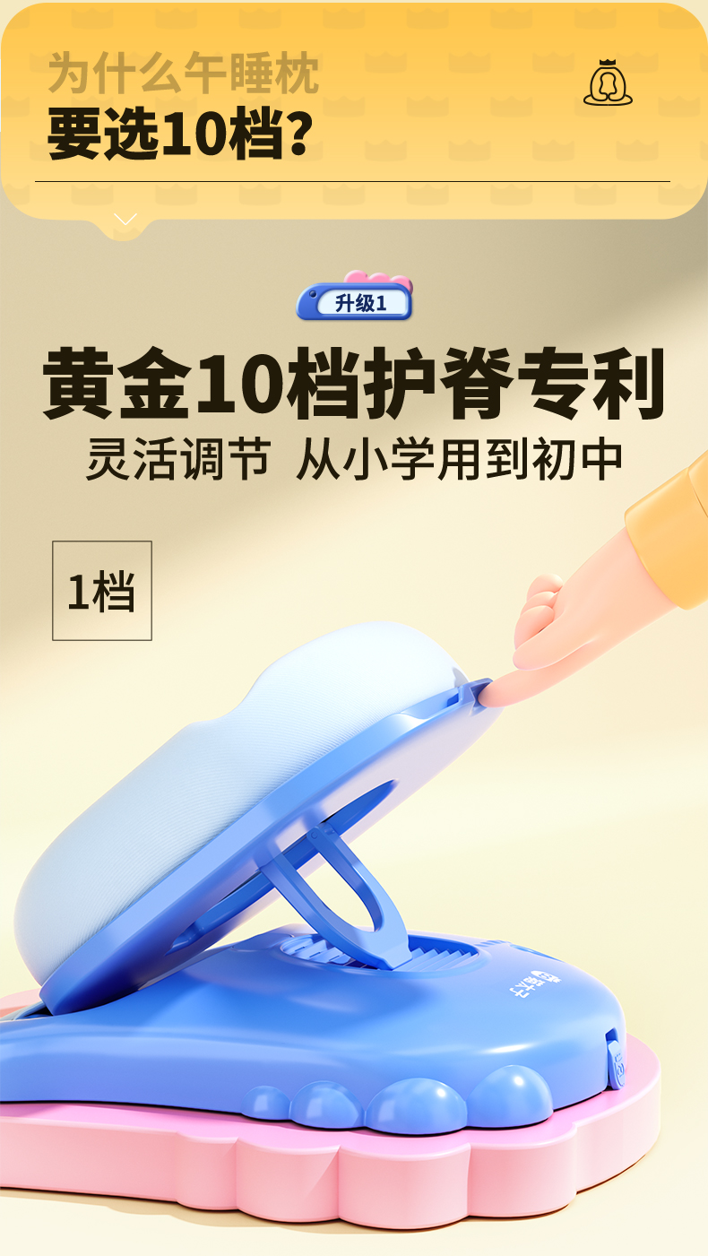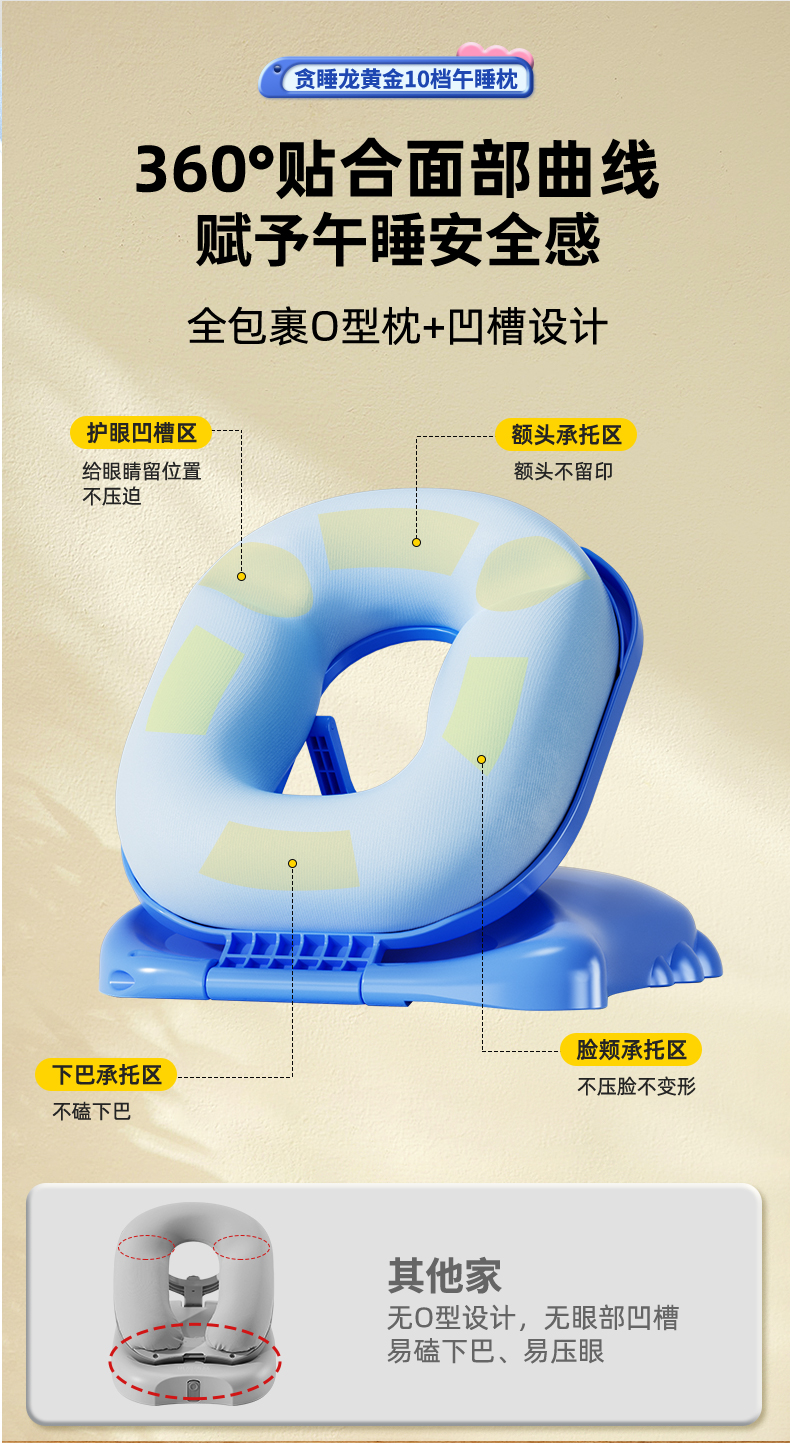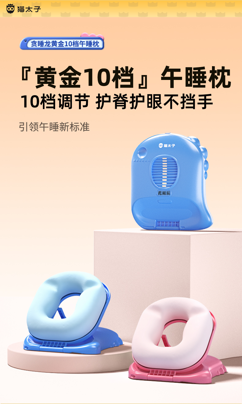 【午睡神器】猫太子黄金10档午睡枕-经典款 护脊护眼不挡手 全包裹0型枕 趴睡舒服
