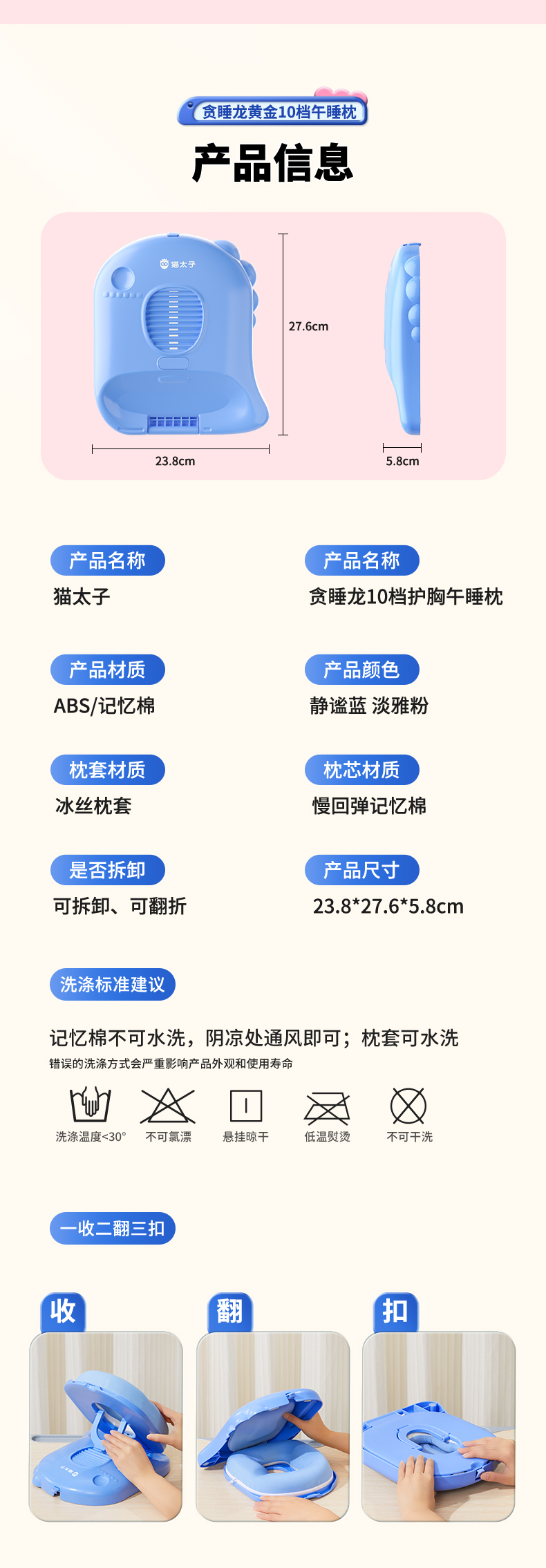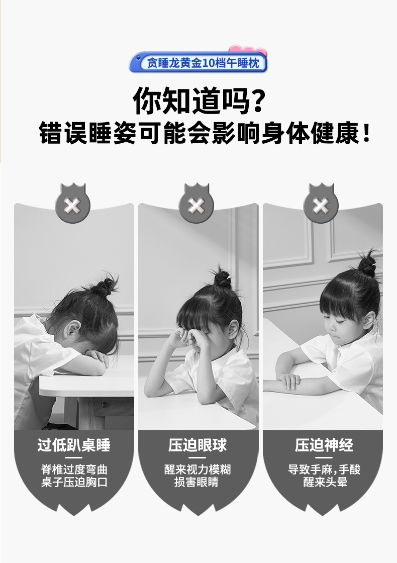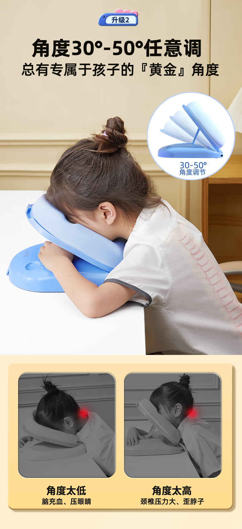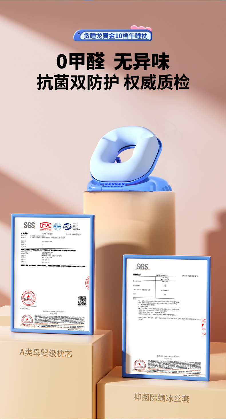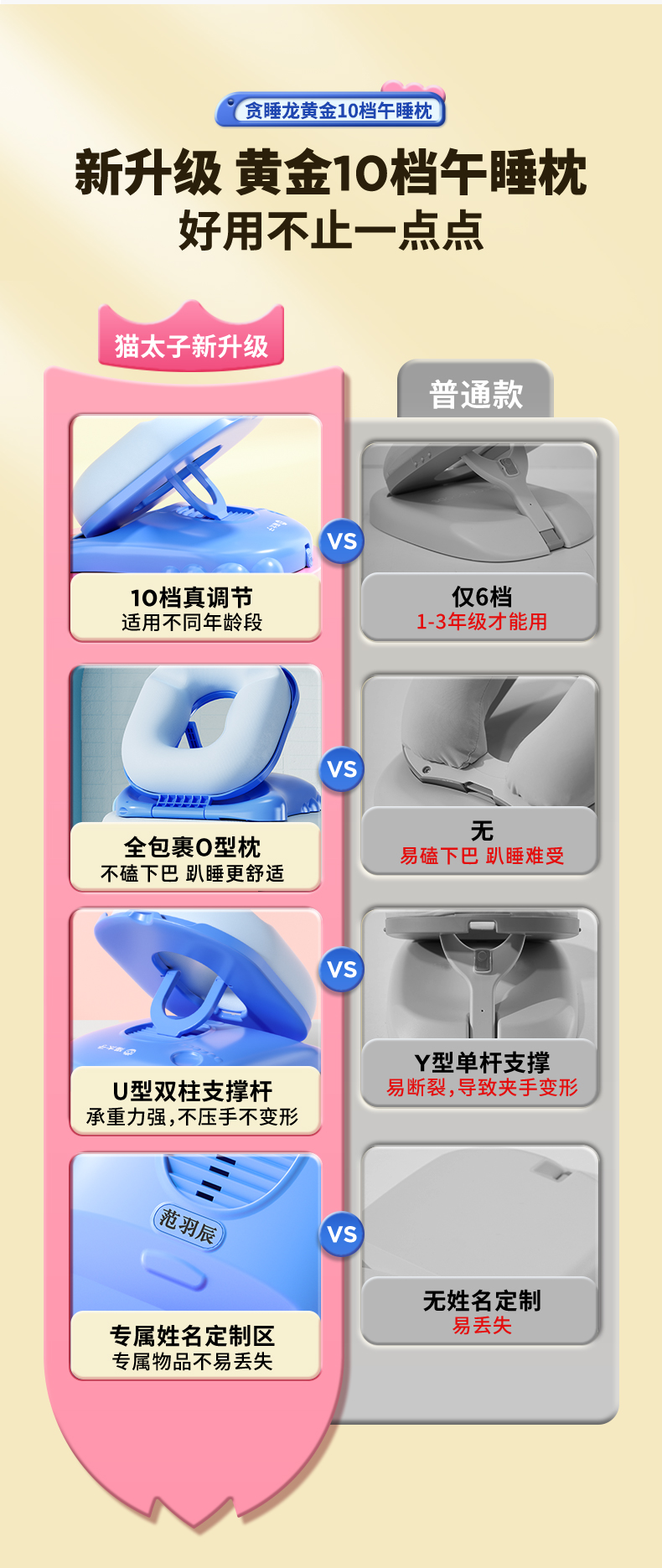 【午睡神器】猫太子黄金10档午睡枕-经典款 护脊护眼不挡手 全包裹0型枕 趴睡舒服