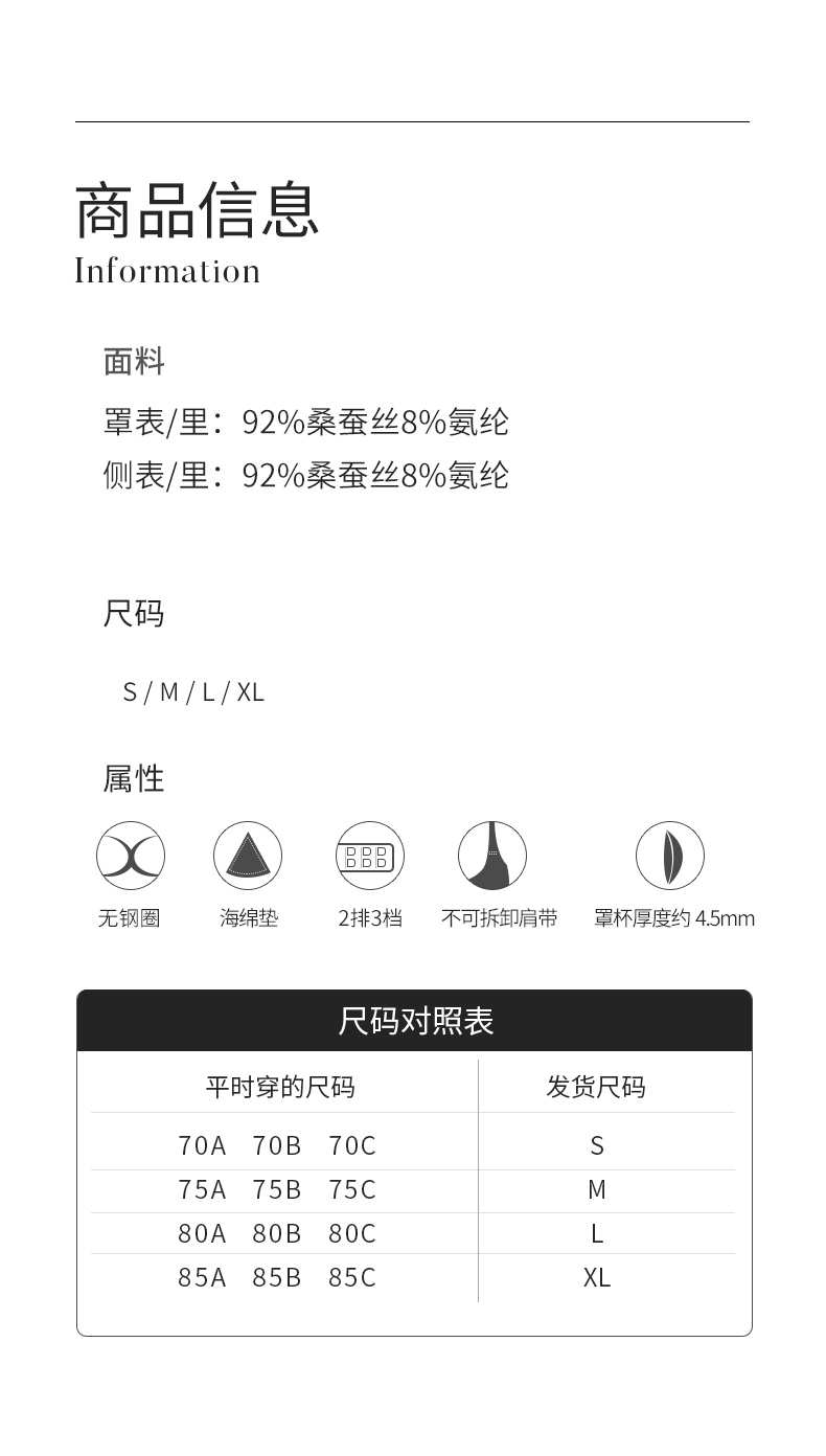 金三塔里外20姆米高弹桑蚕丝 舒适包容女士绸缎无钢圈美背文胸(会员活动专属链接) NZFDA306