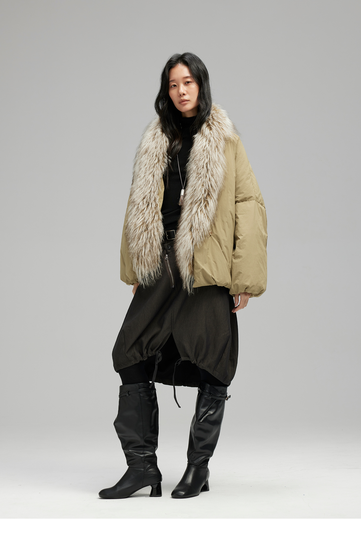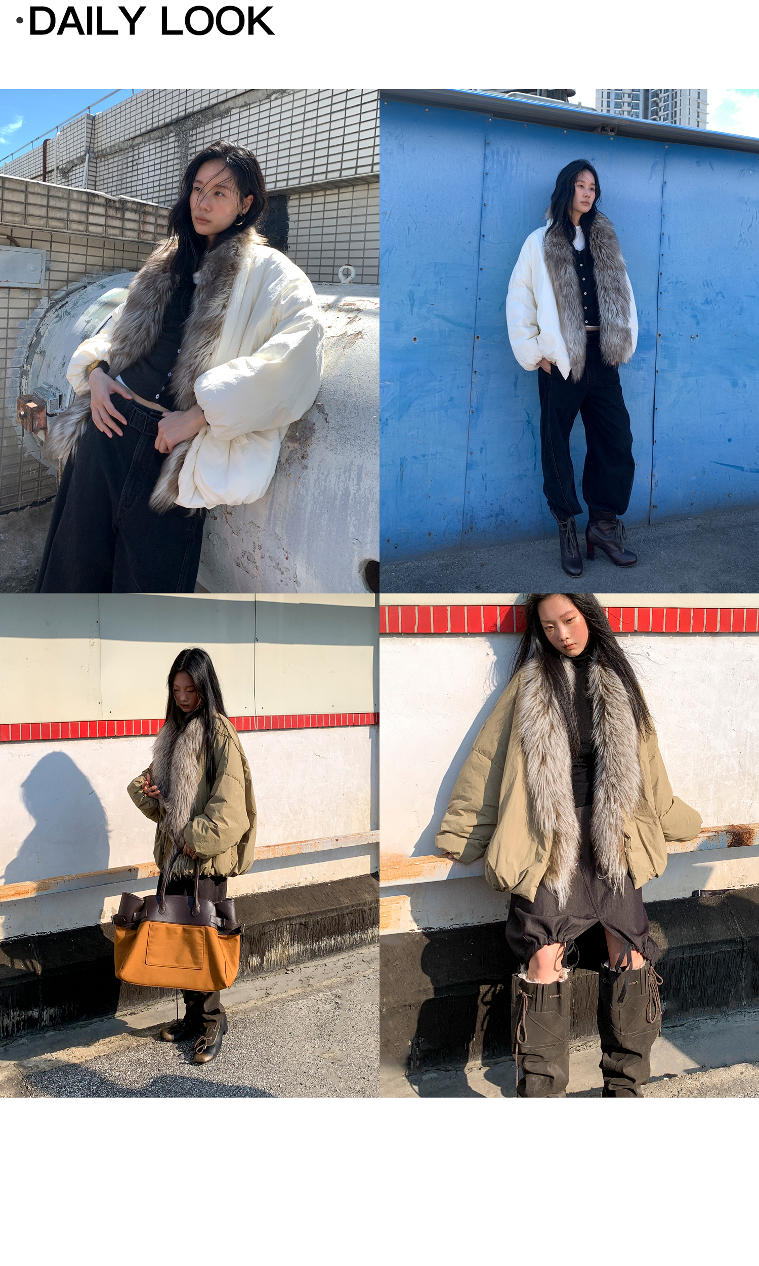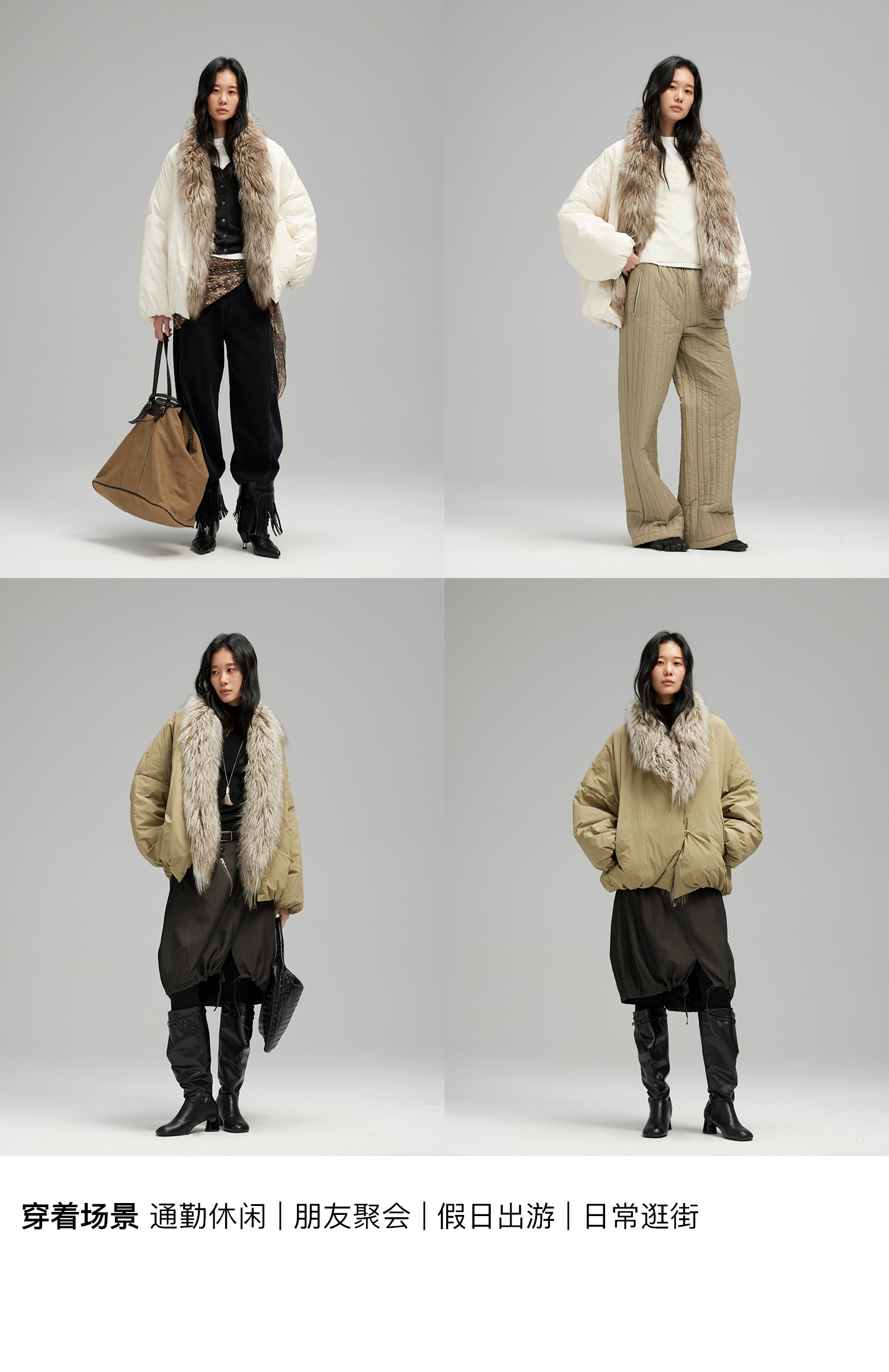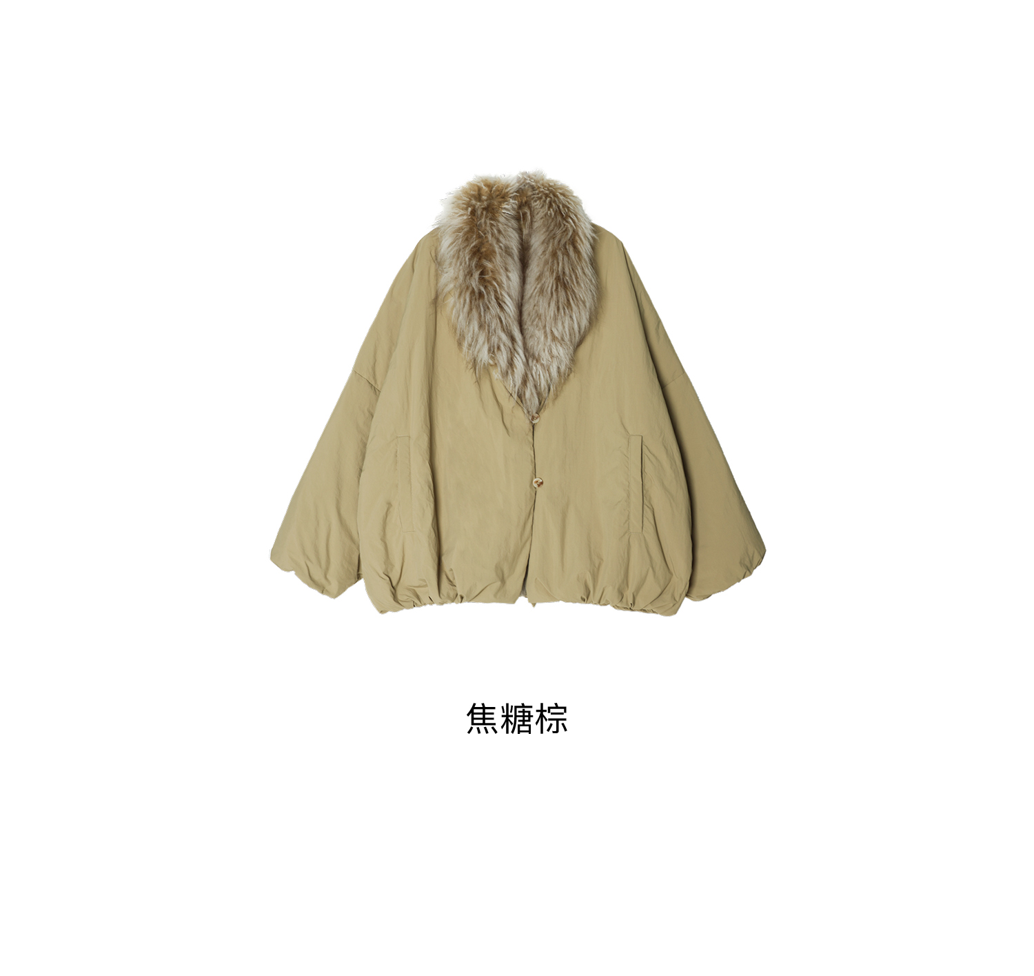 素舶 可拆卸皮草毛领花苞派克羽绒服短外套