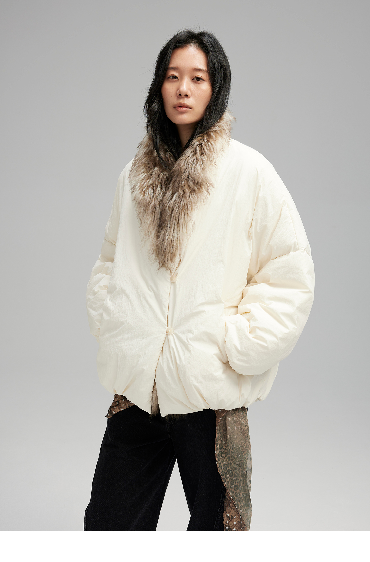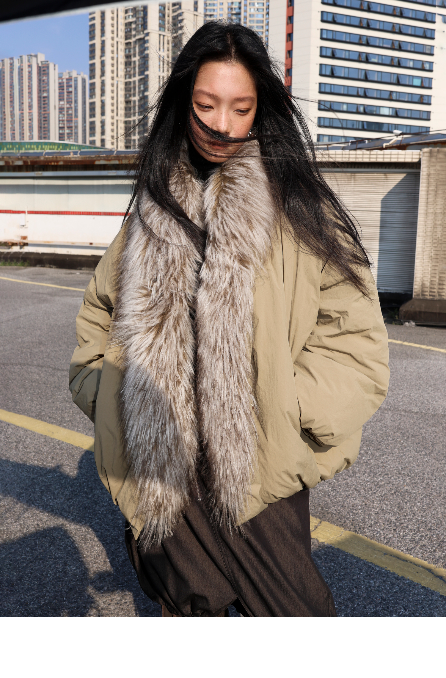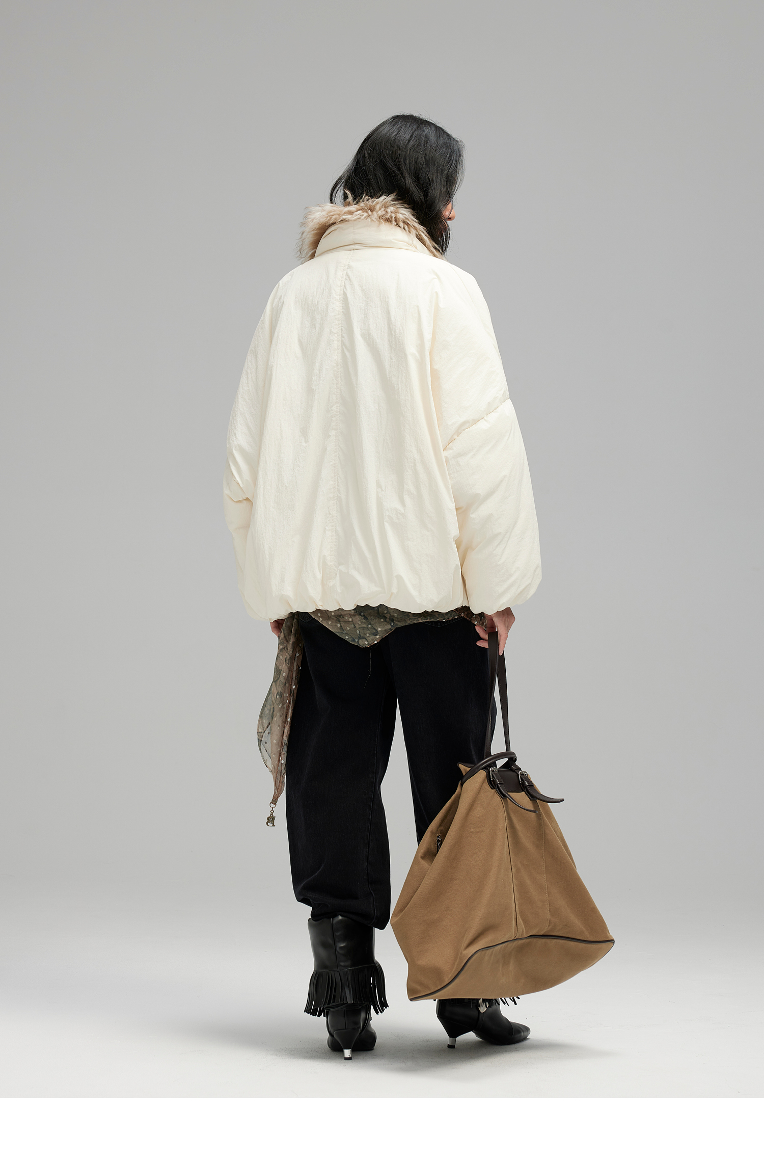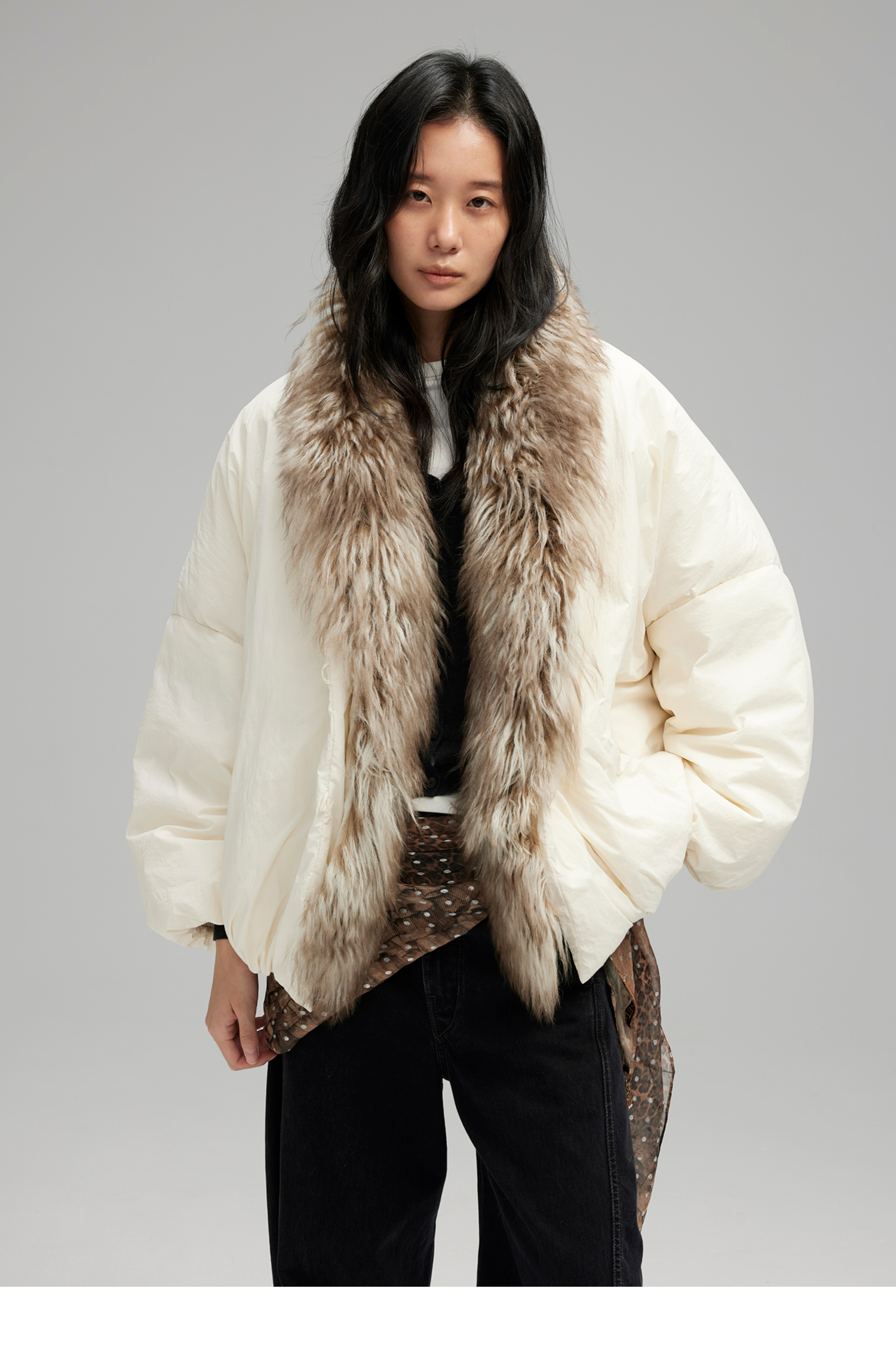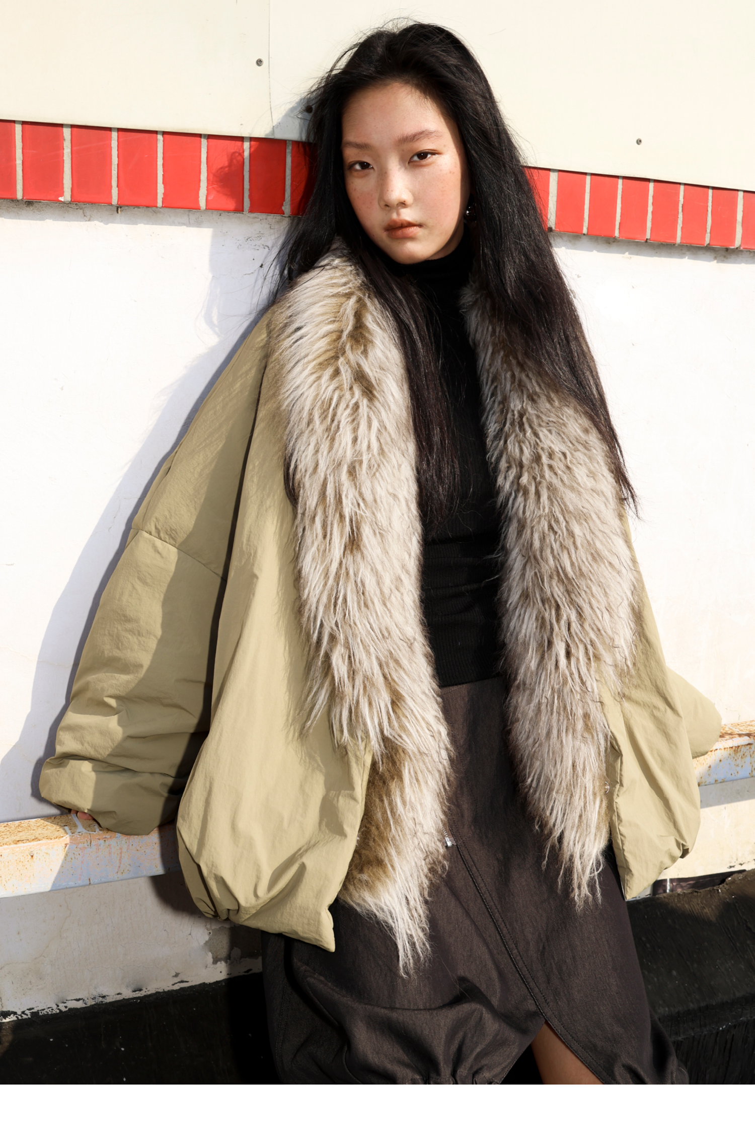 素舶 可拆卸皮草毛领花苞派克羽绒服短外套