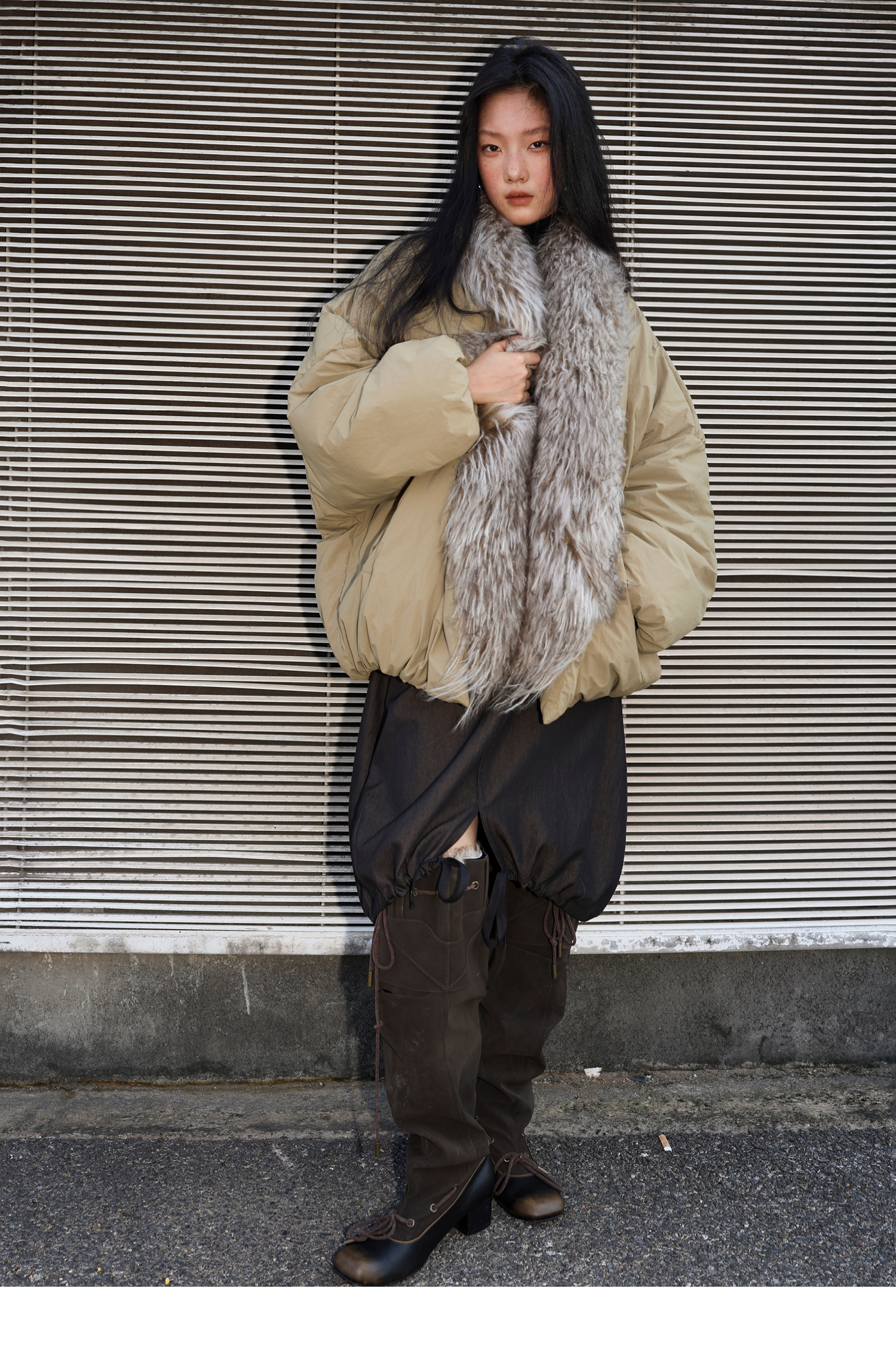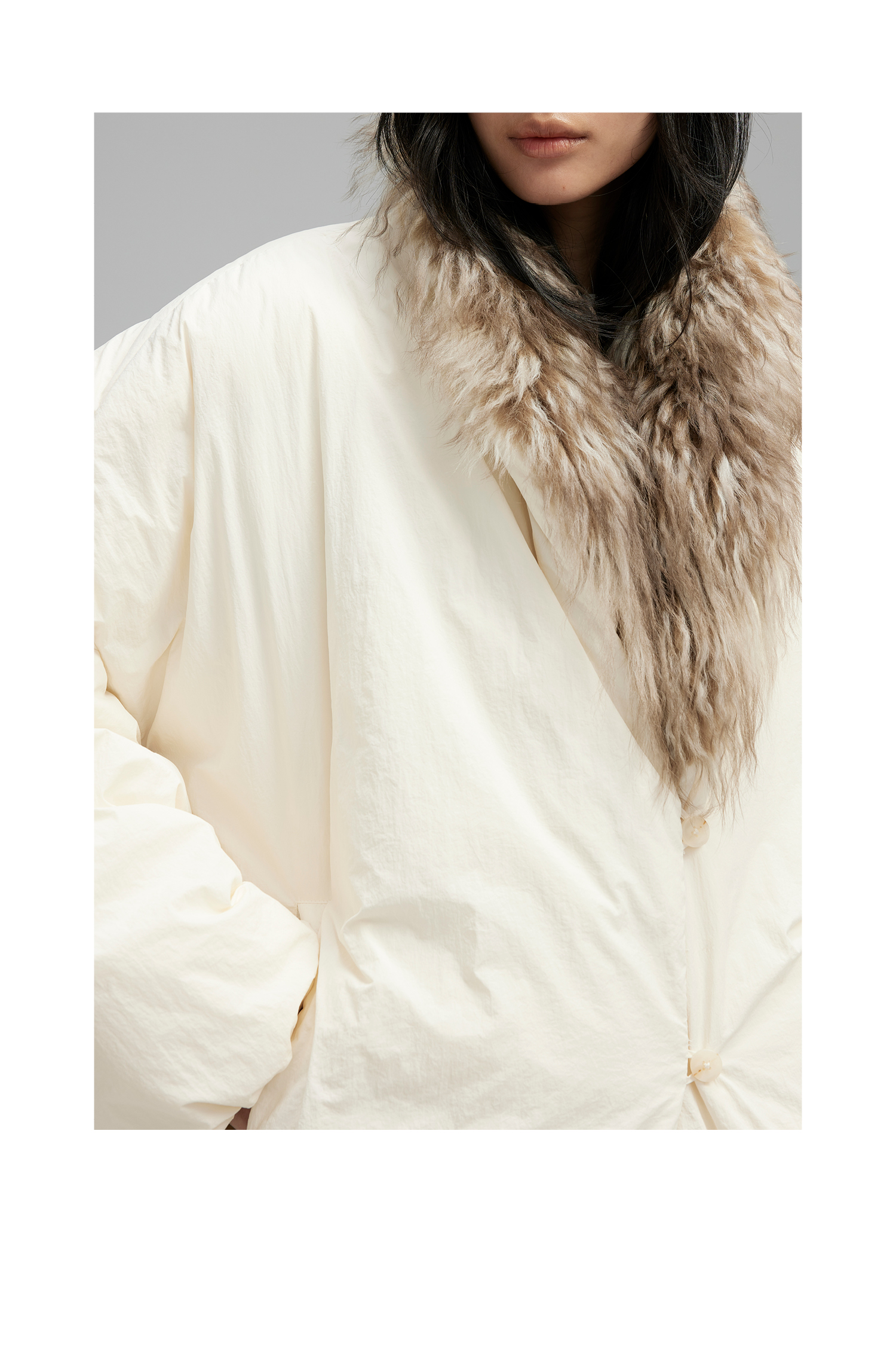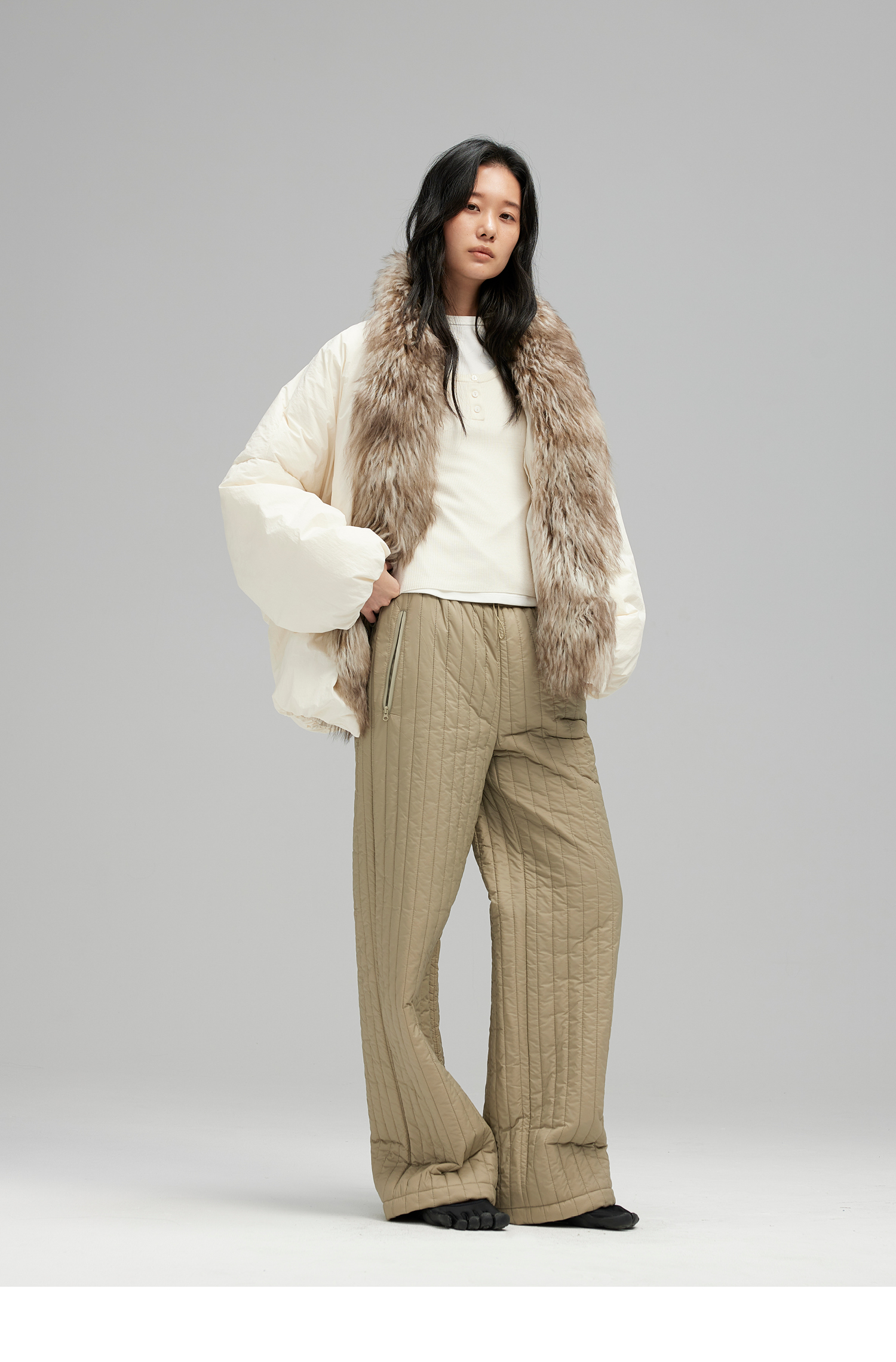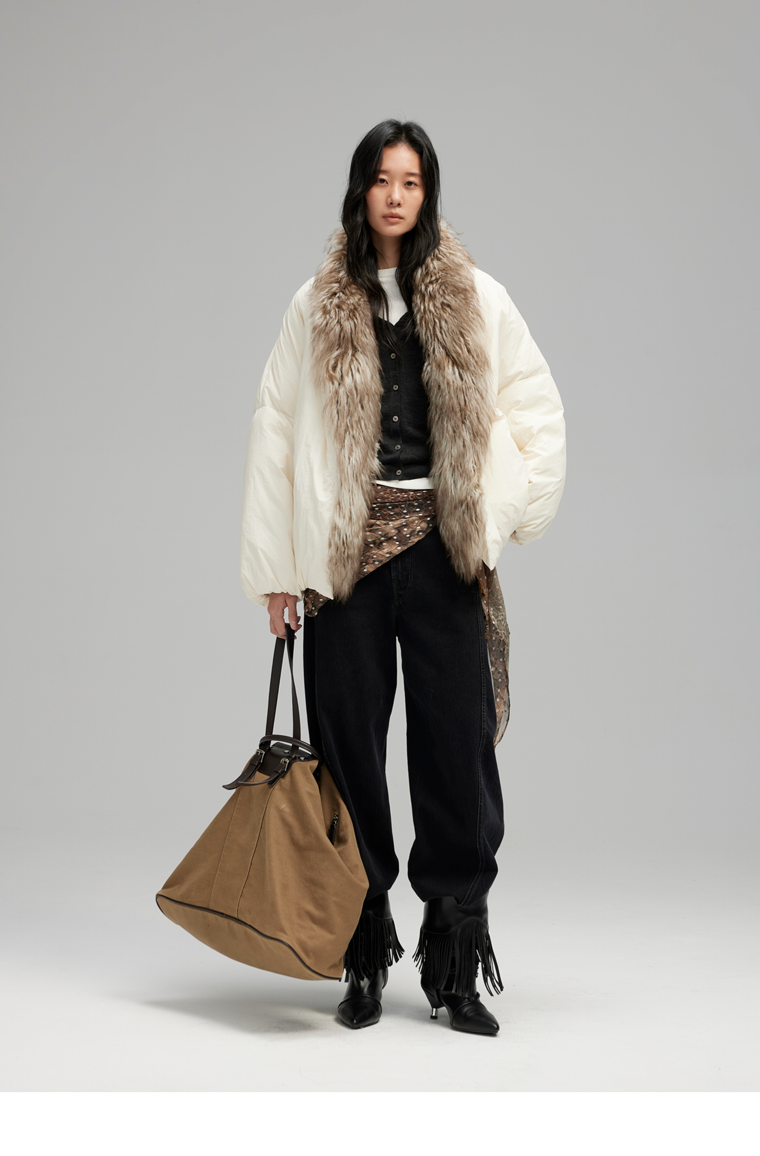 素舶 可拆卸皮草毛领花苞派克羽绒服短外套