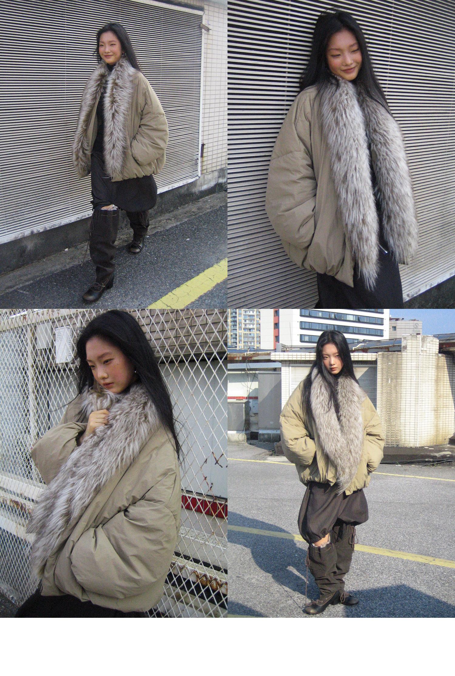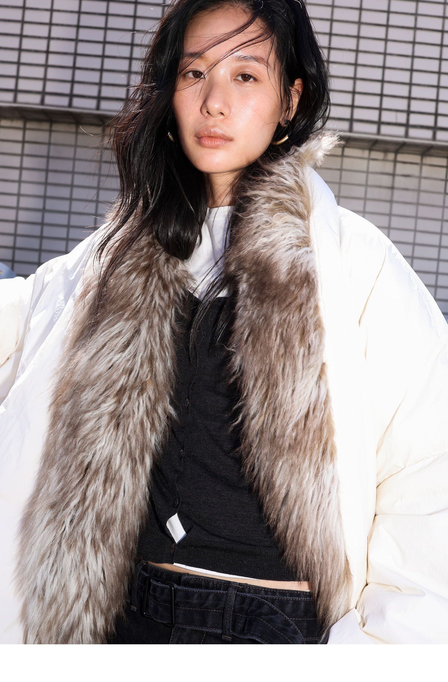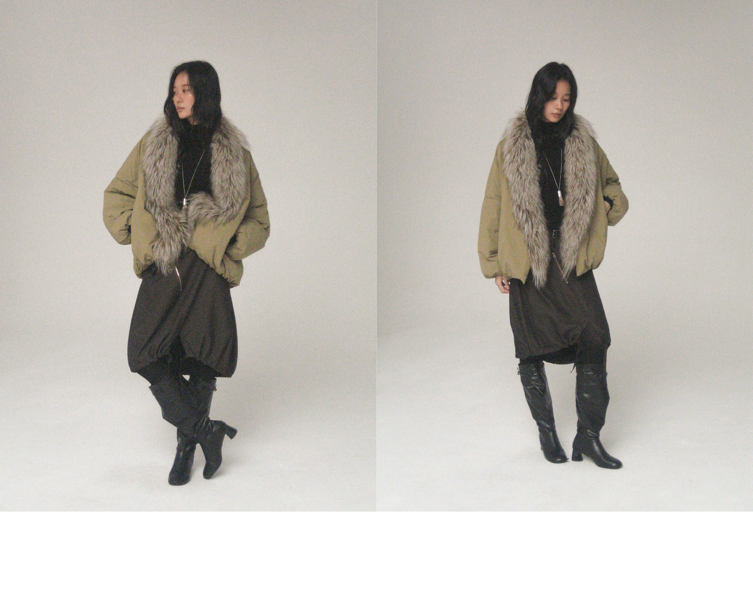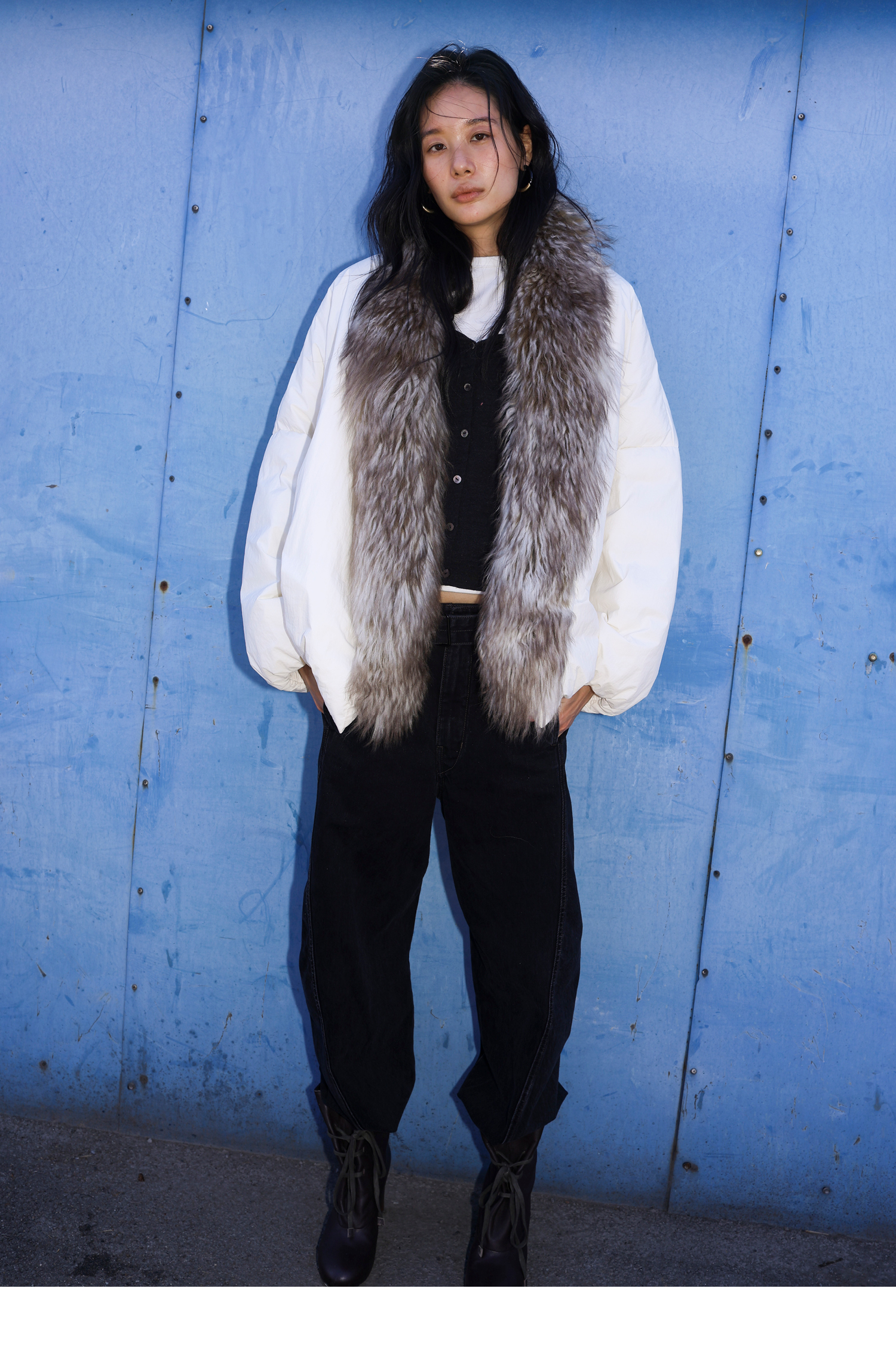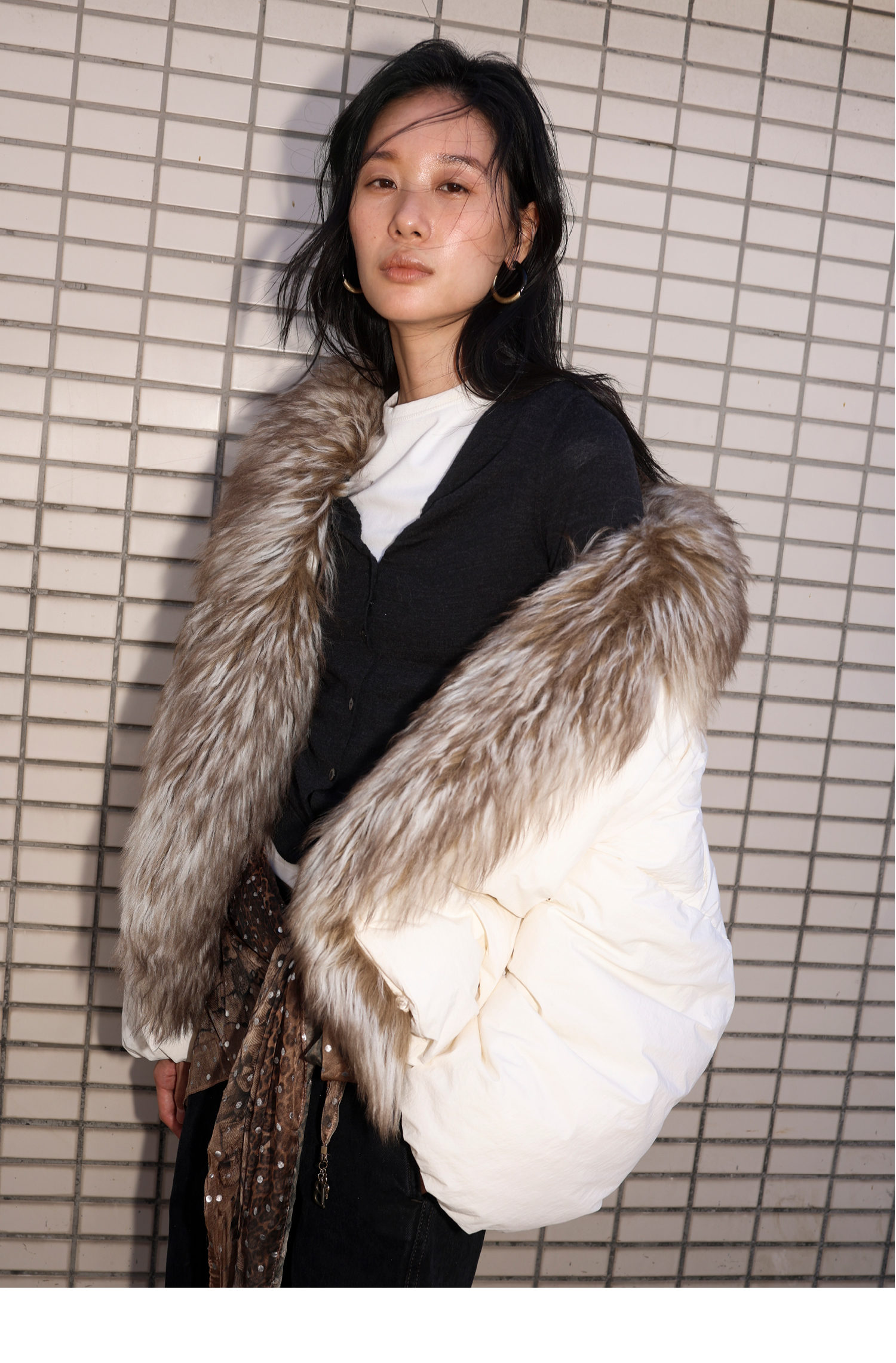素舶 可拆卸皮草毛领花苞派克羽绒服短外套