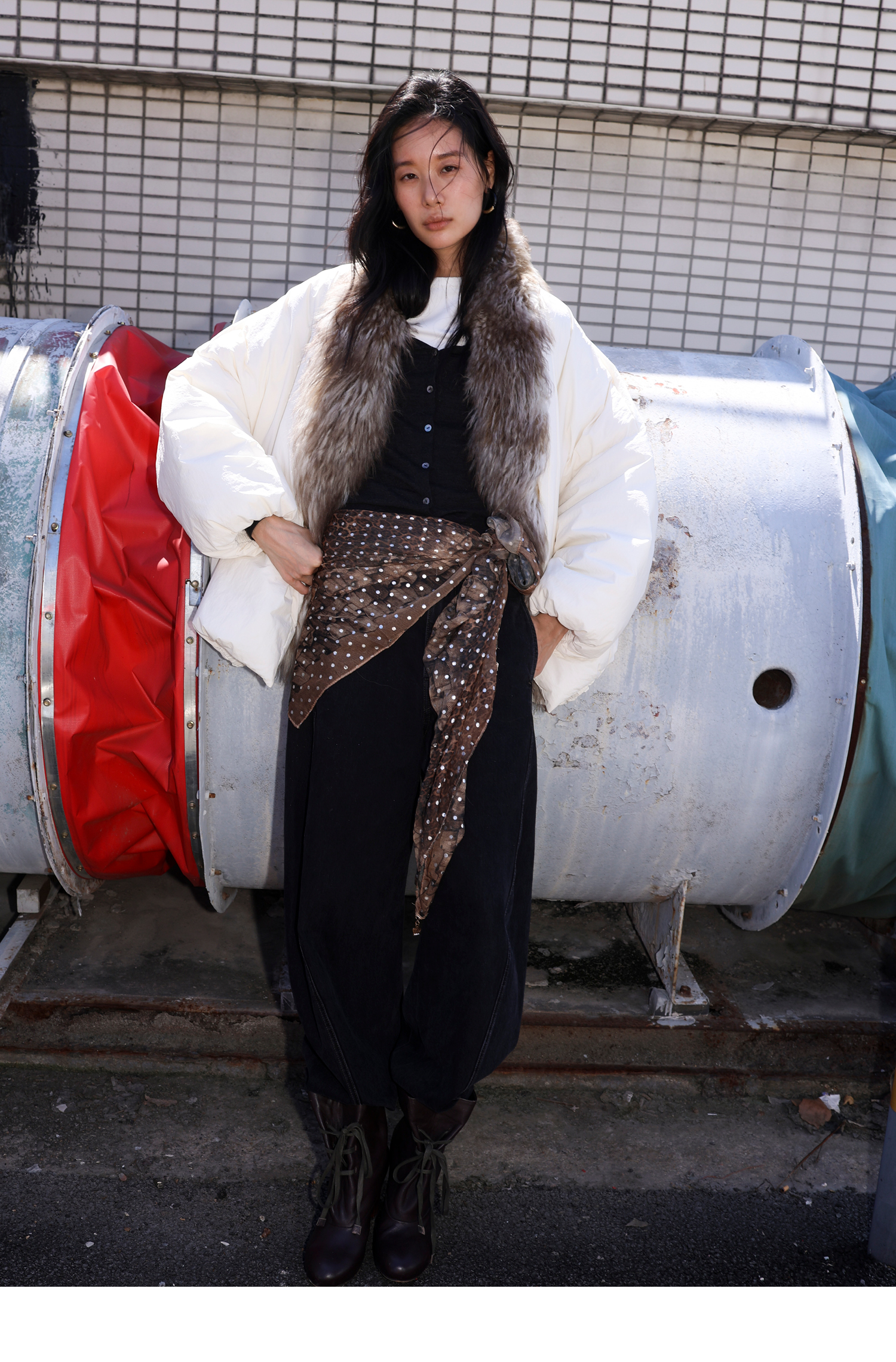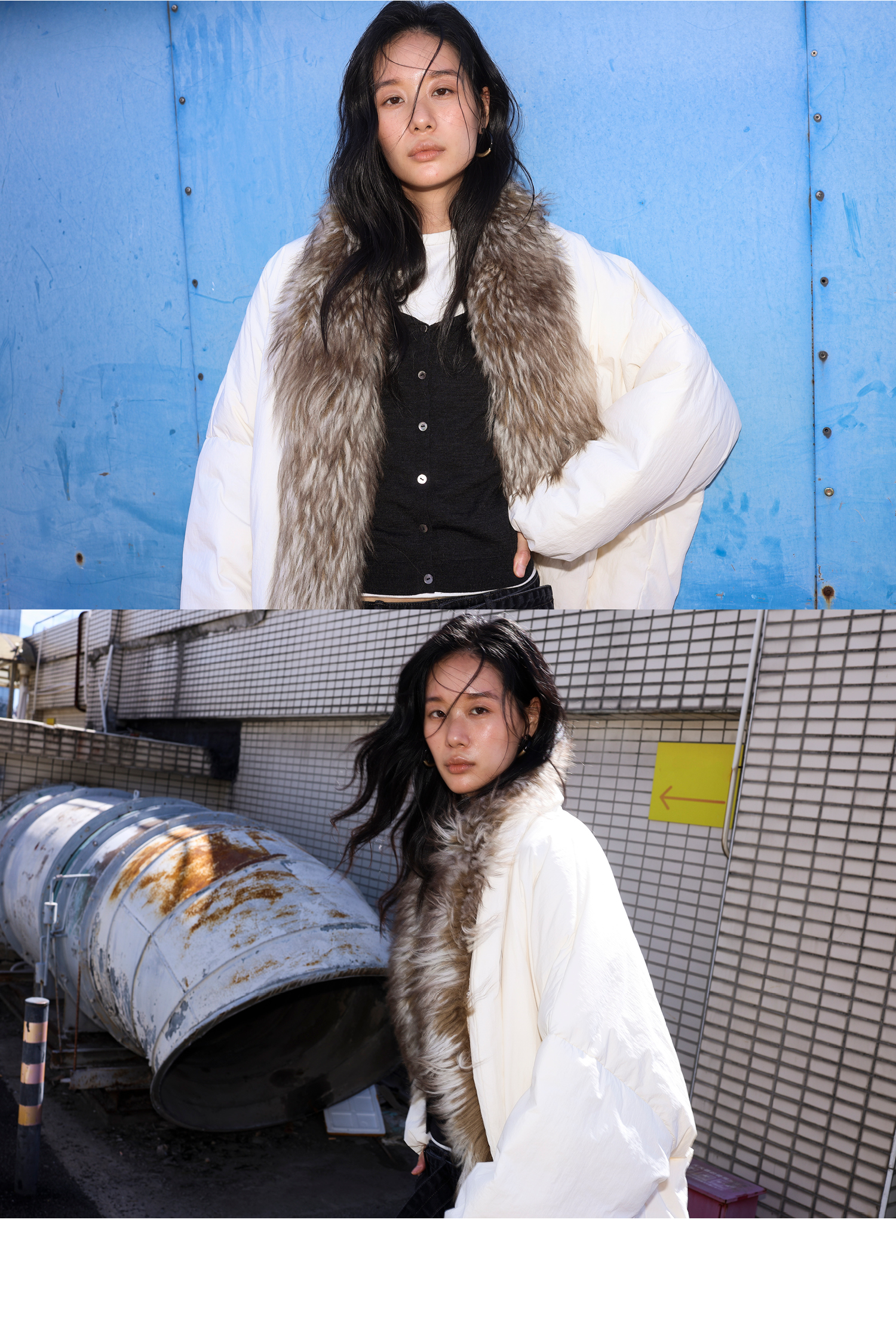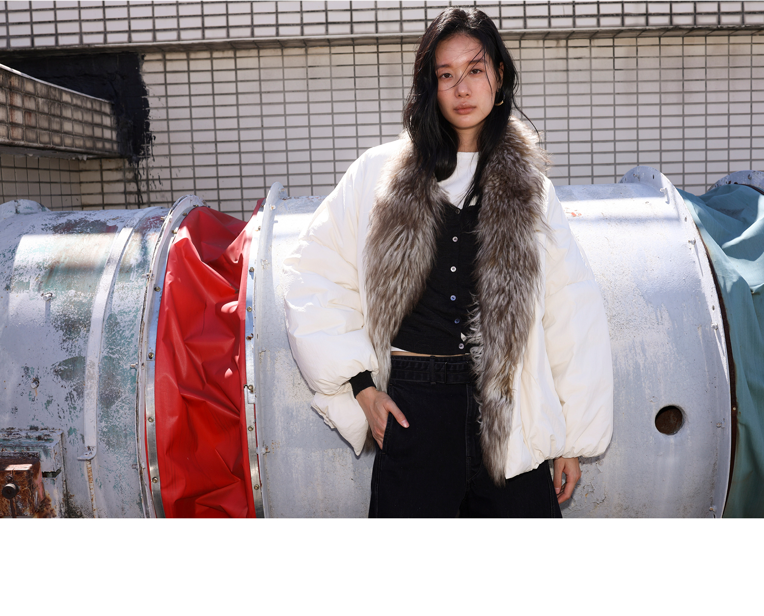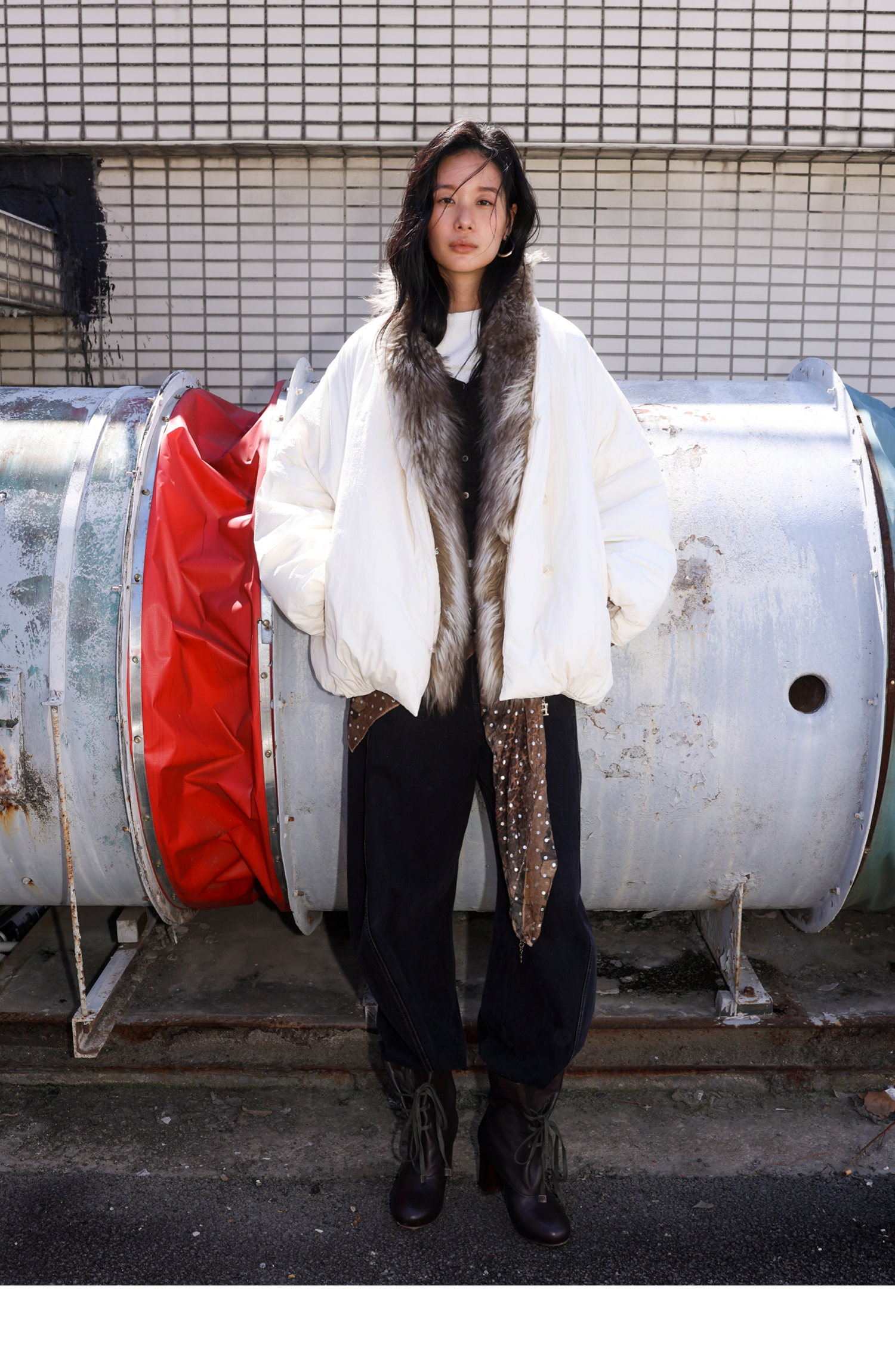 素舶 可拆卸皮草毛领花苞派克羽绒服短外套