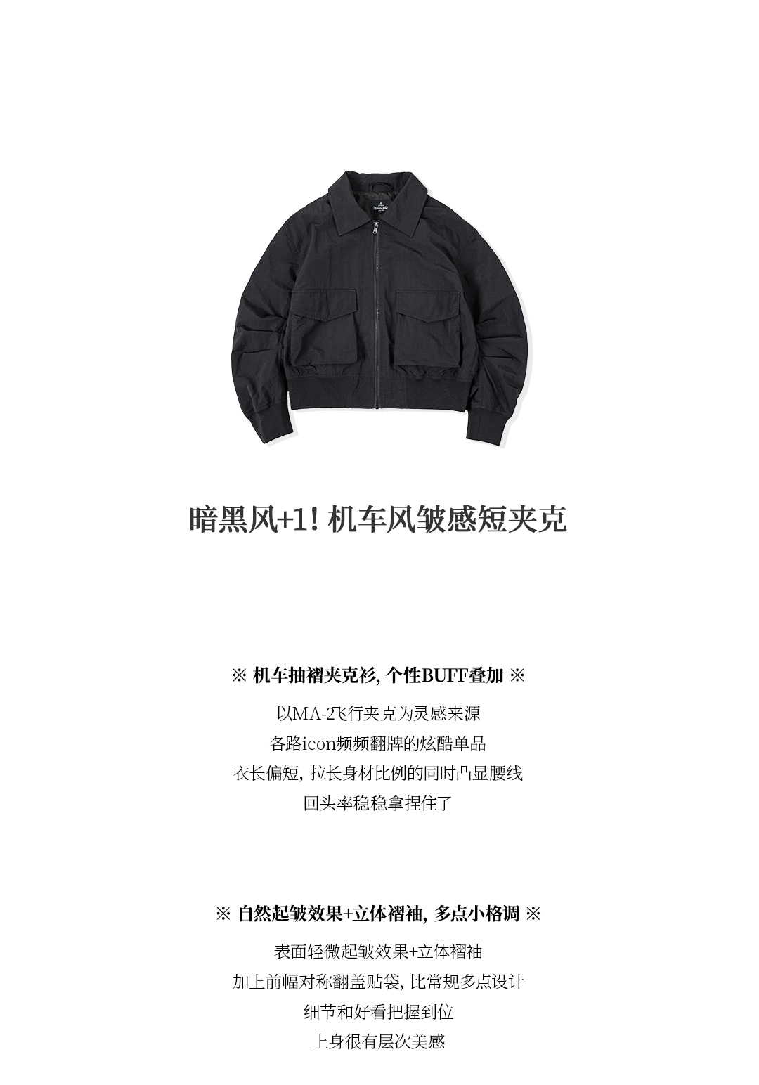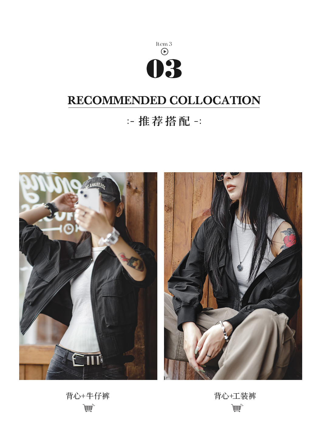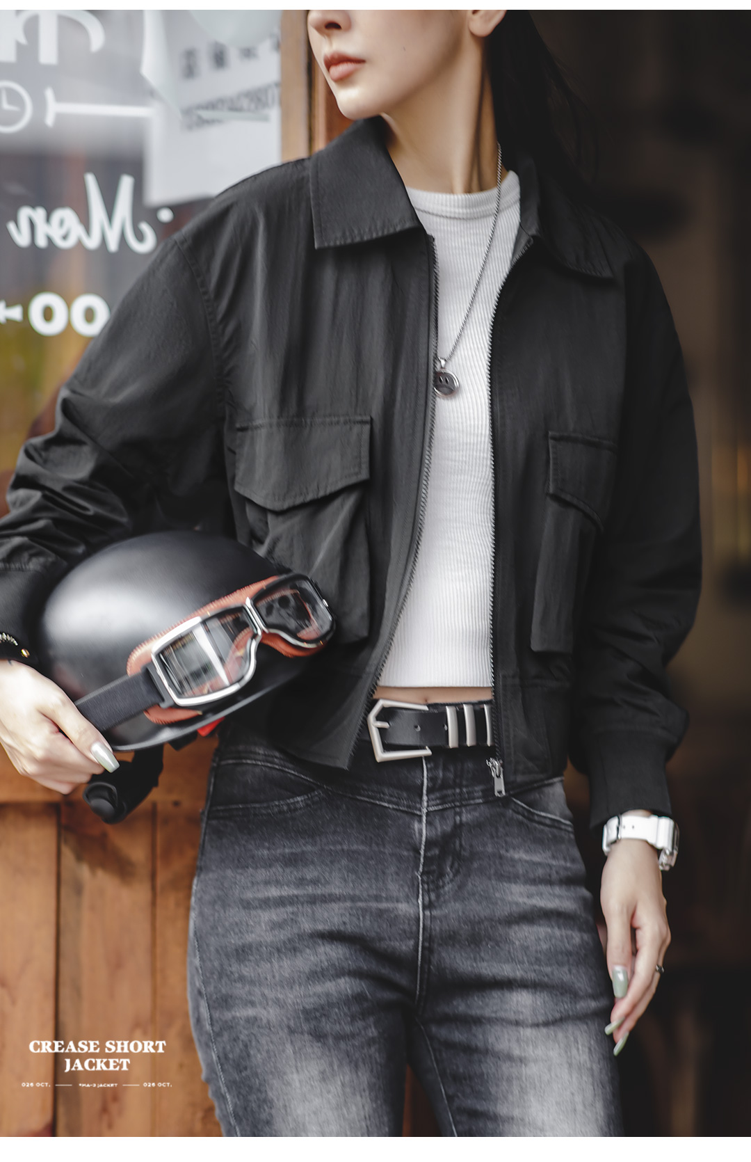 马登女装美式休闲短款机车飞行员夹克外套黑色复古上衣女秋季小众