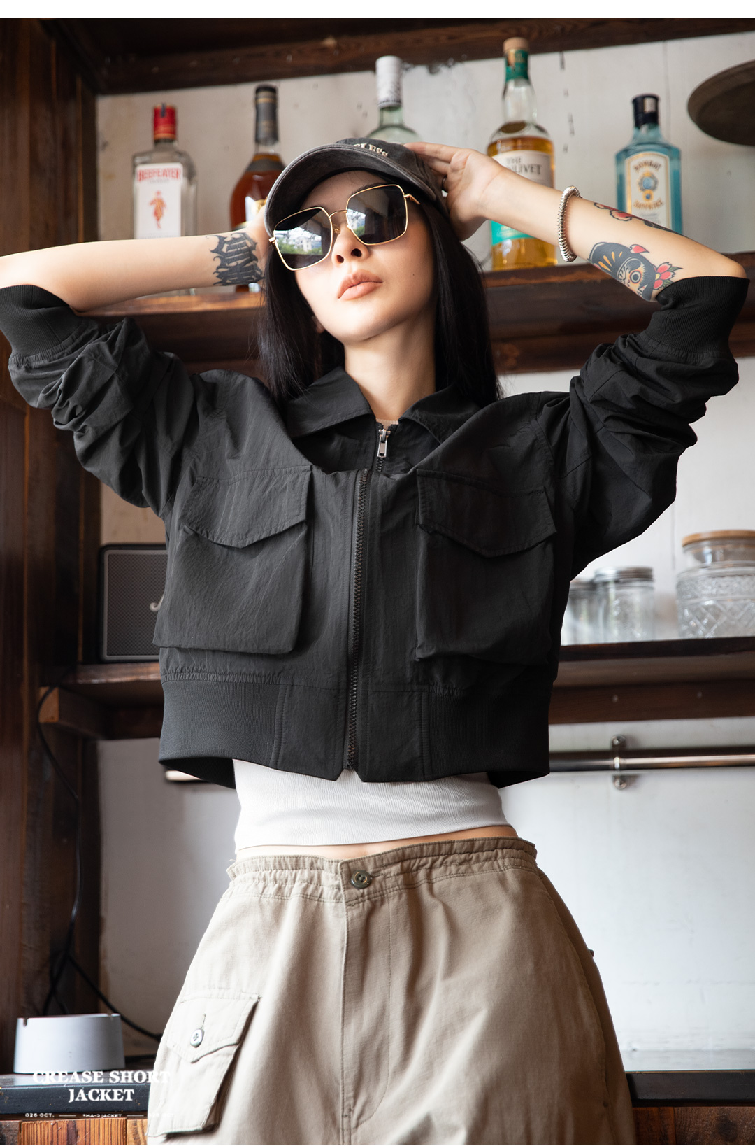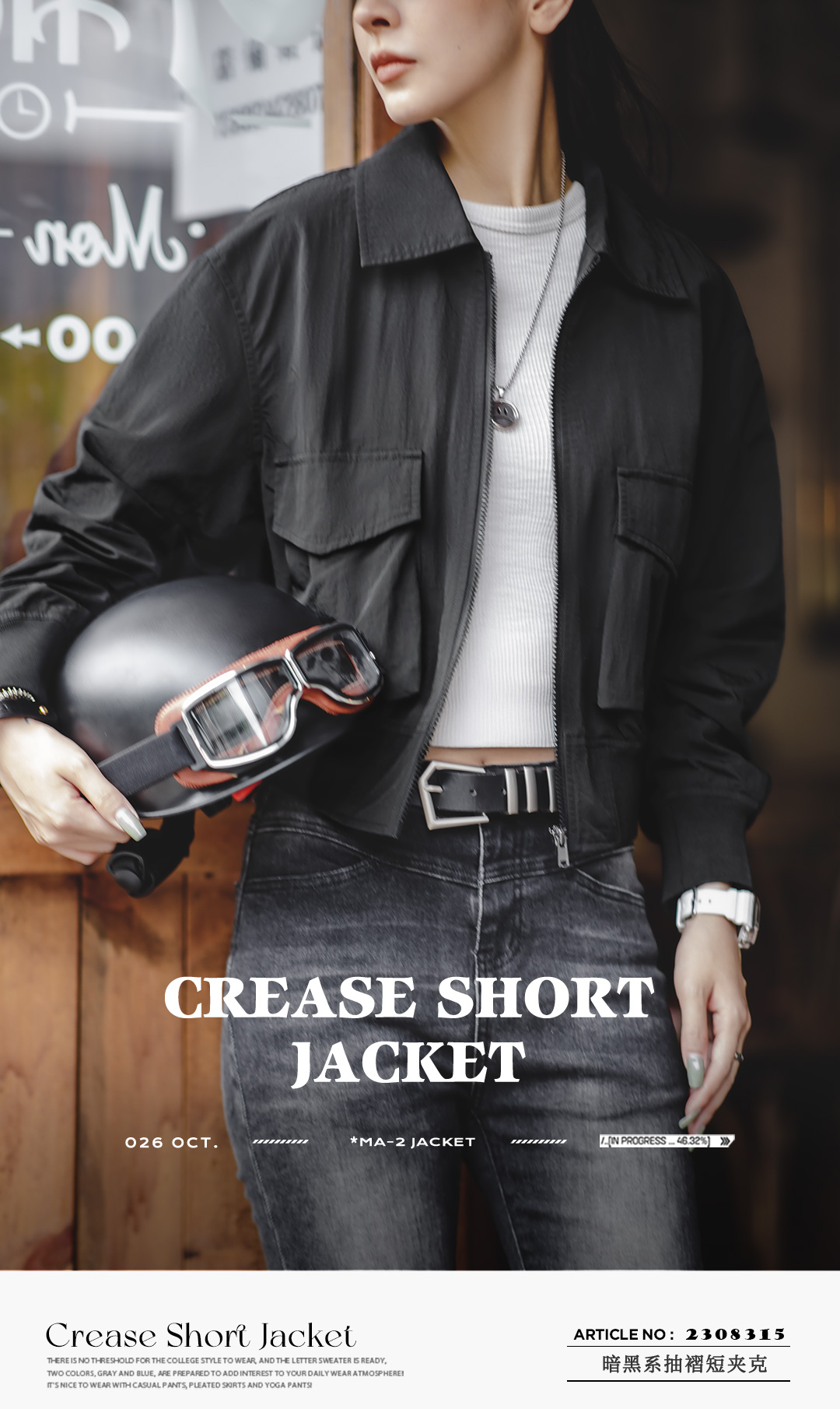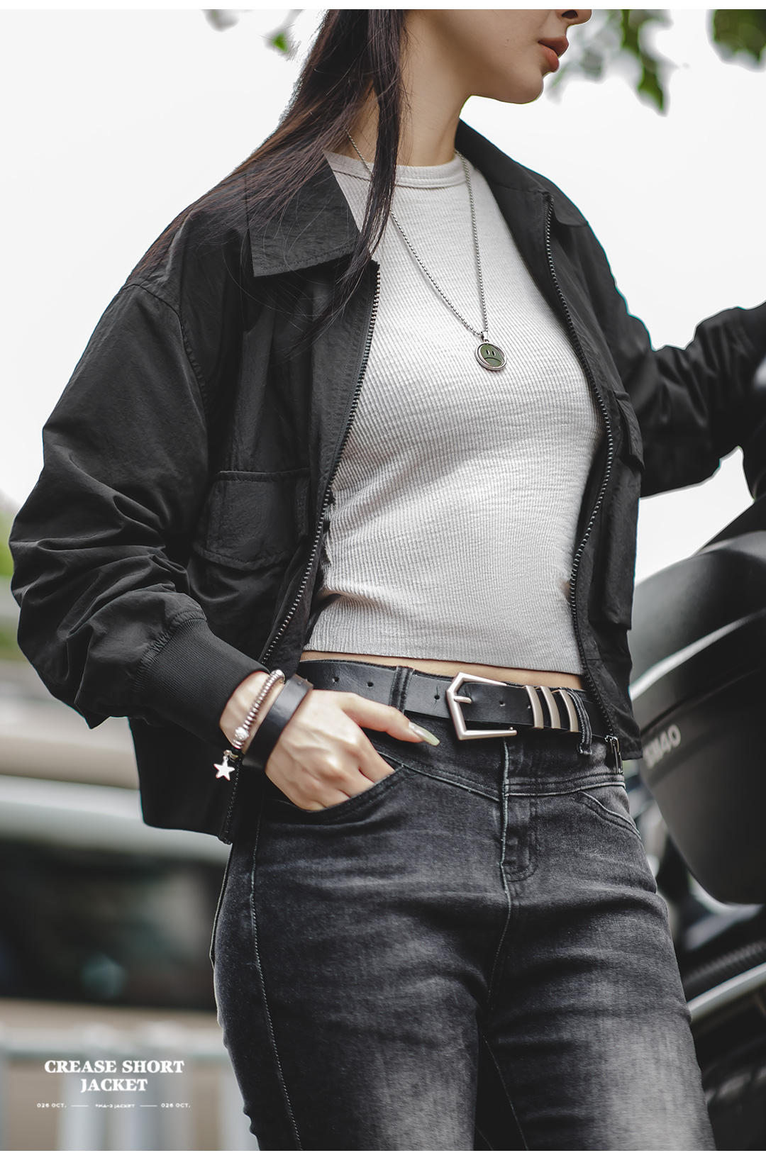 马登女装美式休闲短款机车飞行员夹克外套黑色复古上衣女秋季小众