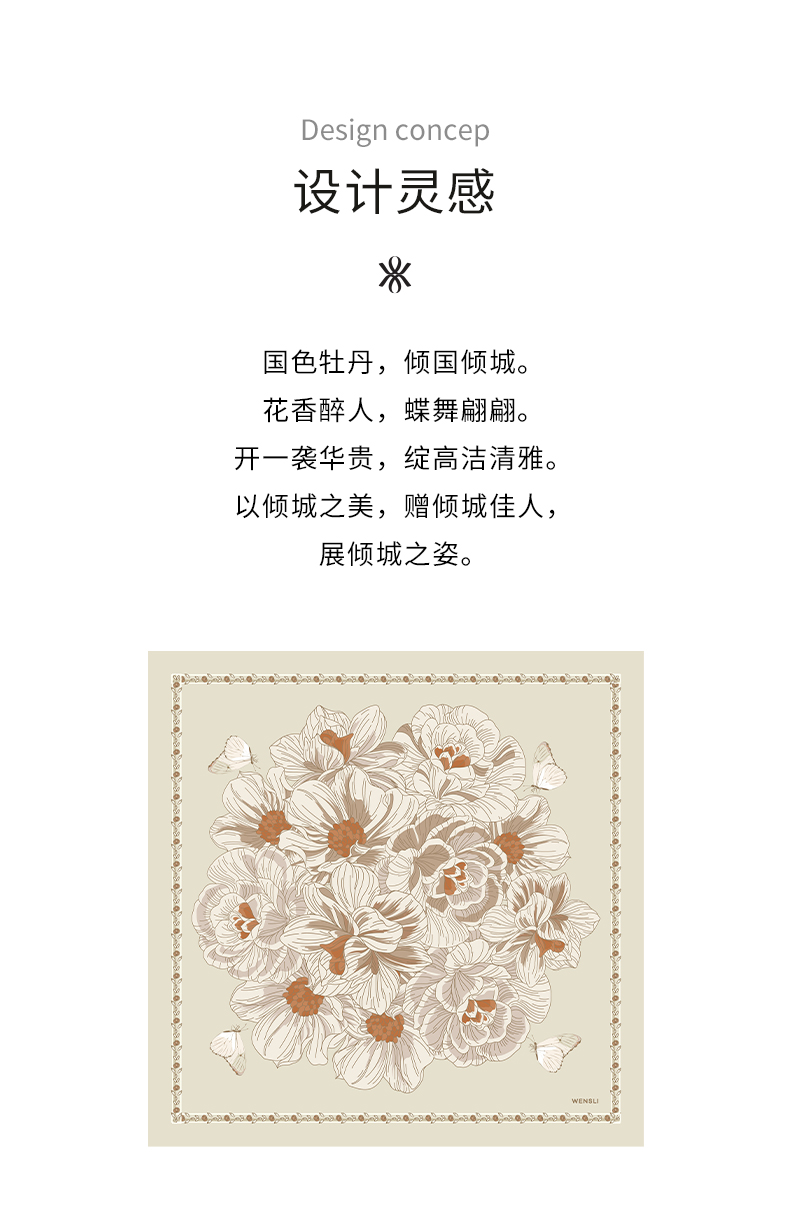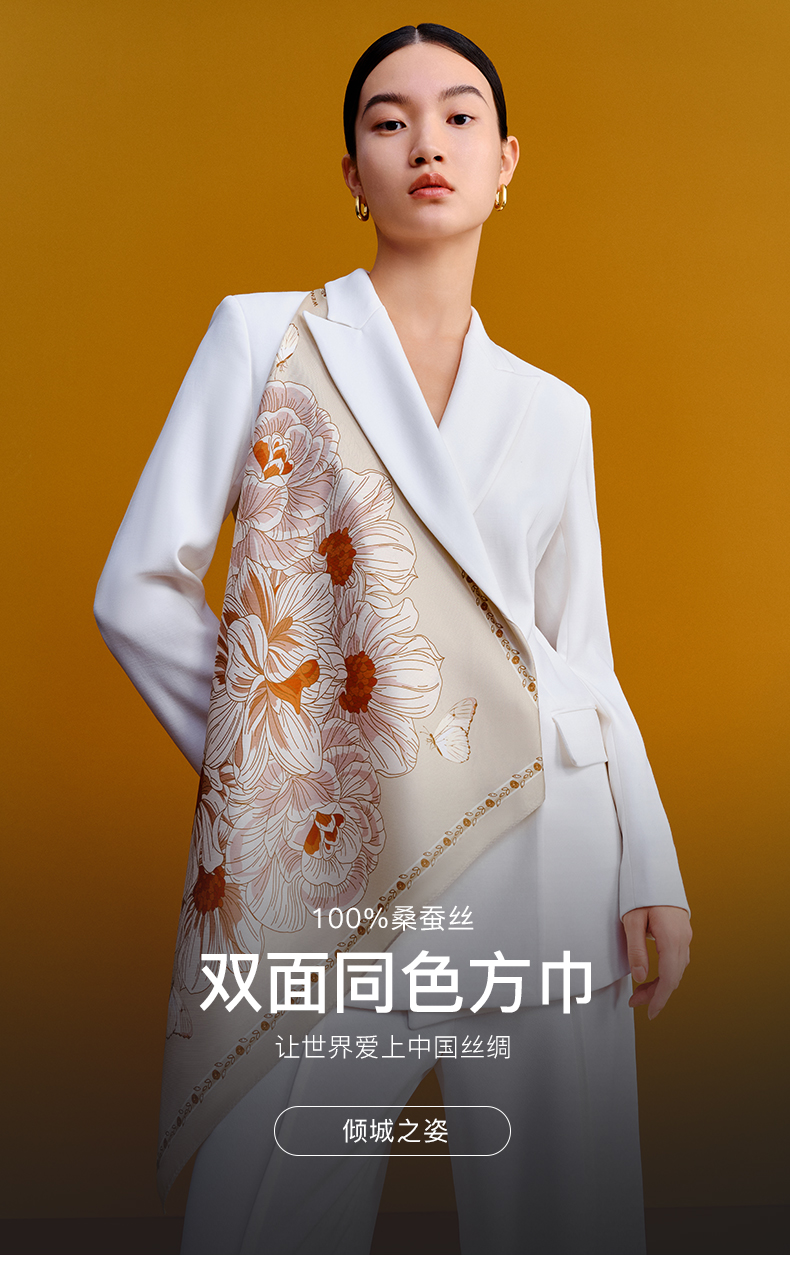 万事利63厘米双面印花中方巾【倾城之姿】