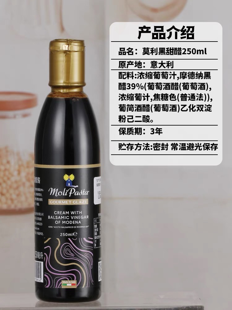 莫利黑醋 意大利进口摩德纳黑醋500ml 葡萄酒酿造食醋