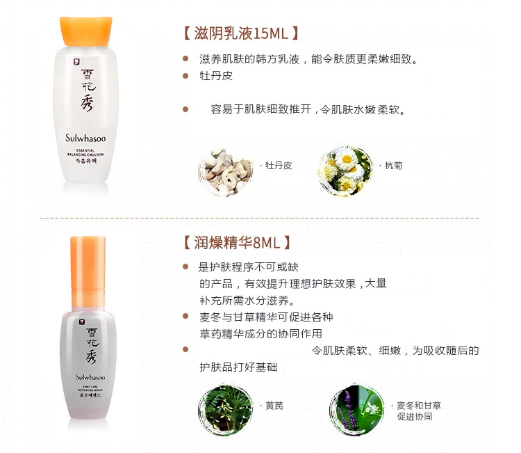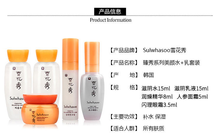 Sulwhasoo雪花秀滋阴 套装 中样水乳面霜精华眼霜