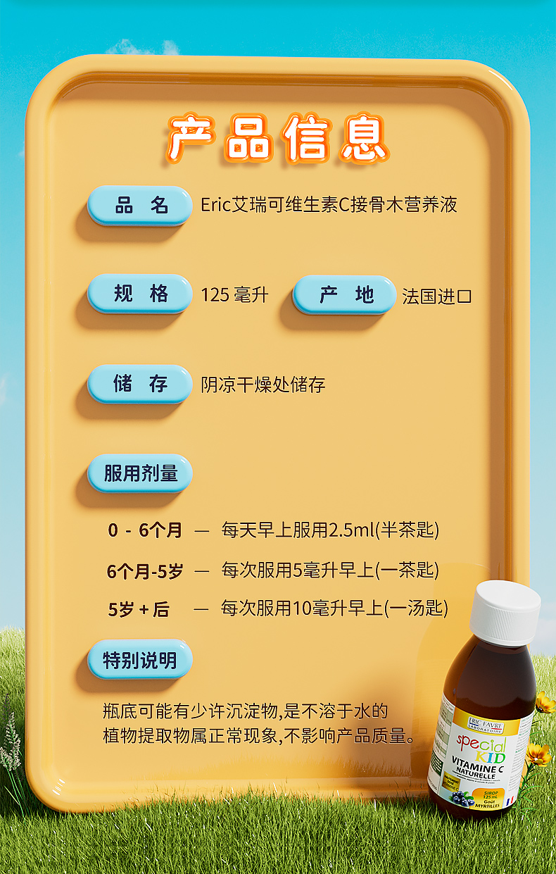 【保税仓】法国艾瑞可Eric Favre儿童VC接骨木糖浆水果味125ml