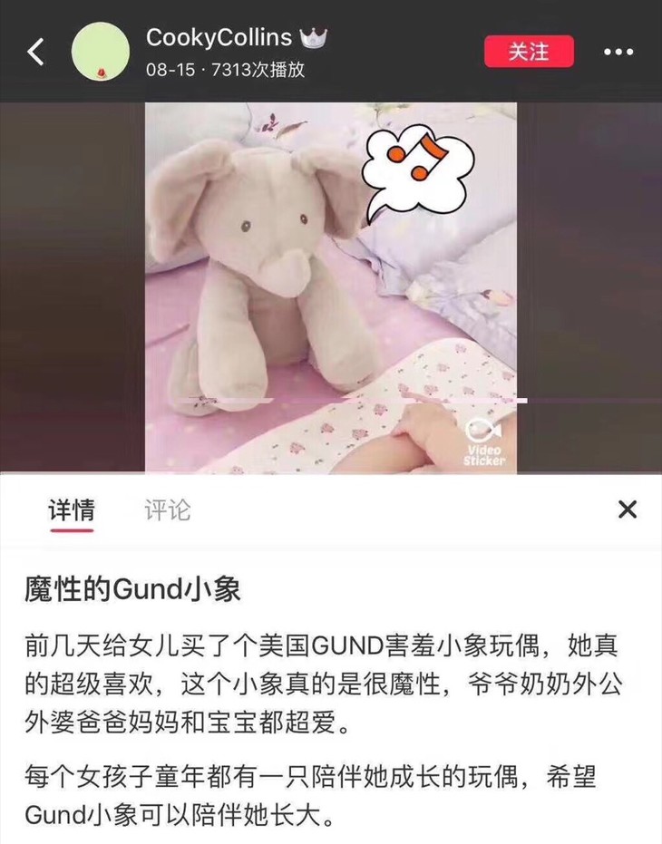 超强治愈系大象🐘来了🔥🔥哄娃神器来啦[亲亲]特价350元起🉐🉐包税包邮到手了🔥🔥情人节礼物🎁🎁哄女盆友也是棒棒哒,美国baby gund小象玩具!会玩躲猫猫会唱歌的大象,玩具界的小网红,小象的脚底有两个按钮,左边按下去是整首歌带耳朵互动,右边是跟宝宝互动躲猫猫,超级可爱,百玩不腻[耶]!美国百年毛绒玩具品牌,拿过不少美国玩具大奖哦!