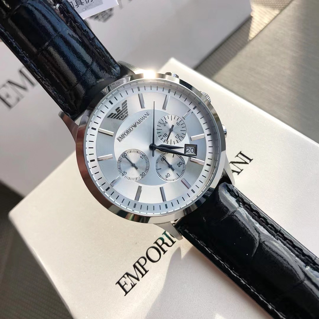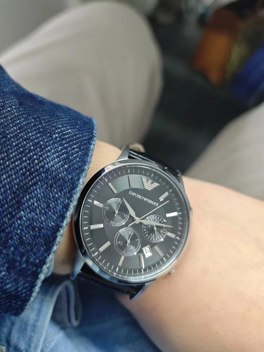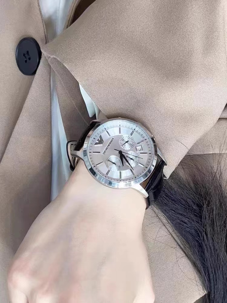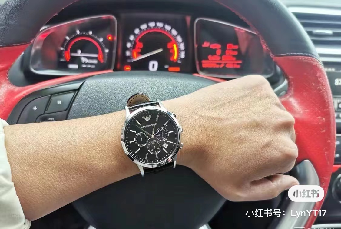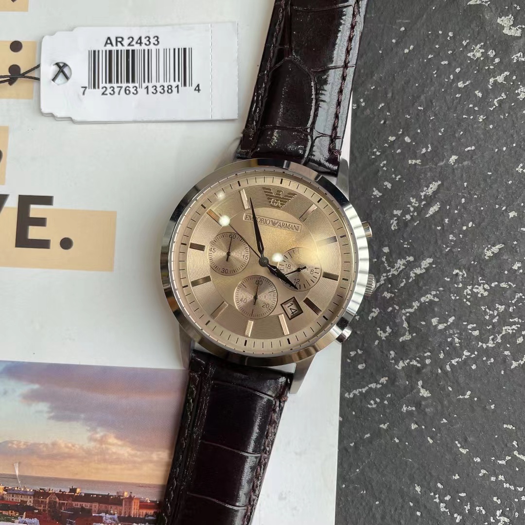 型号AR2432 潮流超酷手表 意大利风格牛皮皮带 计时石英男表 百搭经典配色 适合所有生活场景佩戴 尽显商务风范 直径43mm 休闲男士碗表 生活防水 圆形表盘 原装正品 支持专柜验货 配专柜全套包装