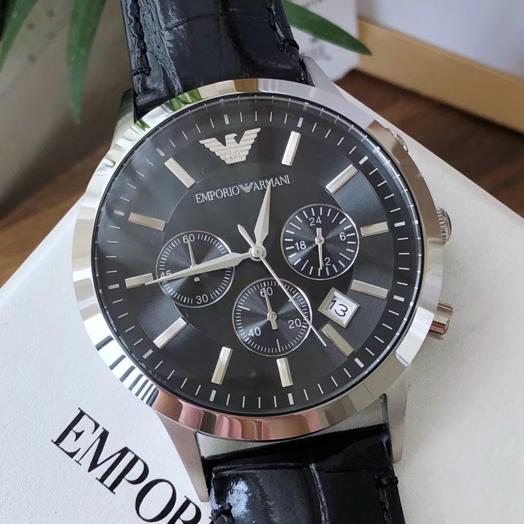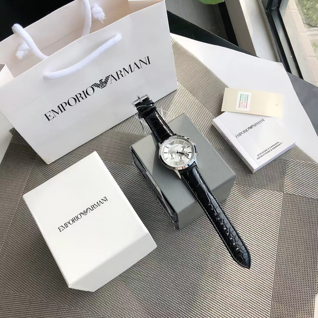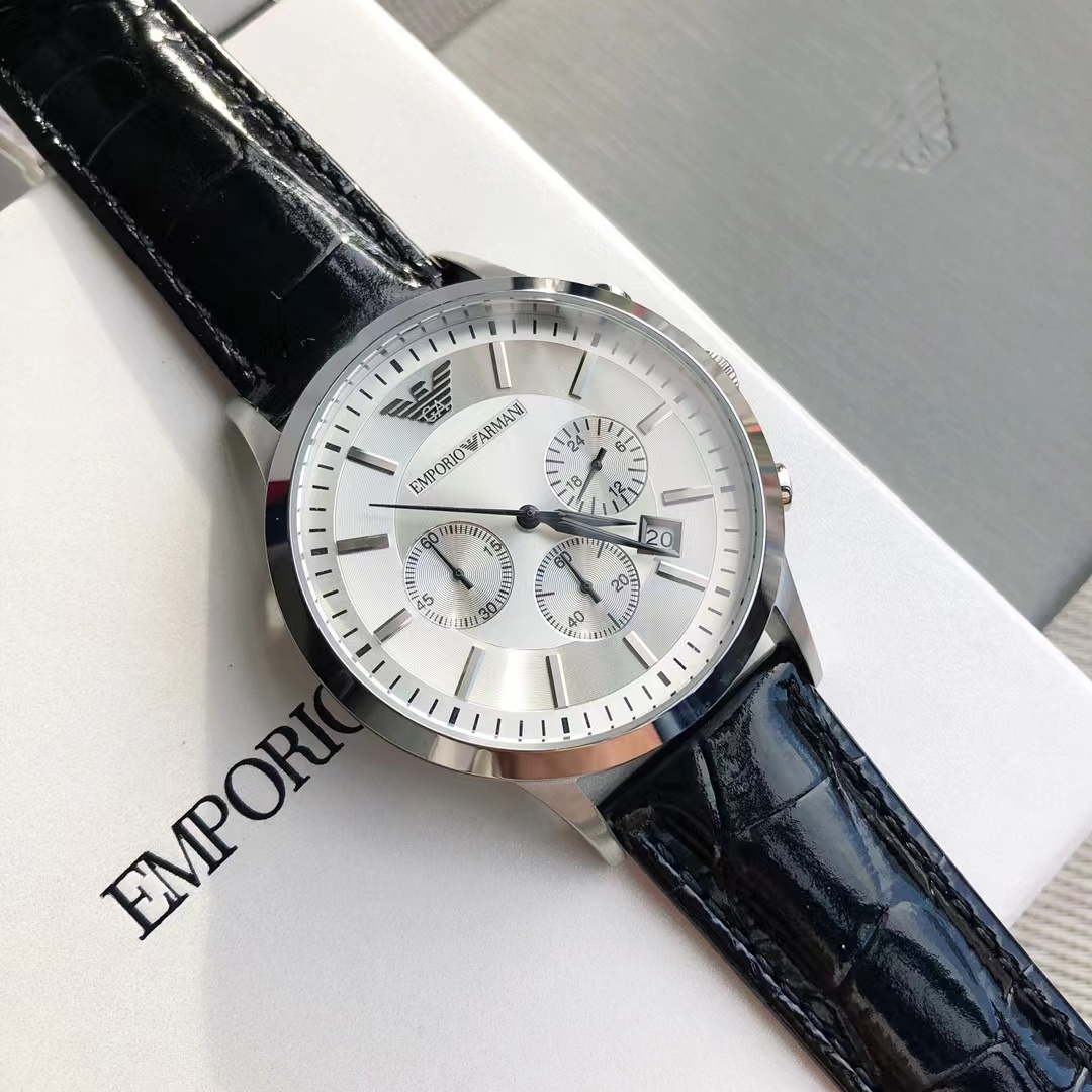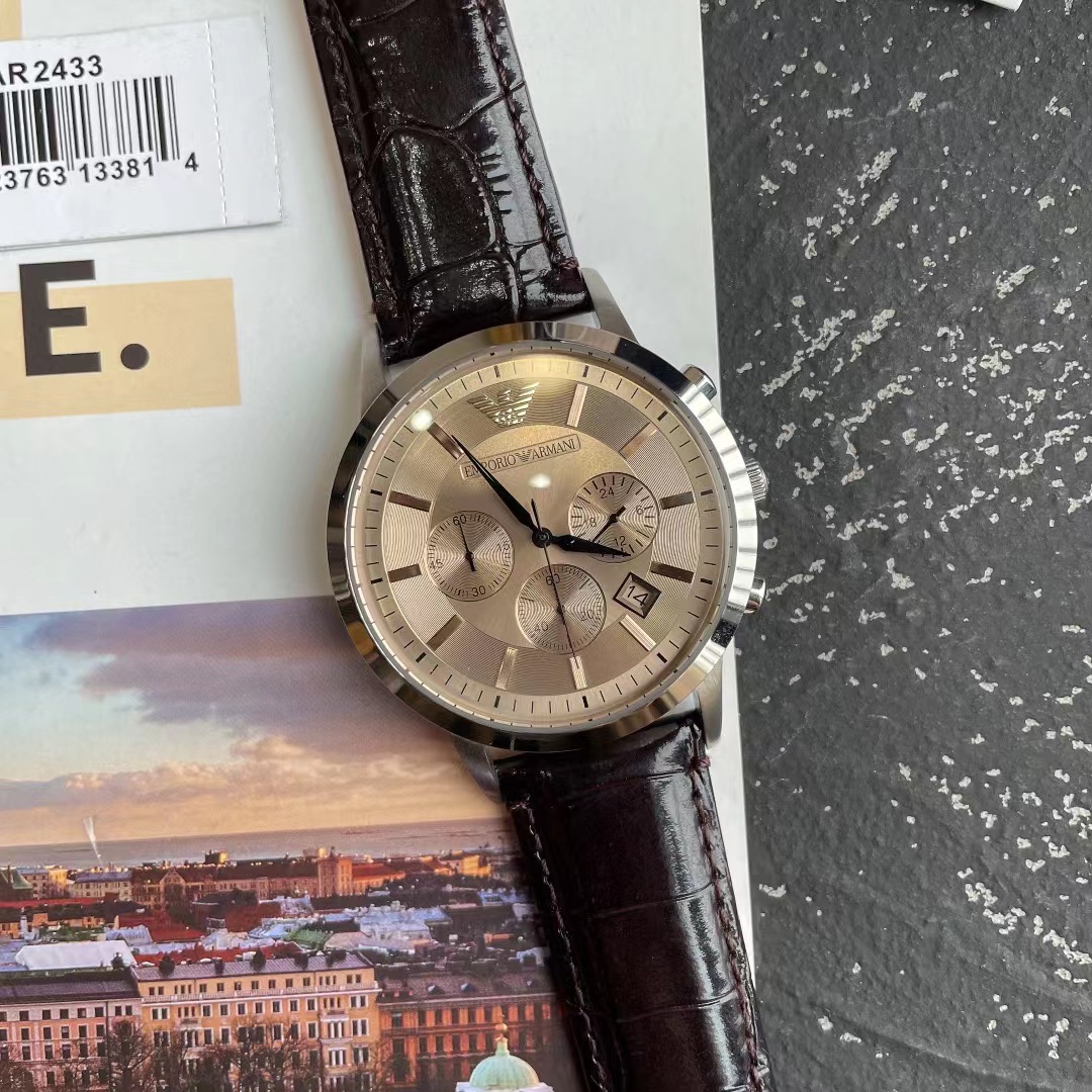 型号AR2432 潮流超酷手表 意大利风格牛皮皮带 计时石英男表 百搭经典配色 适合所有生活场景佩戴 尽显商务风范 直径43mm 休闲男士碗表 生活防水 圆形表盘 原装正品 支持专柜验货 配专柜全套包装