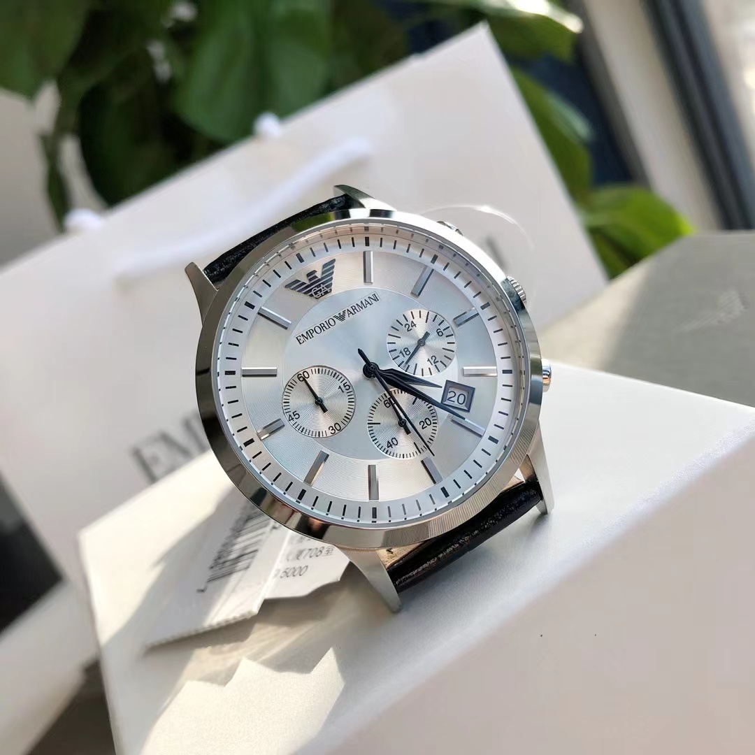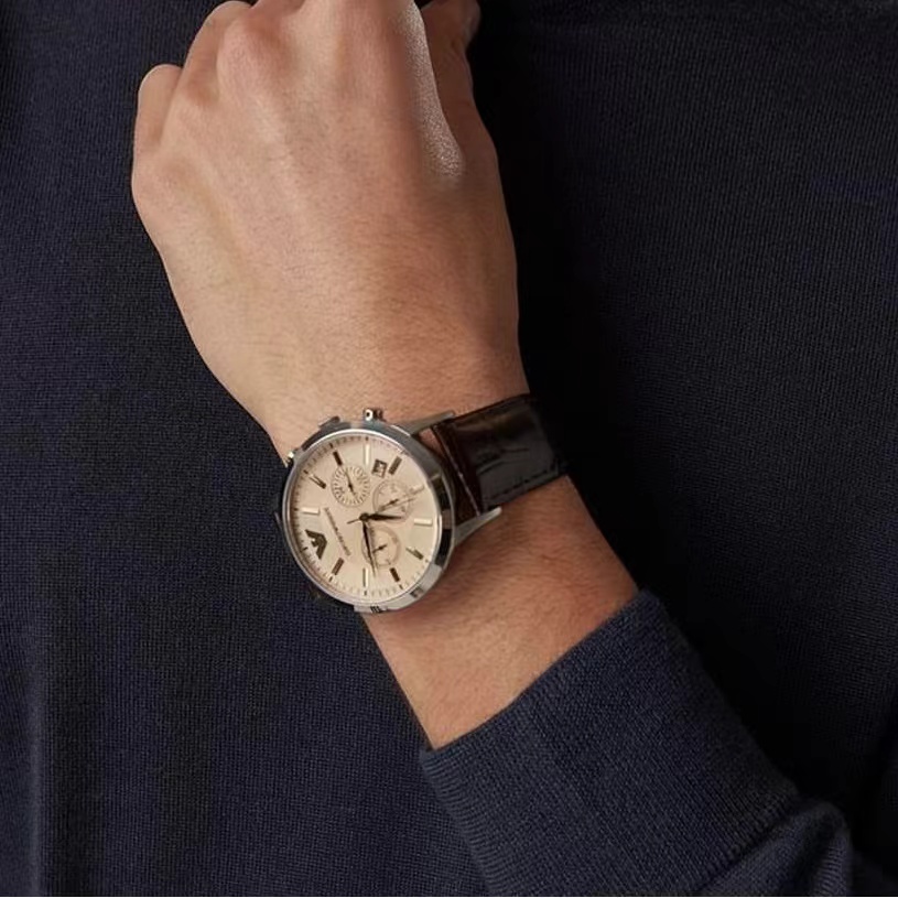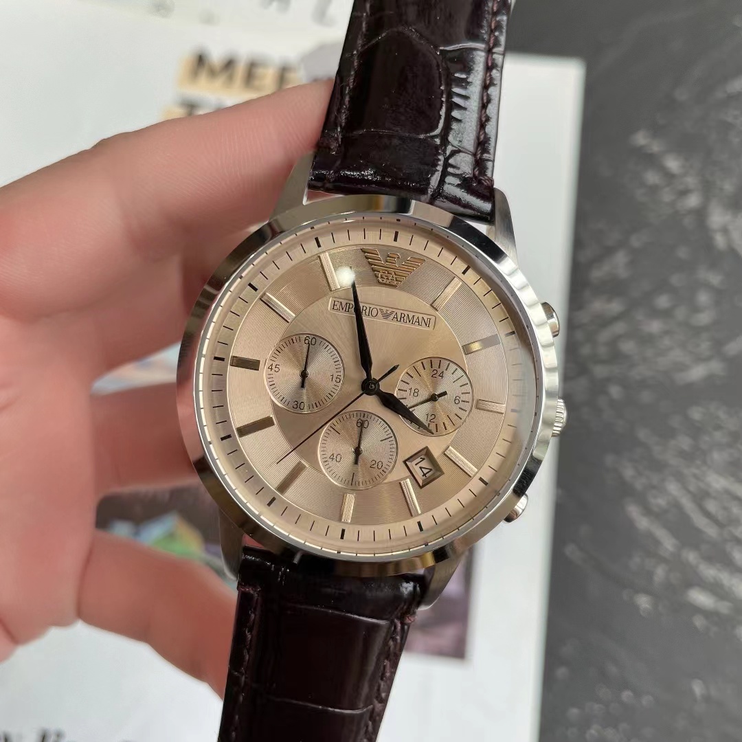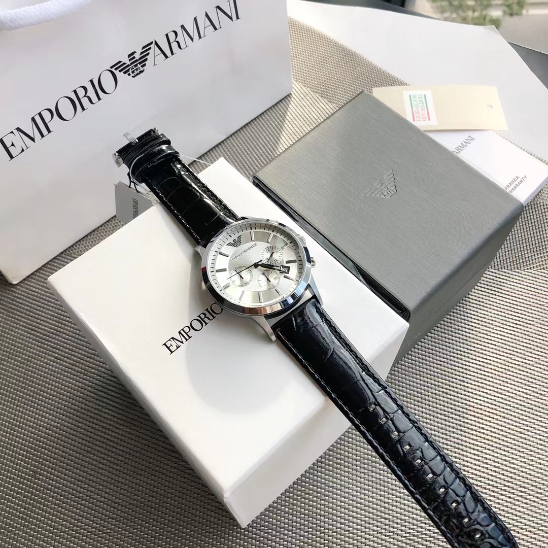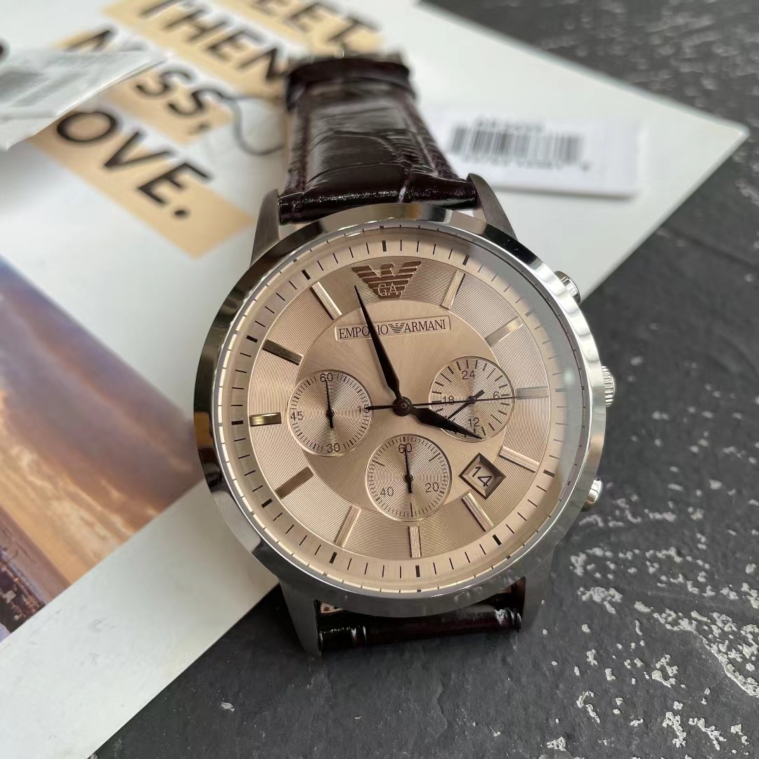型号AR2432 潮流超酷手表 意大利风格牛皮皮带 计时石英男表 百搭经典配色 适合所有生活场景佩戴 尽显商务风范 直径43mm 休闲男士碗表 生活防水 圆形表盘 原装正品 支持专柜验货 配专柜全套包装