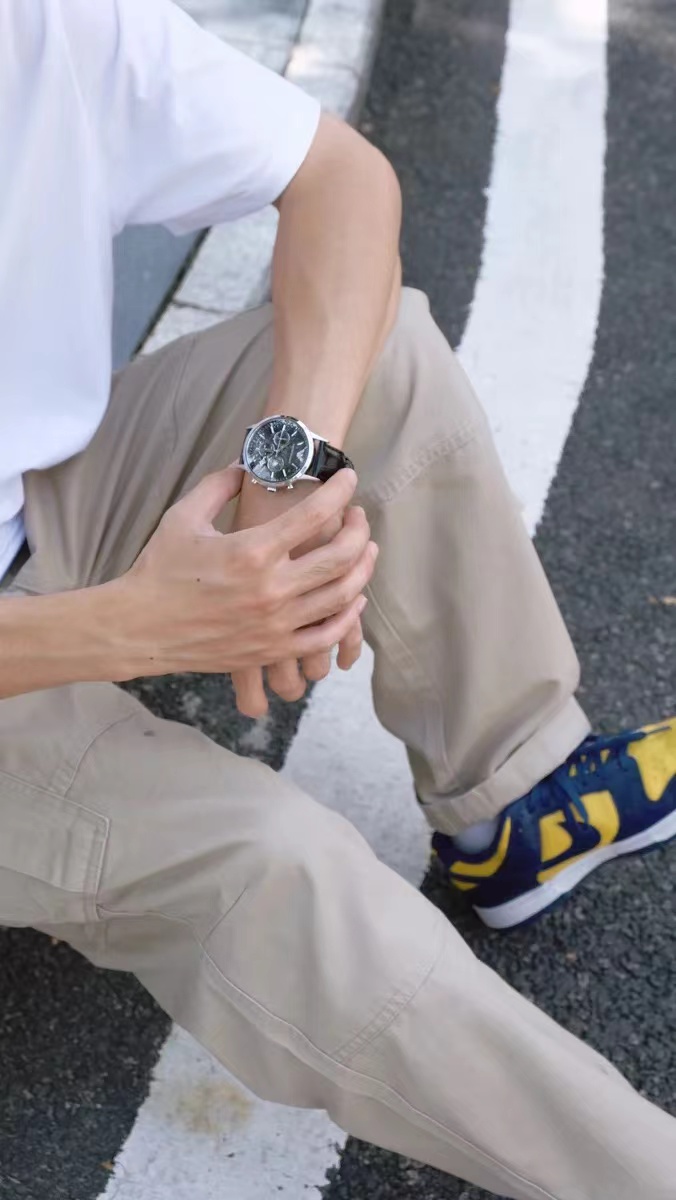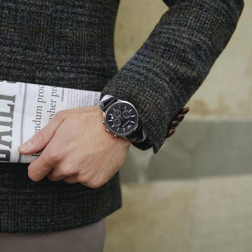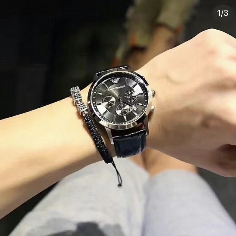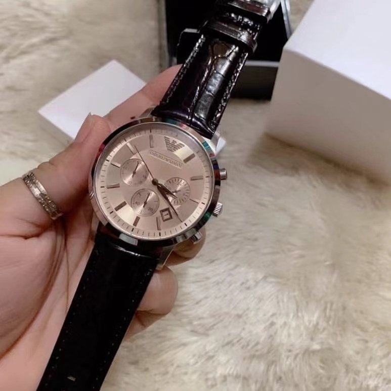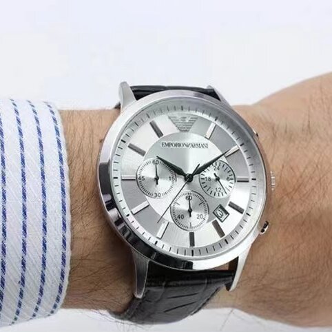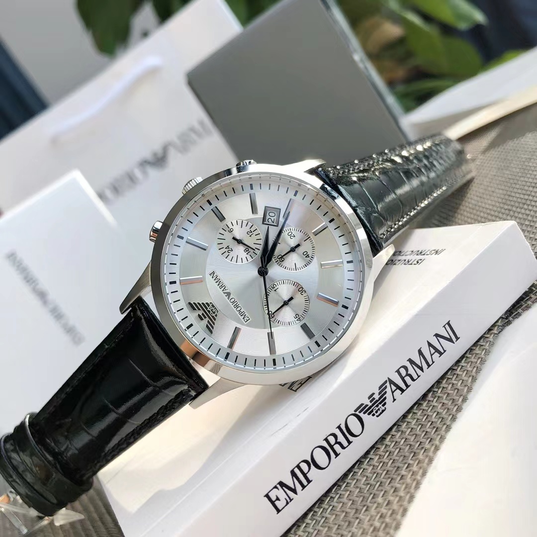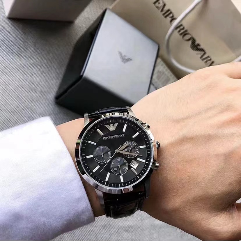 型号AR2432 潮流超酷手表 意大利风格牛皮皮带 计时石英男表 百搭经典配色 适合所有生活场景佩戴 尽显商务风范 直径43mm 休闲男士碗表 生活防水 圆形表盘 原装正品 支持专柜验货 配专柜全套包装